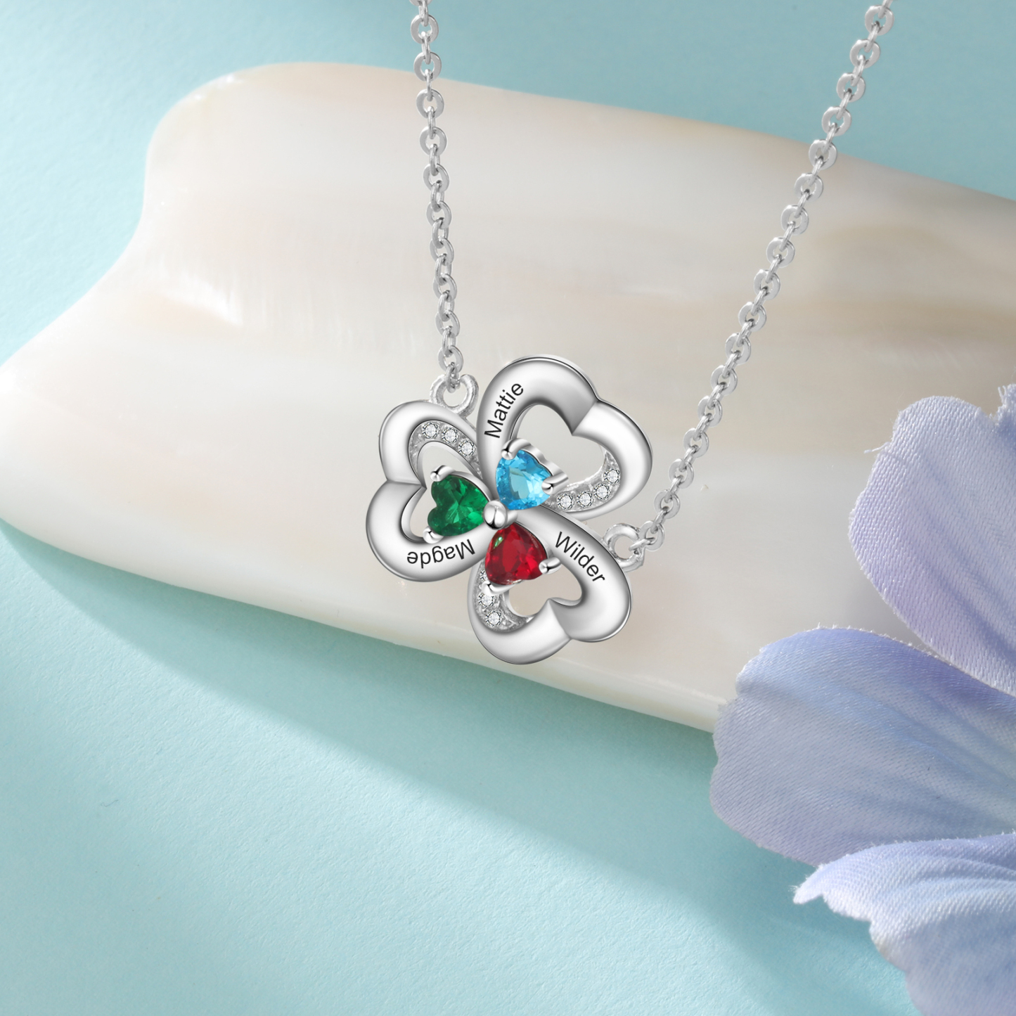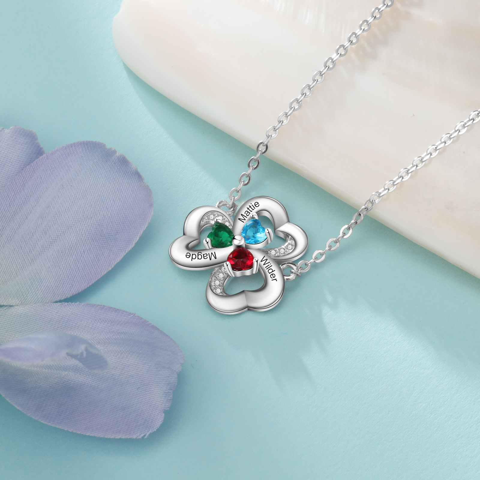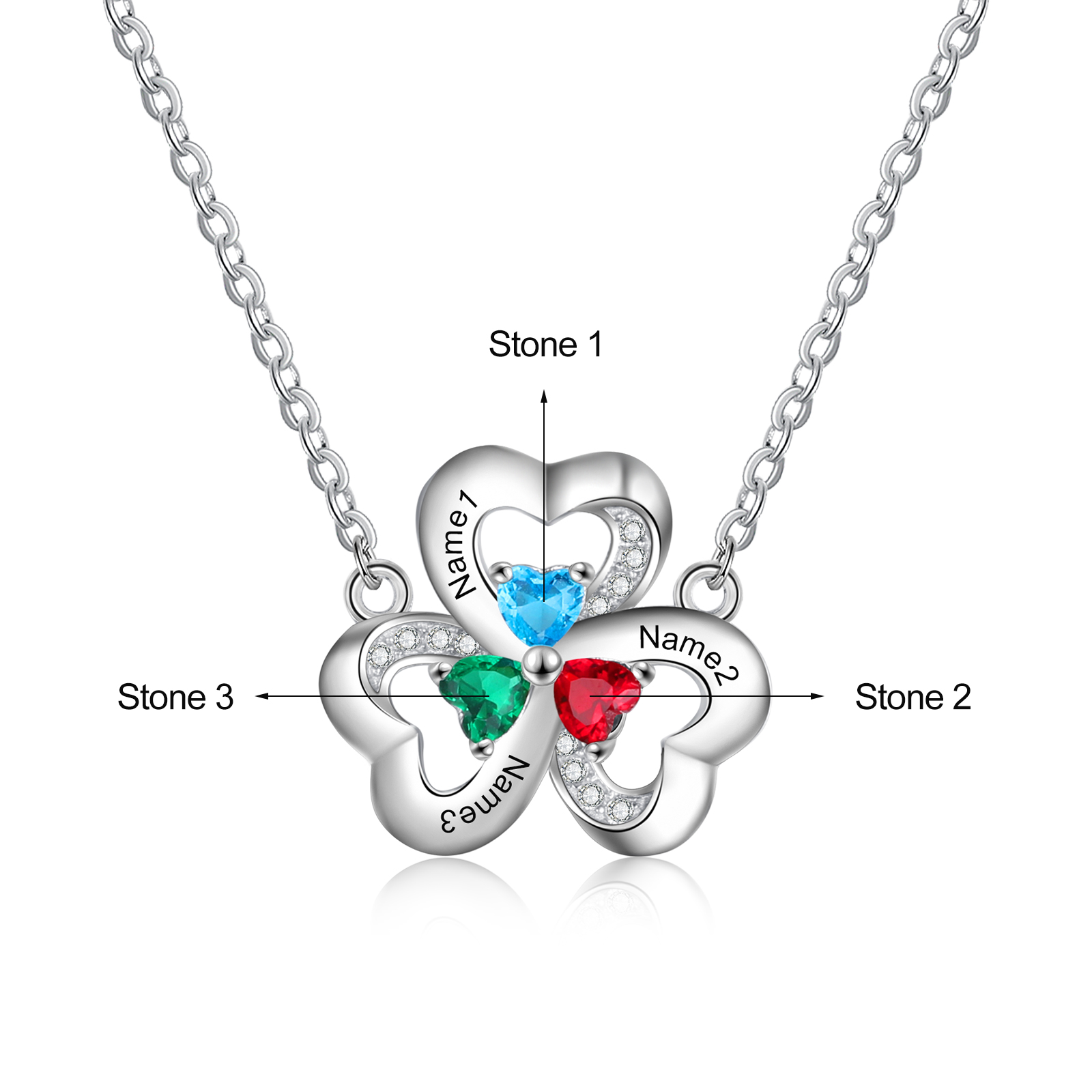 Collar para mujer con colgantes de corazón con 3 nombres personalizados y 3 piedras de nacimiento