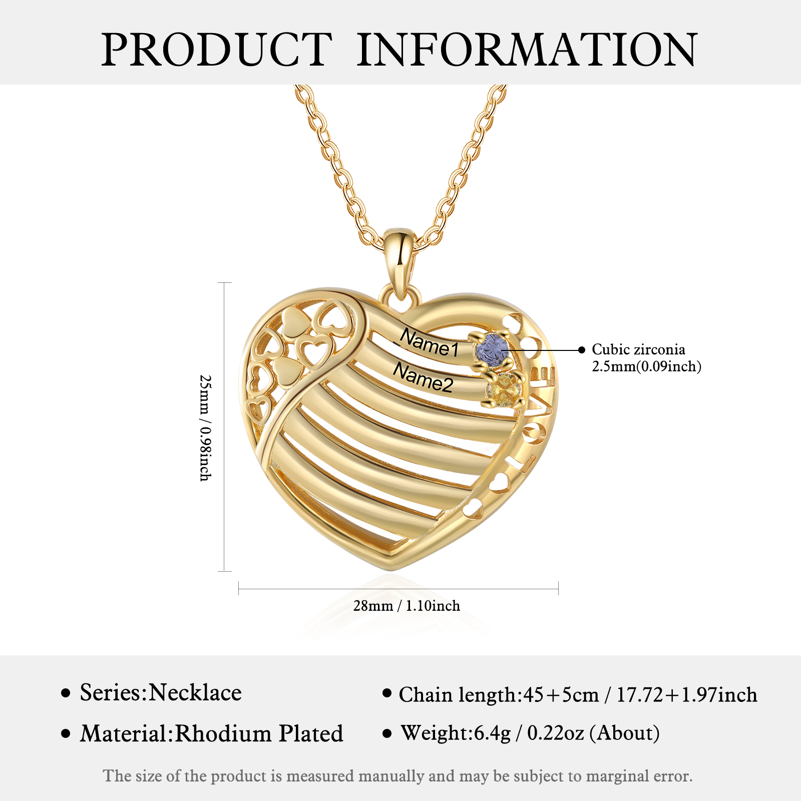 Collar para mujer de corazón 2 nombres personalizados con 2 piedras de nacimiento