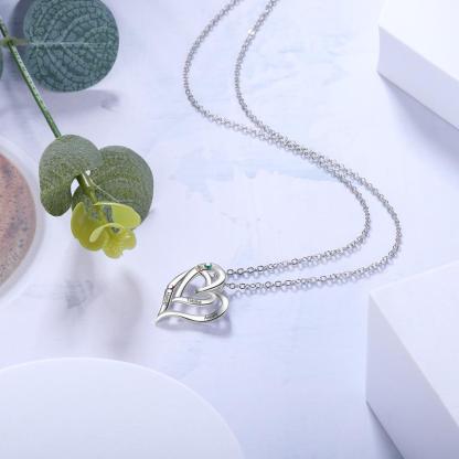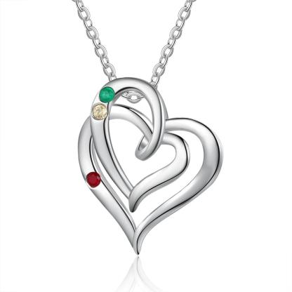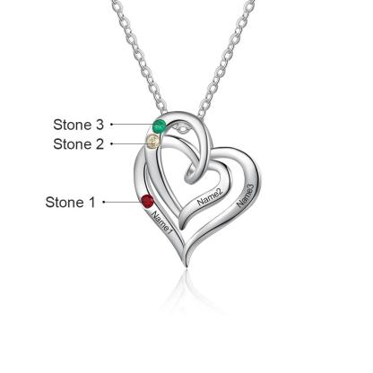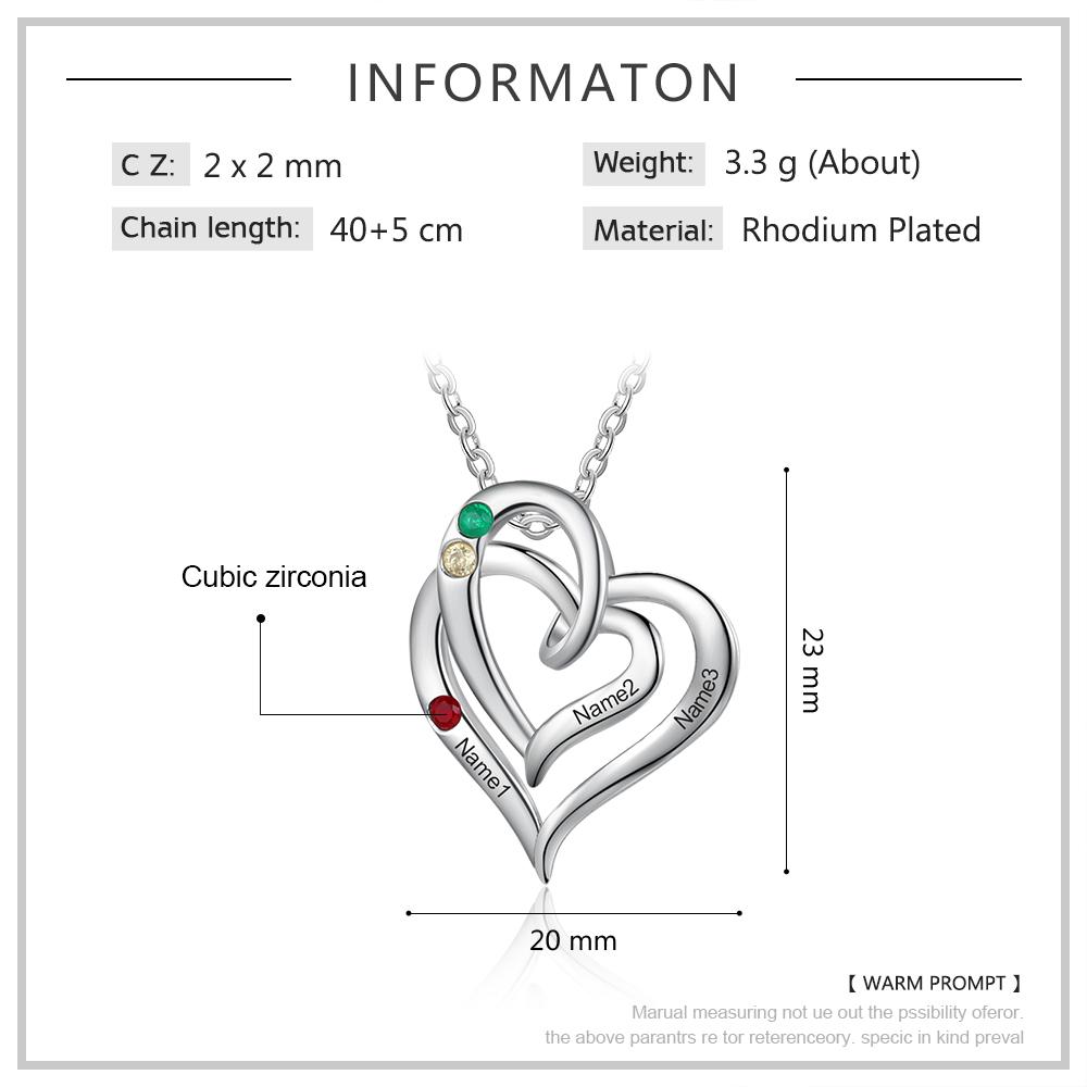 Collar para mujer de corazón con 3 nombres personalizados con 3 piedras de nacimiento