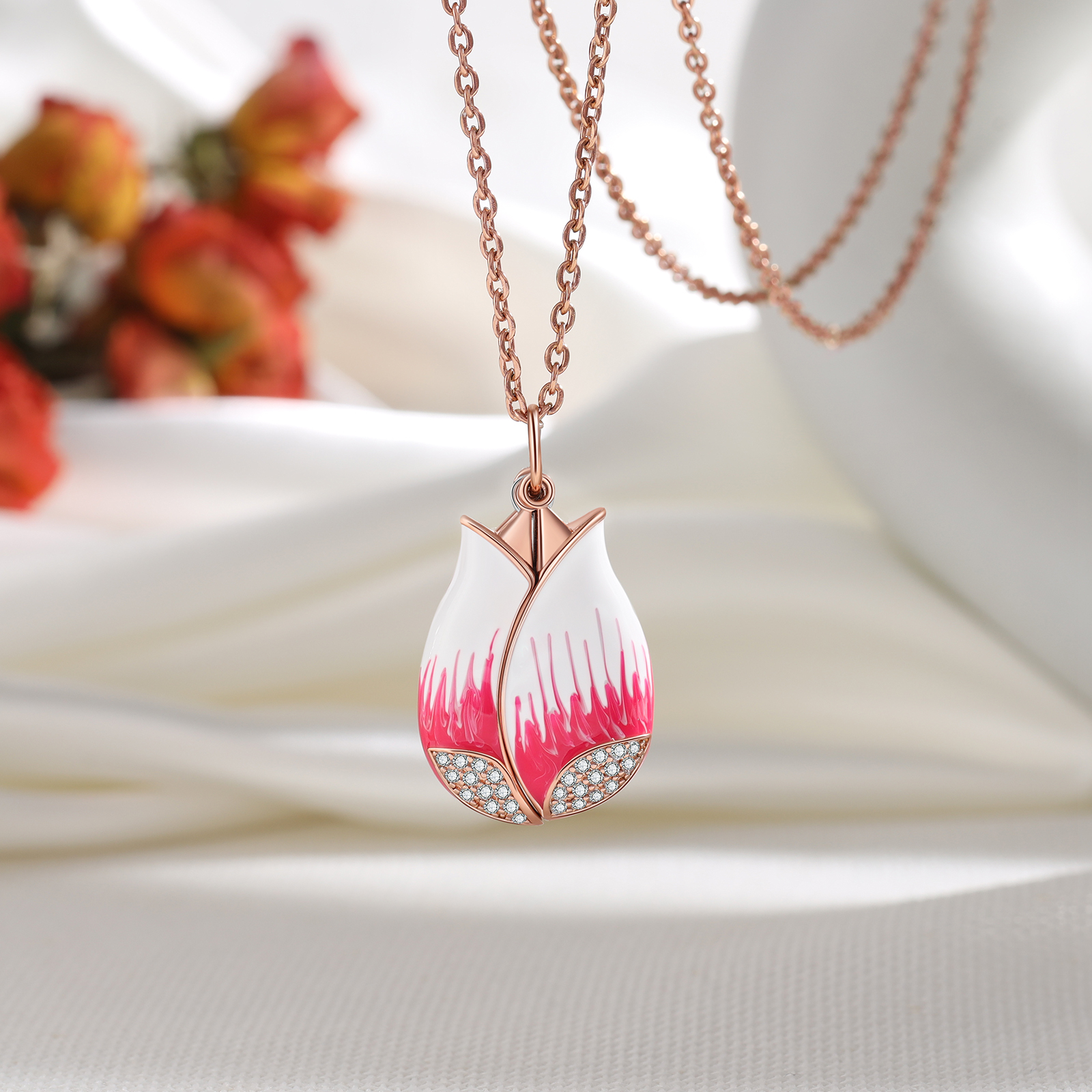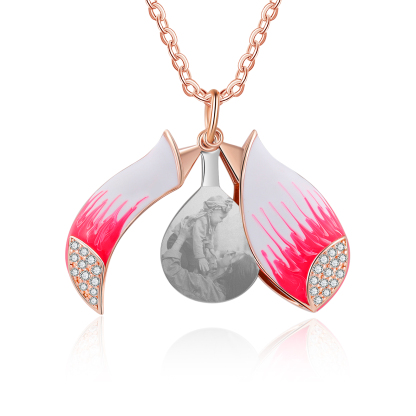 Collar para mujer de flor con foto personalizada con 1 texto