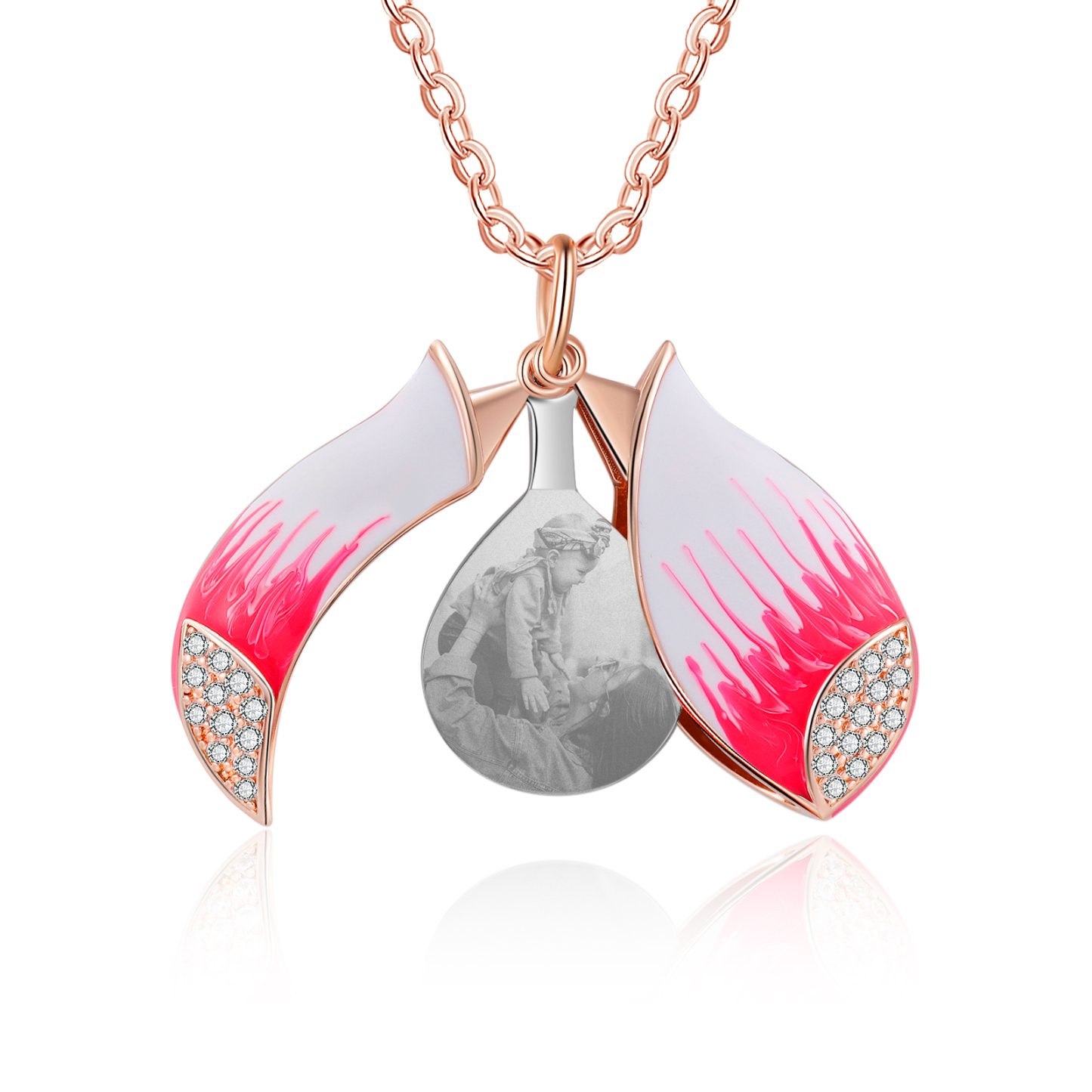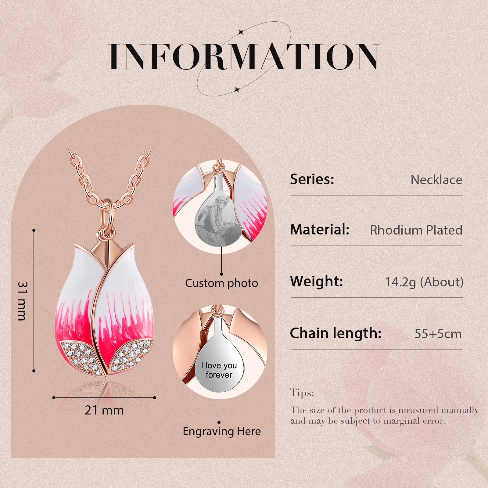 Una foto captura un momento que se ha ido para siempre y con nuestro collar con foto de flor de plata grabada puedes usar la foto todos los días. Personaliza tu amuleto de corazón con una foto grabada de tu mejor recuerdo. Puede grabar cualquier palabra que desee expresar en la parte posterior del colgante.