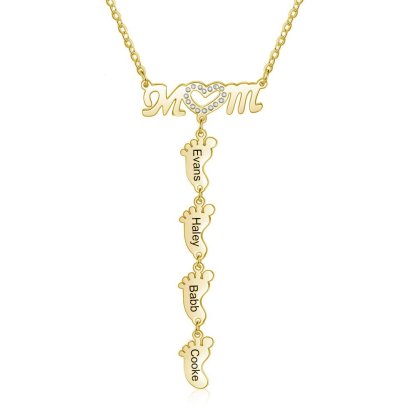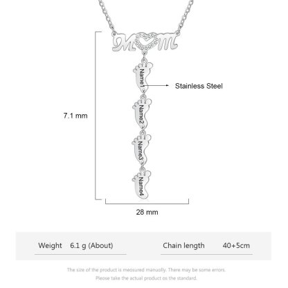 El collar tiene colgantes de pie de bebé y se puede grabar los nombres de los familiares en él. Es un excelente regalo para madres y abuelas, opción perfecta para expresar amor.