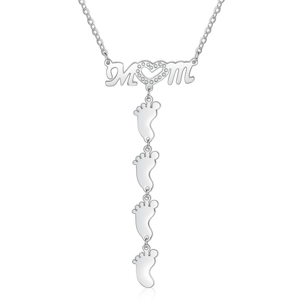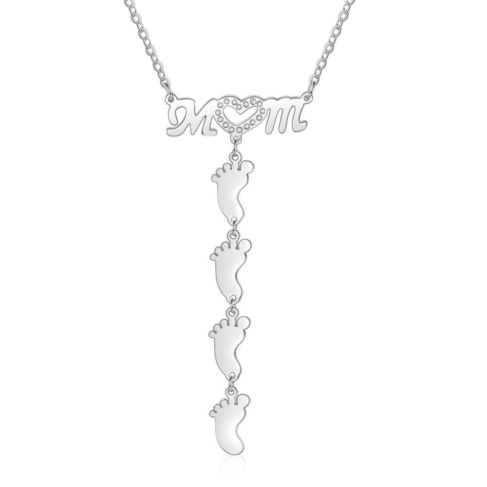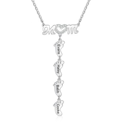 Collar a mamá "MoM" con colgante de huellas personalizadas con 4 nombres