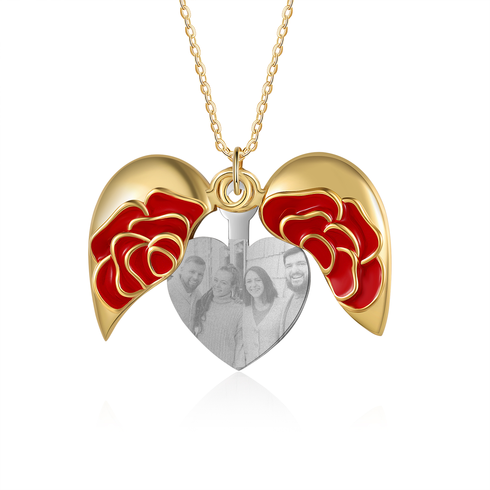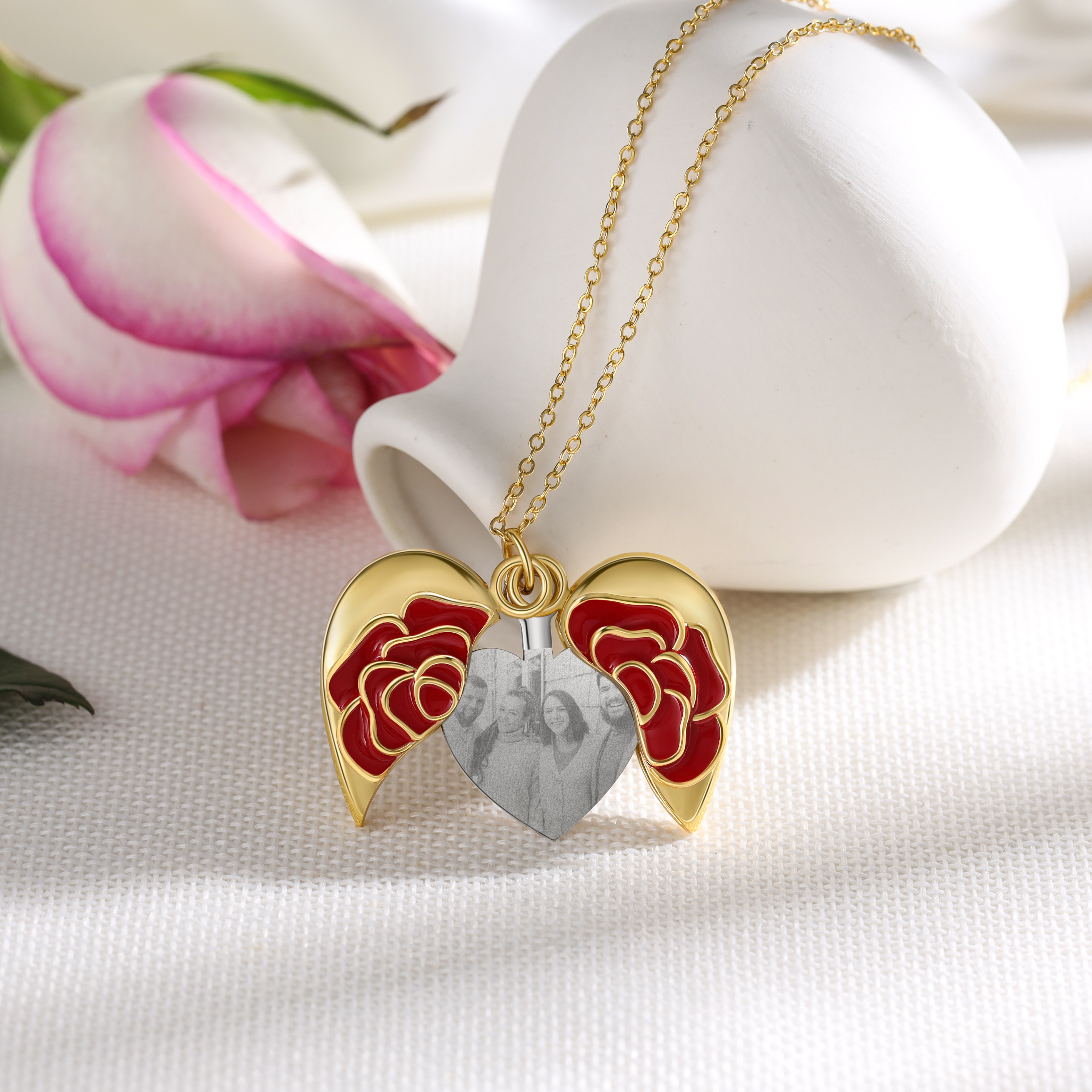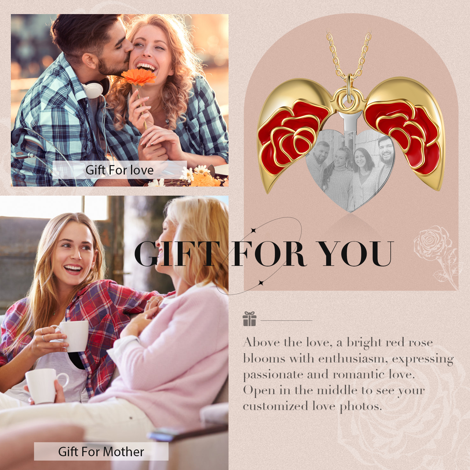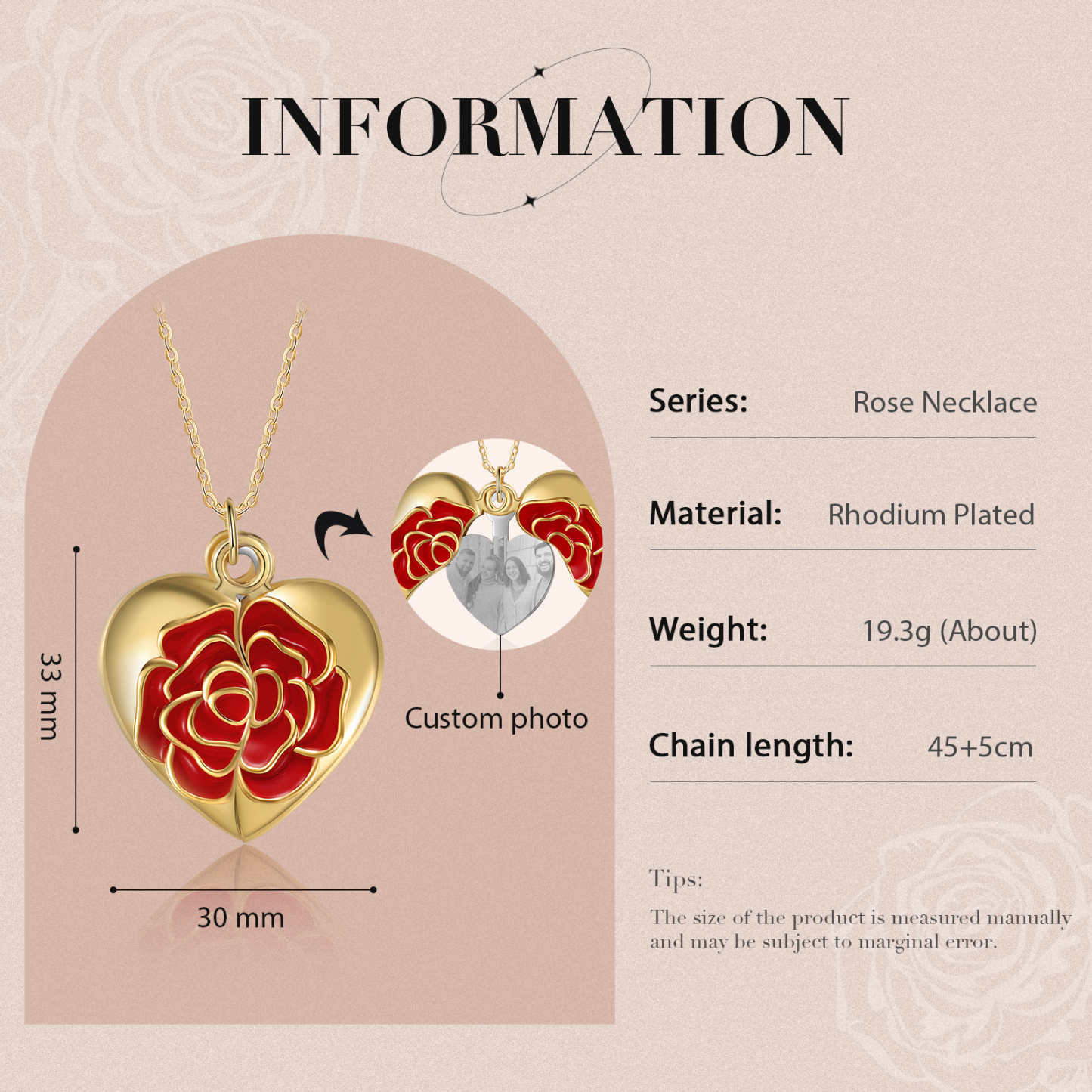 Collar para mujer en forma de corazón de rosa con 1 foto personalizada