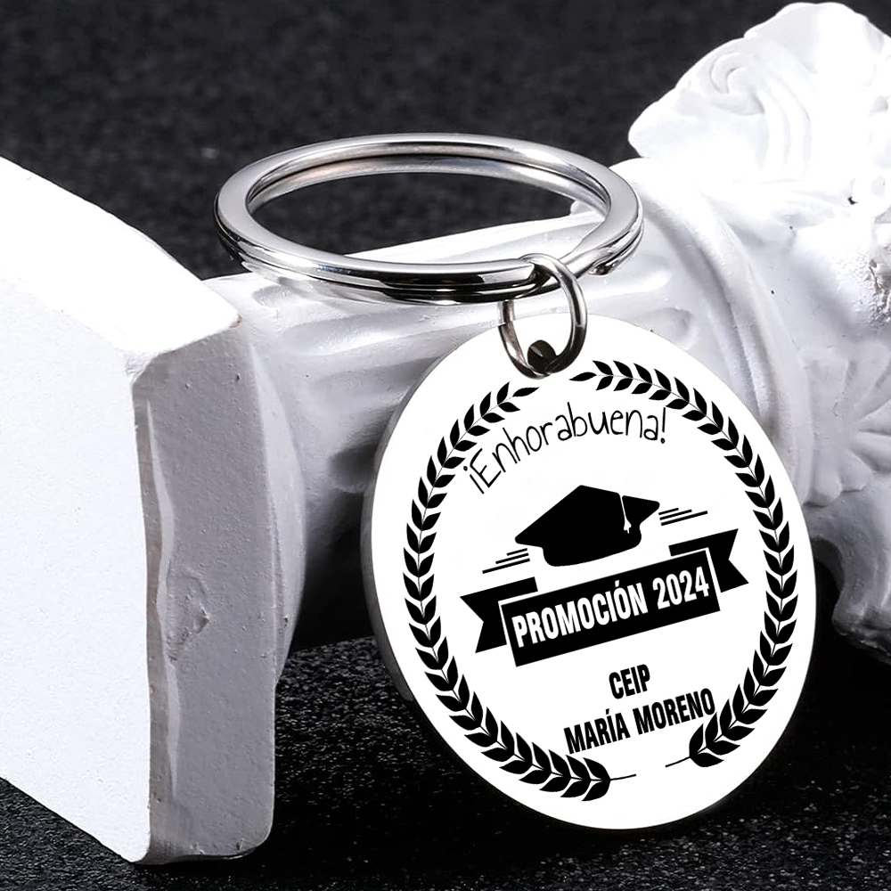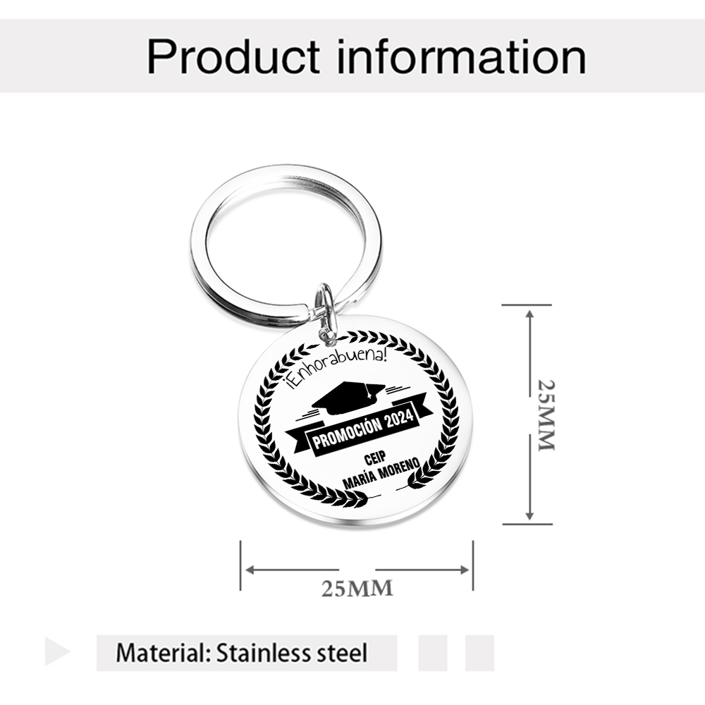 Graduación de CEIP-Llavero de placa redonda personalizado con 1 texto y año