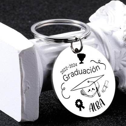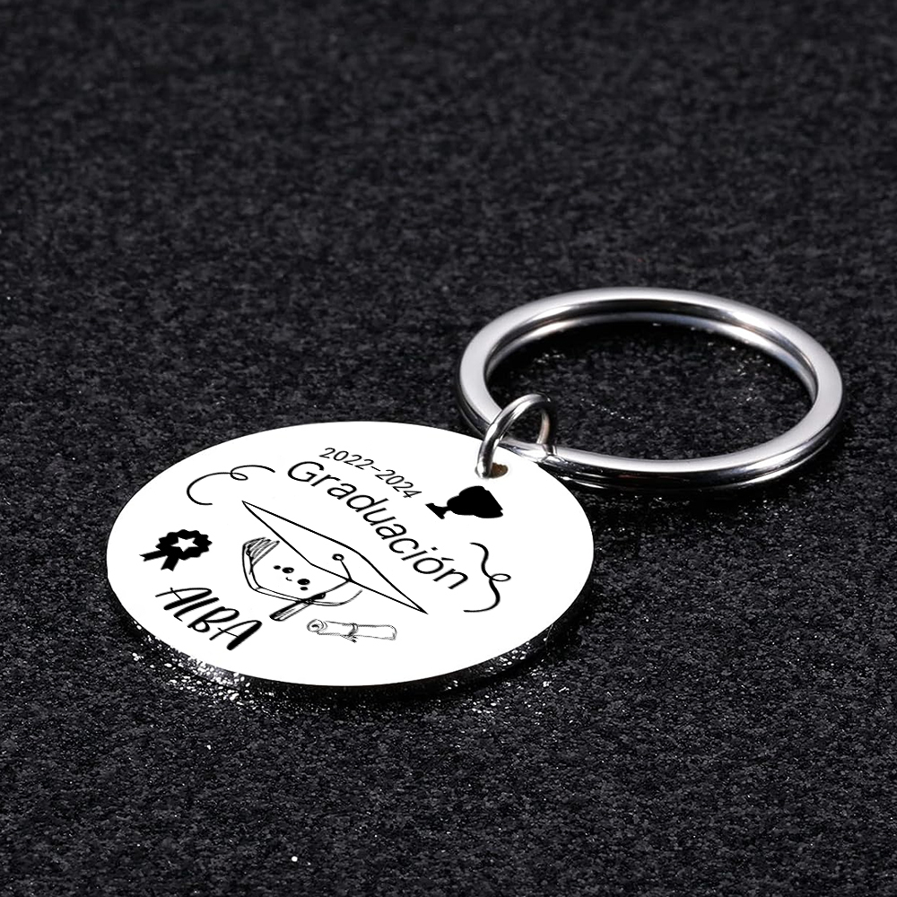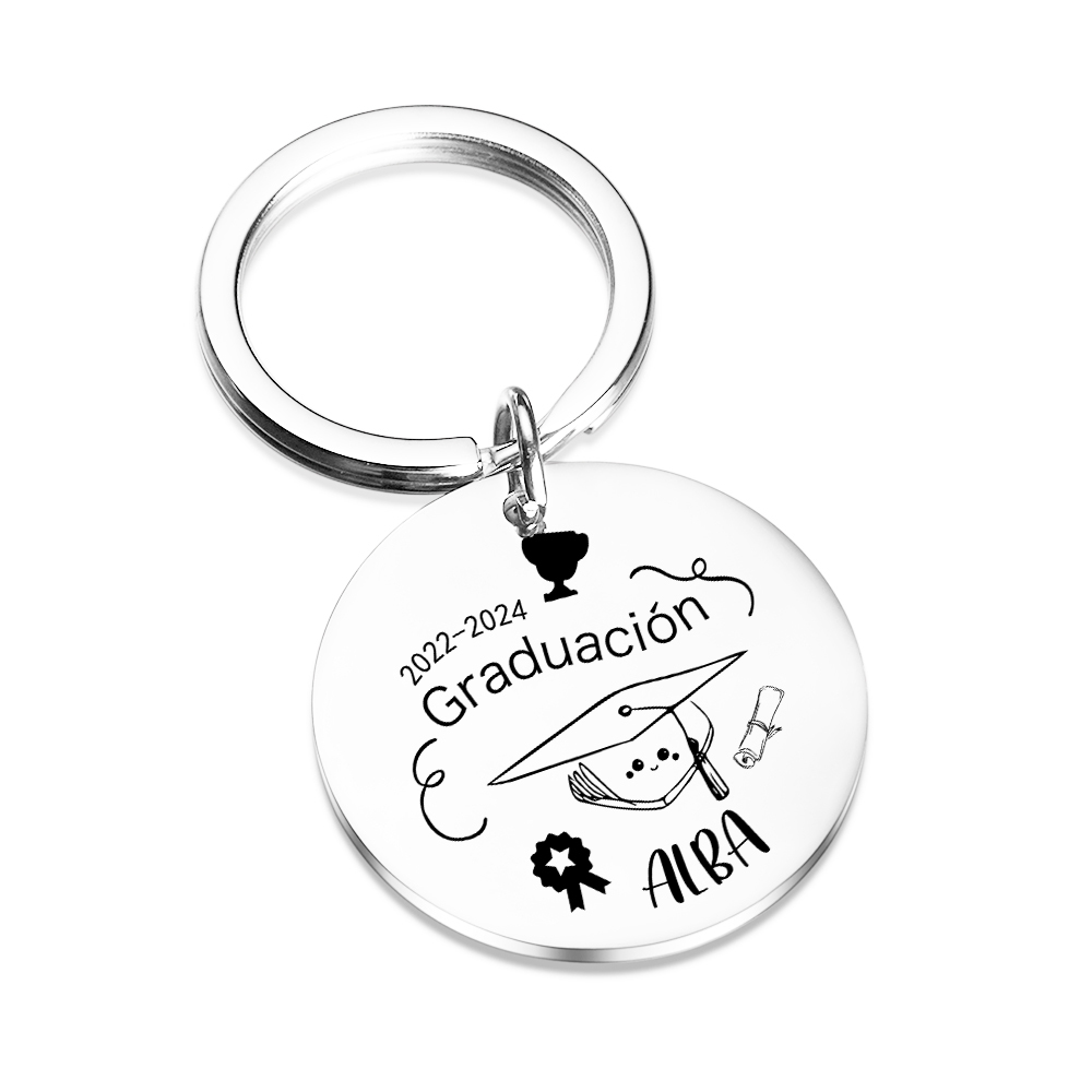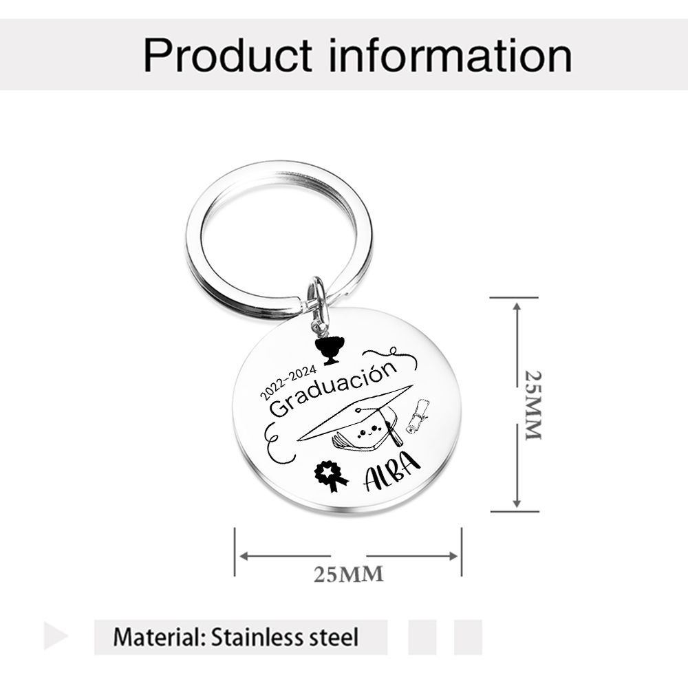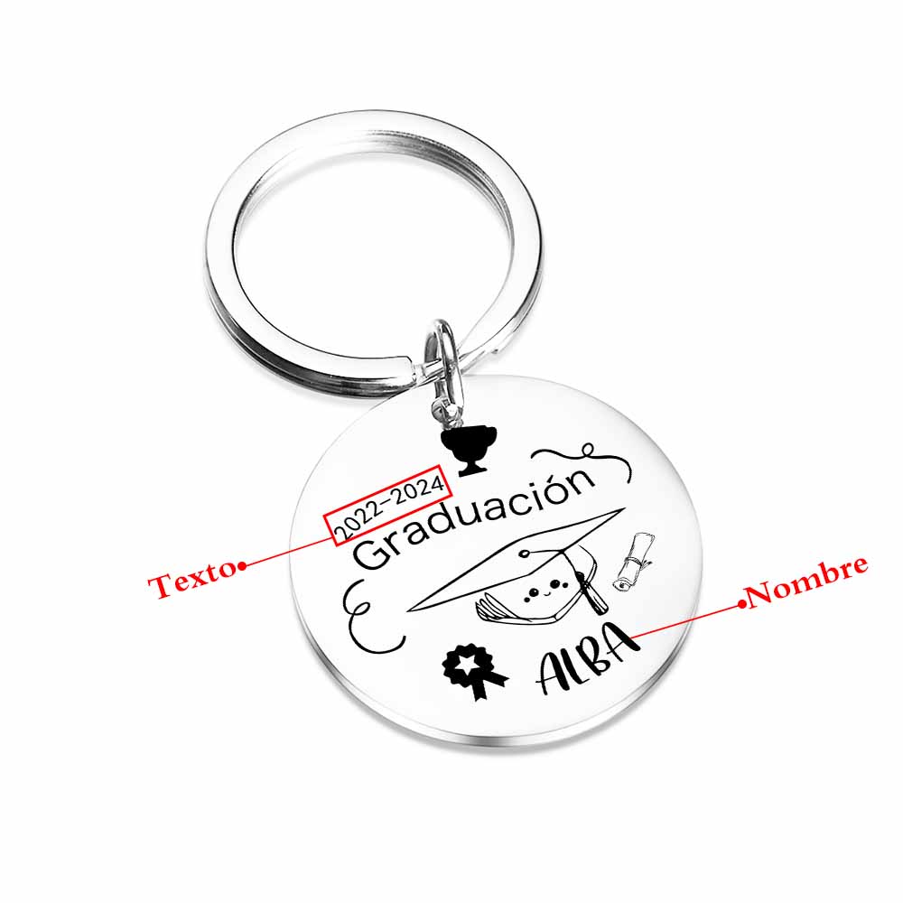 Graduación-Llavero de placa redonda personalizado con 1 nombre y 1 texto