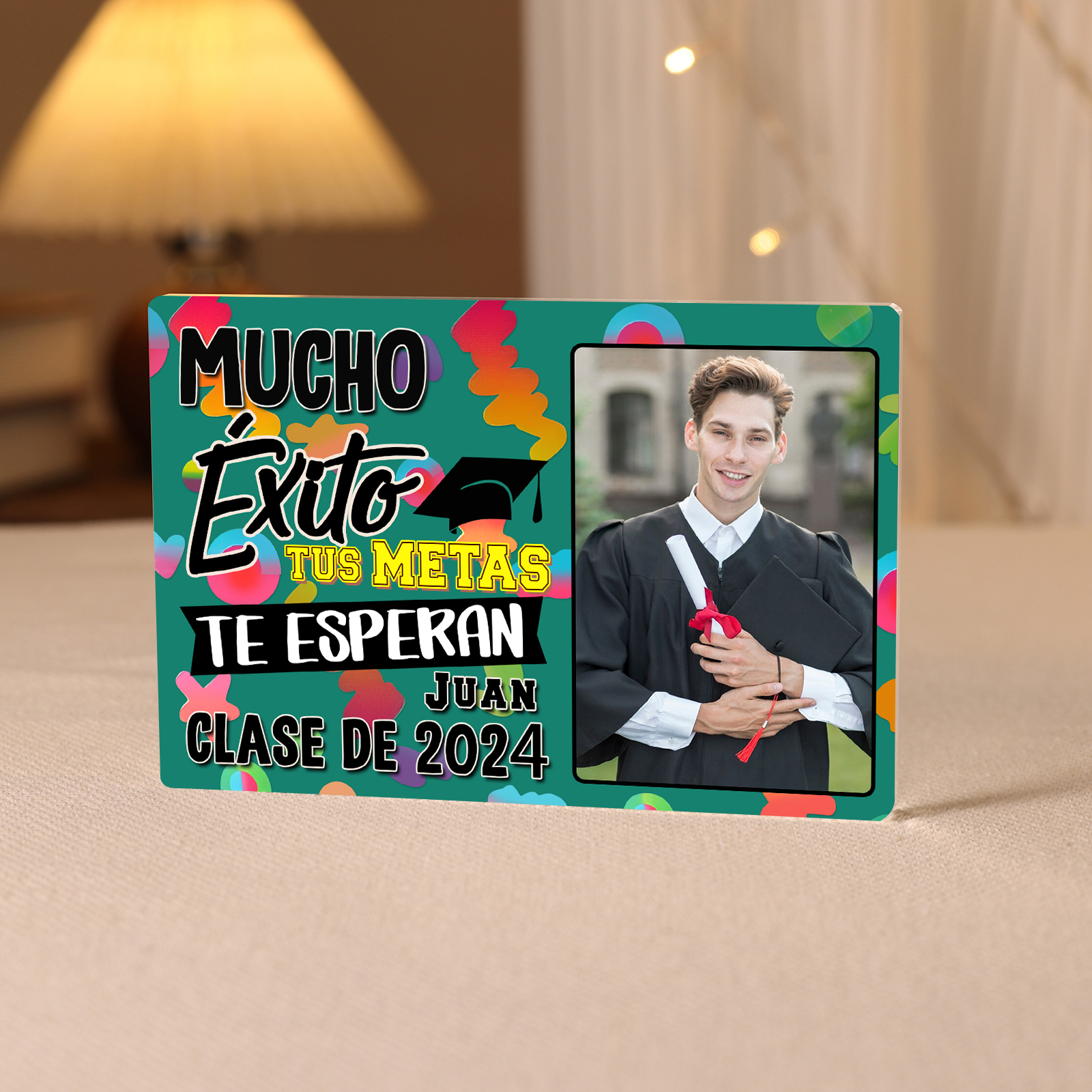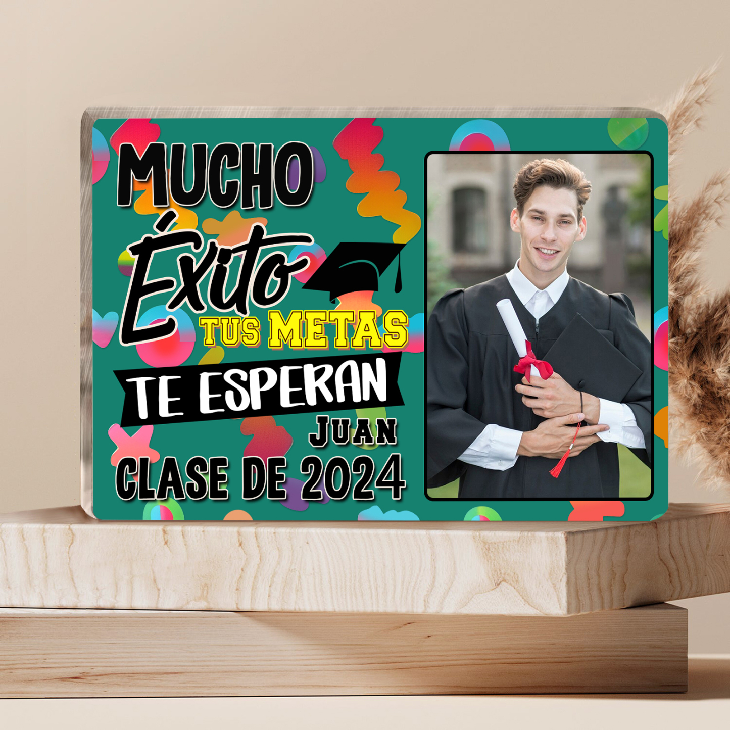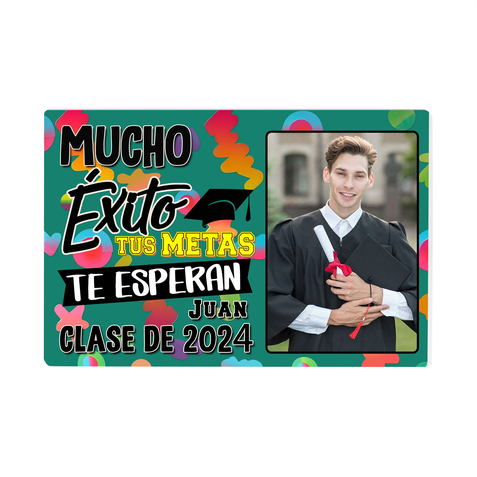 Graduación-Placa de rectángulo de acrílico personalizado con 1 nombre, 1 texto y 1 foto