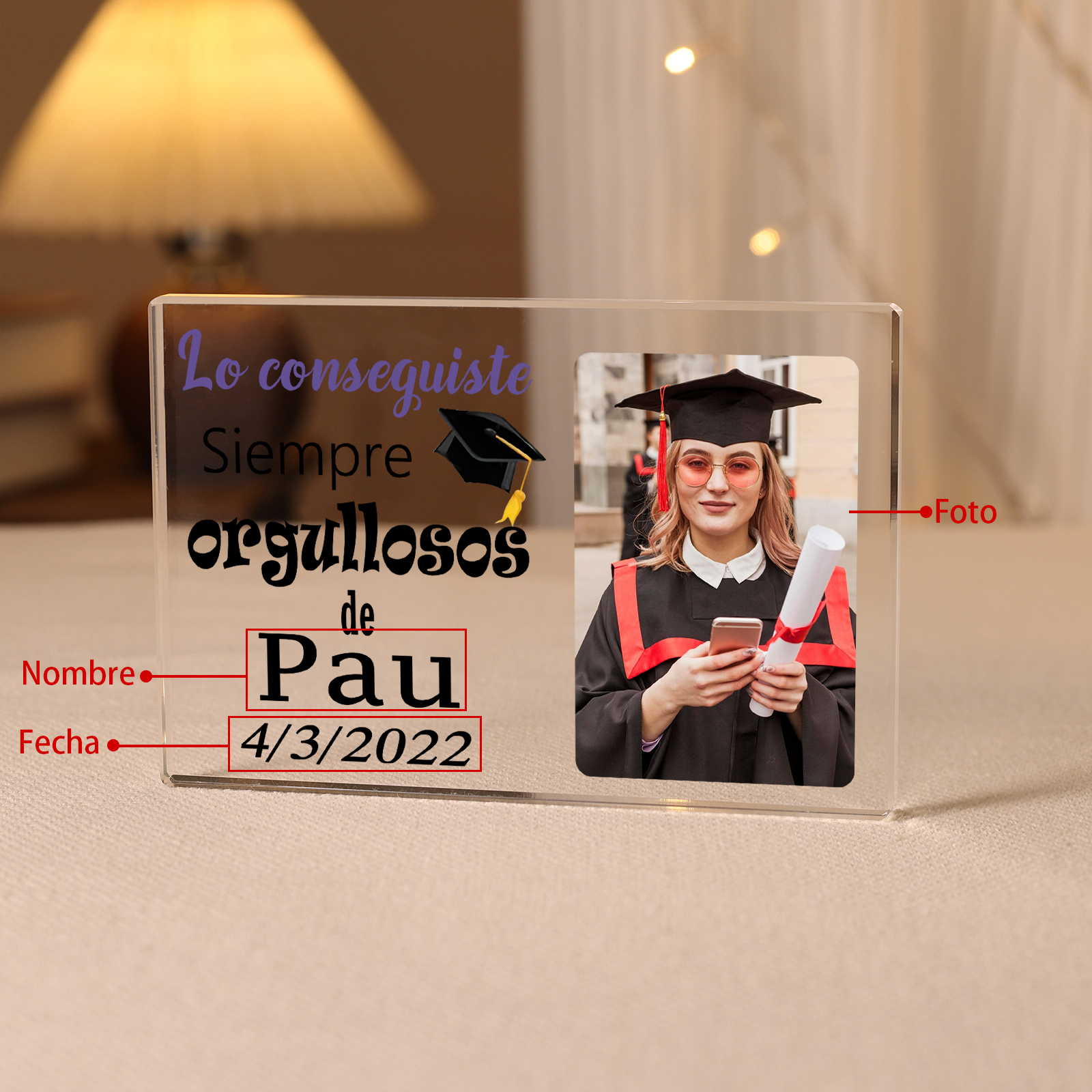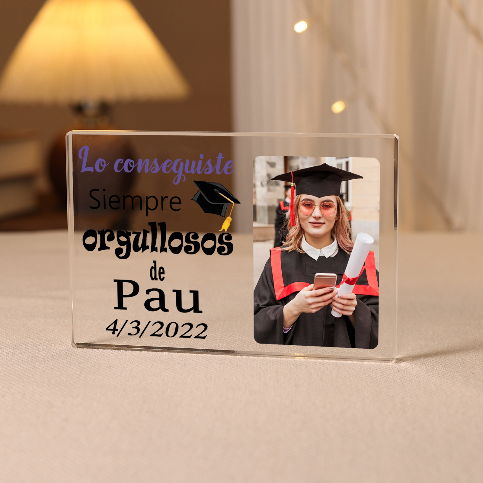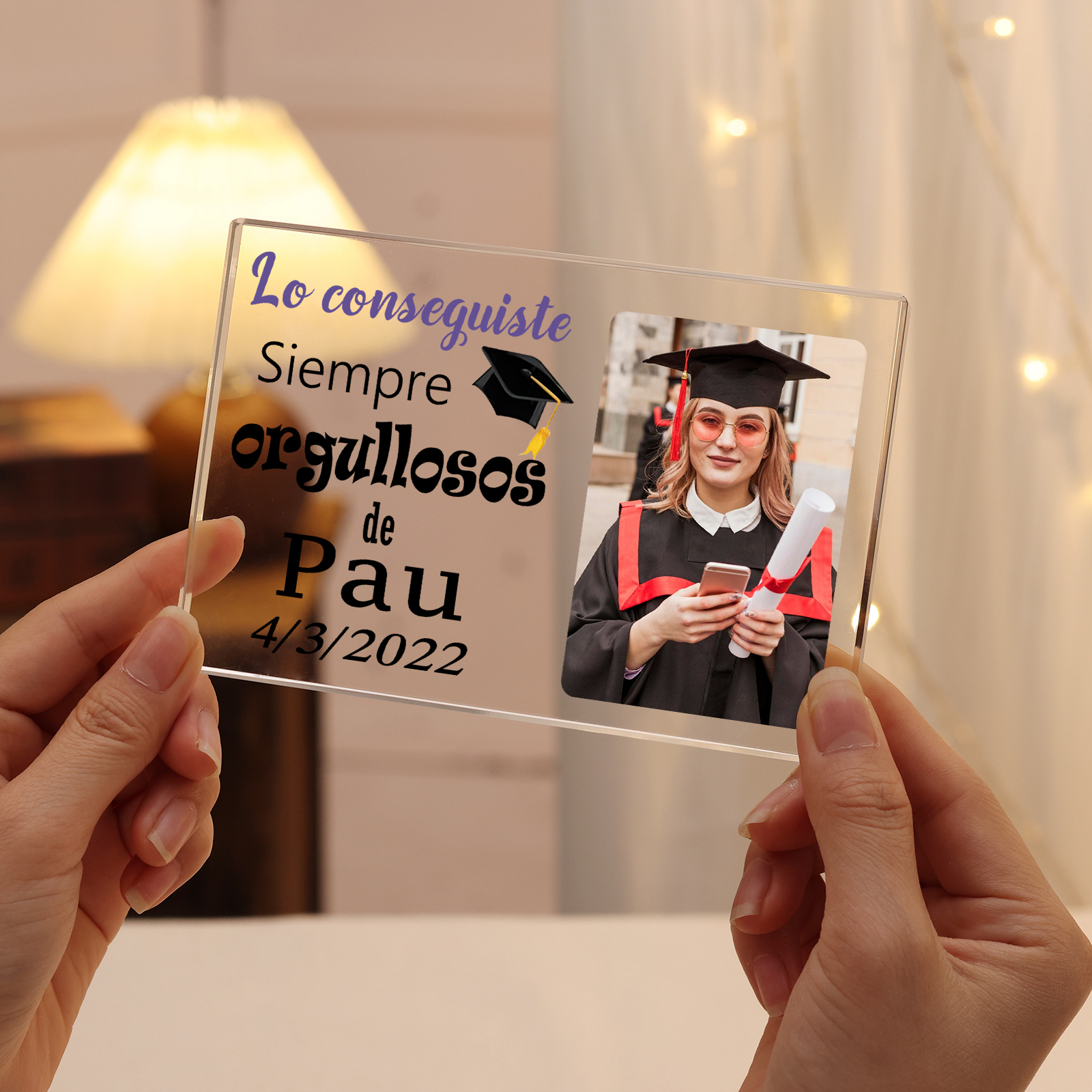 Graduación-Placa de rectángulo de acrílico personalizado con 1 nombre, 1 texto y 1 foto
