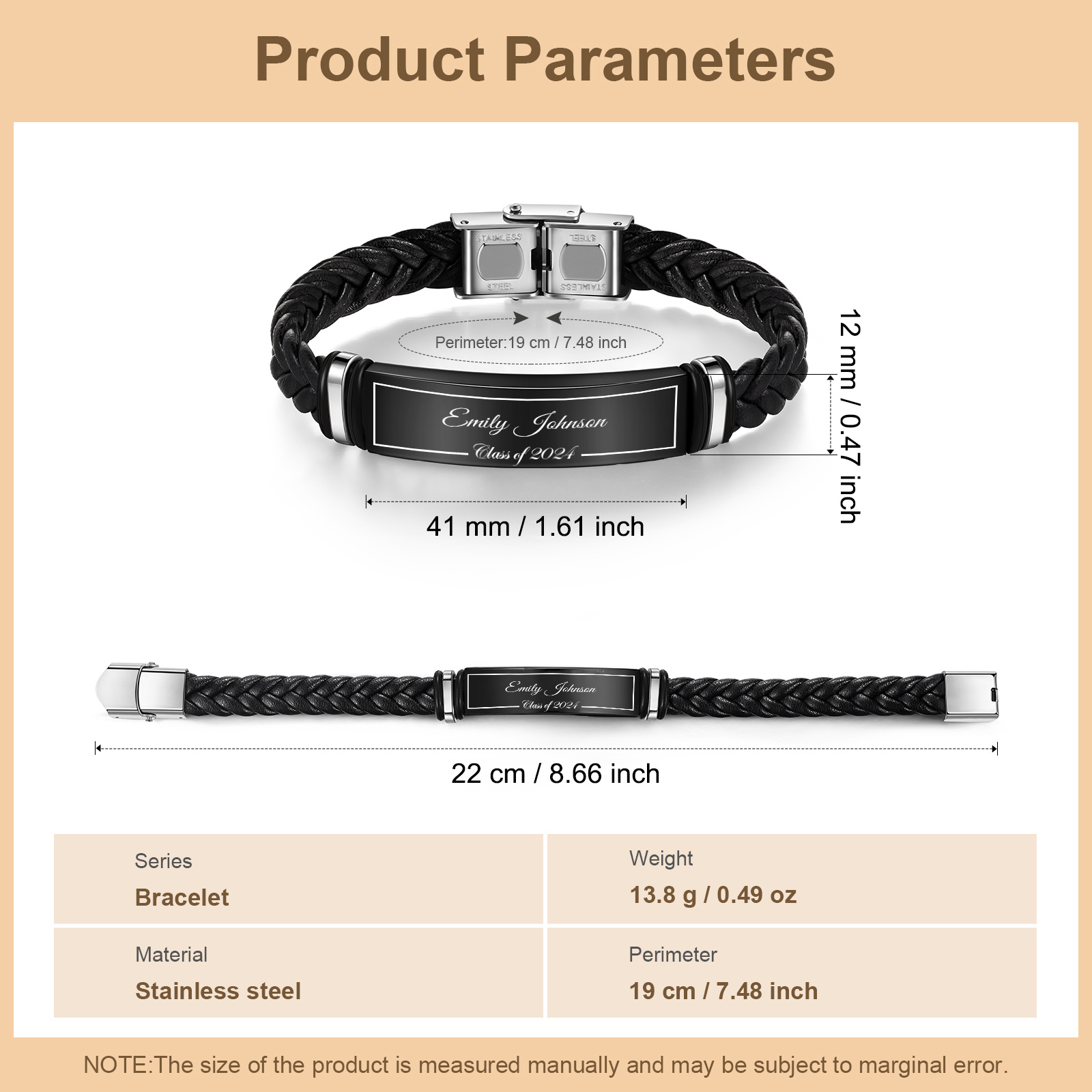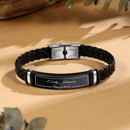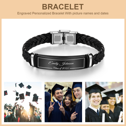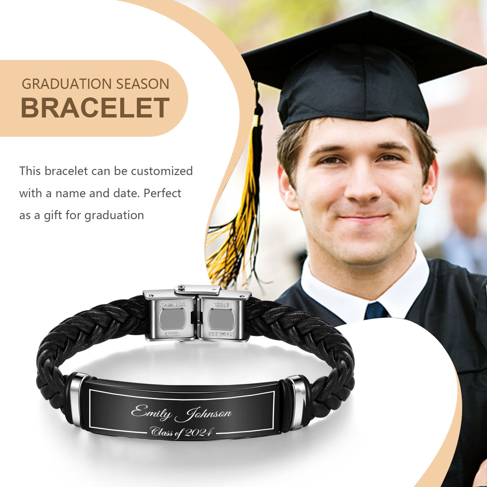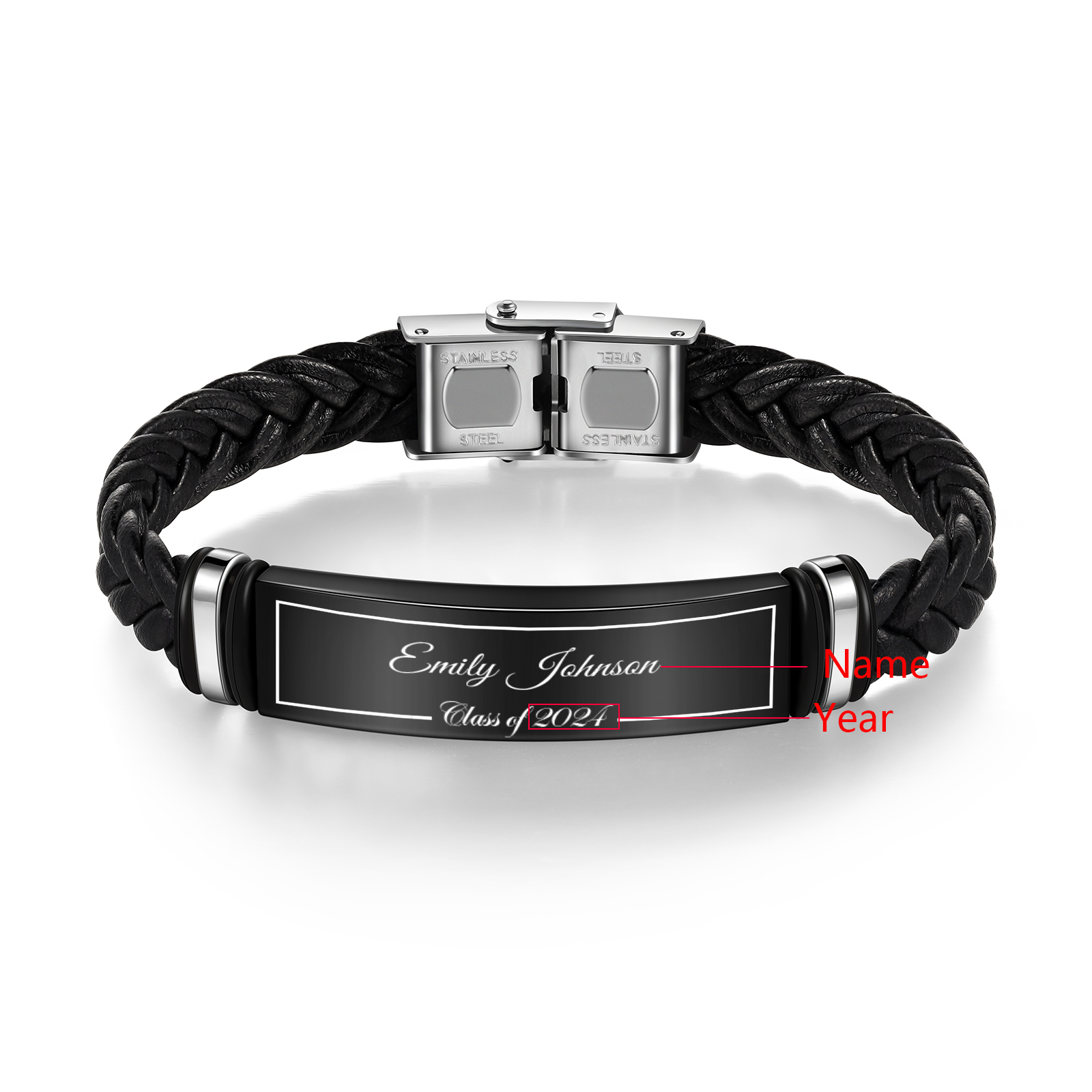 Graduación-Pulsera de cuero con placa personalizada con 1 nombre y año