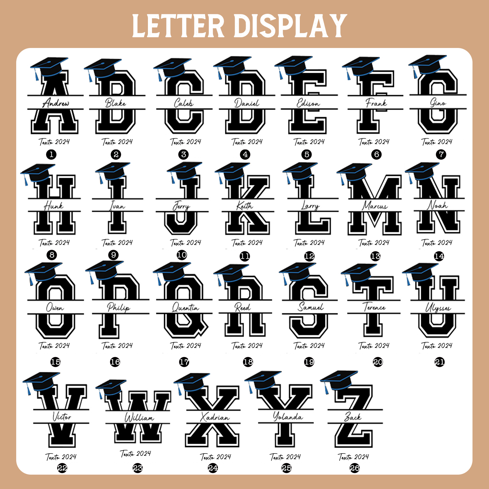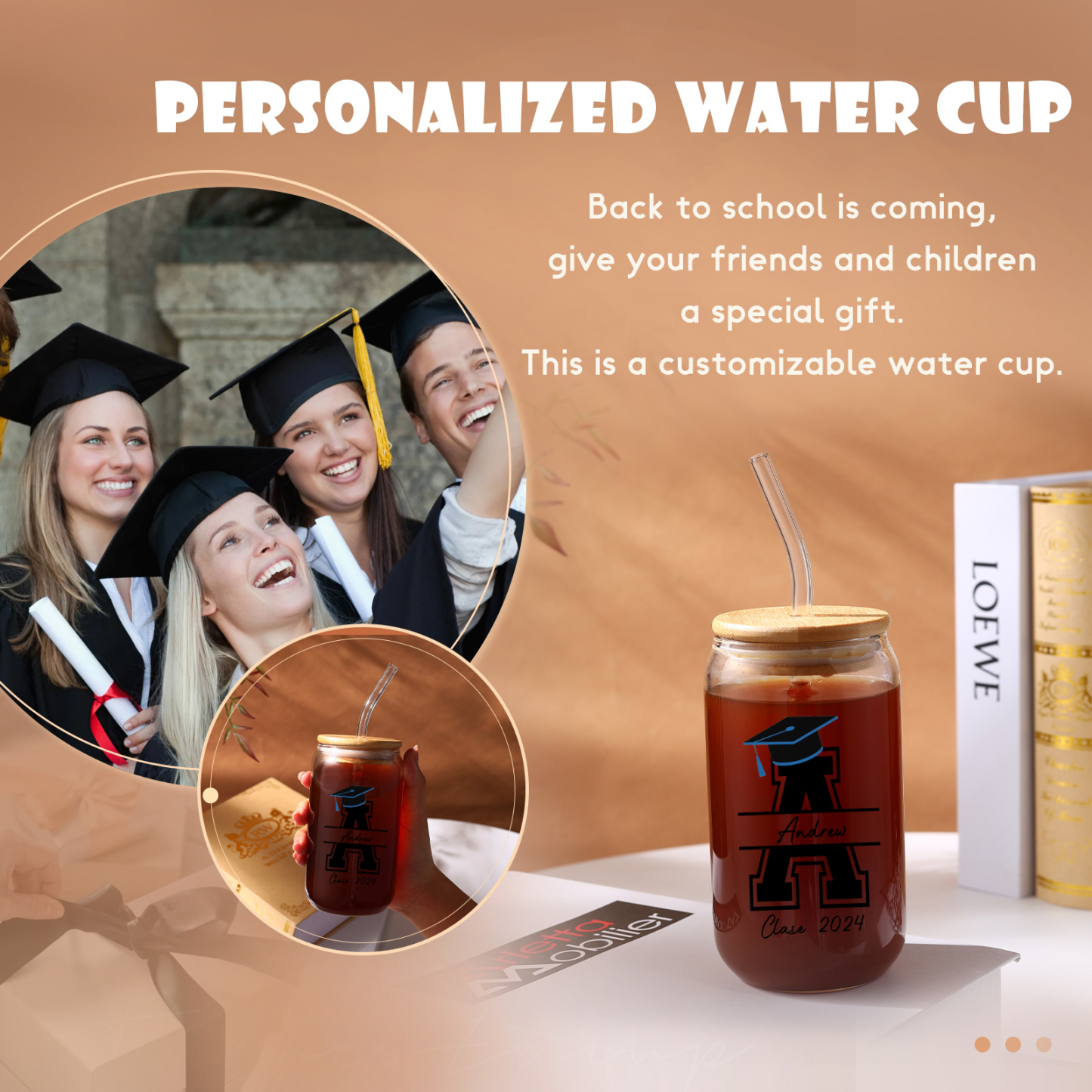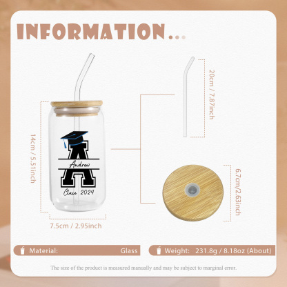Graduación-Vaso con tapa y cañita personalizado con 1 nombre, letra y texto