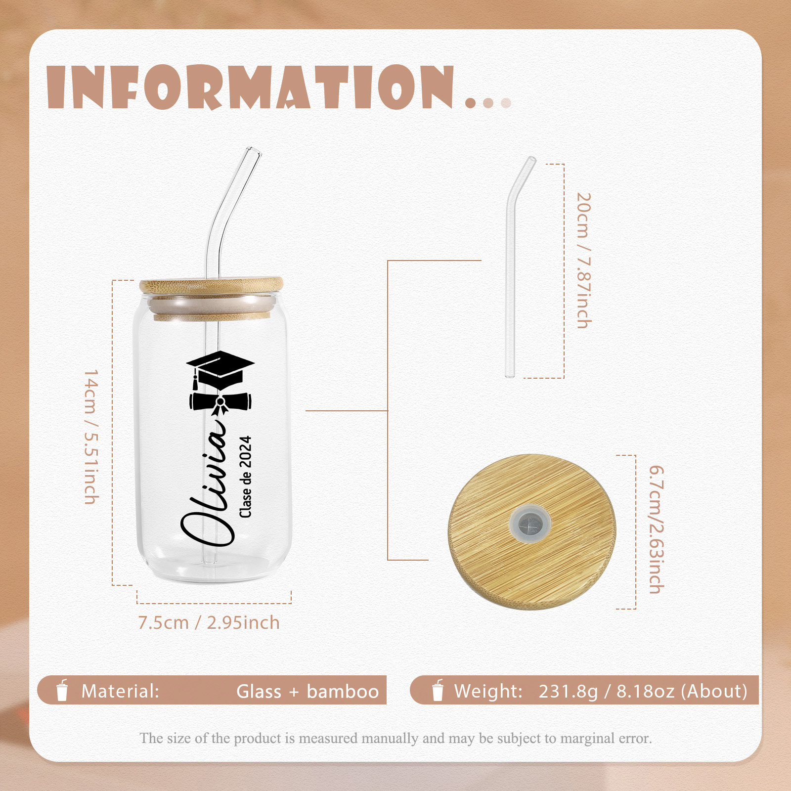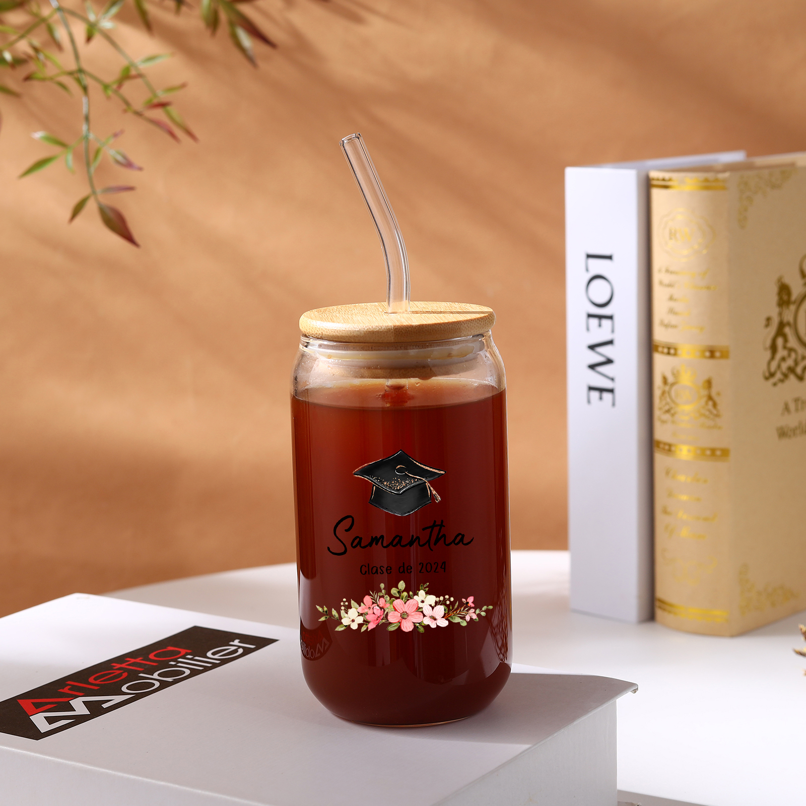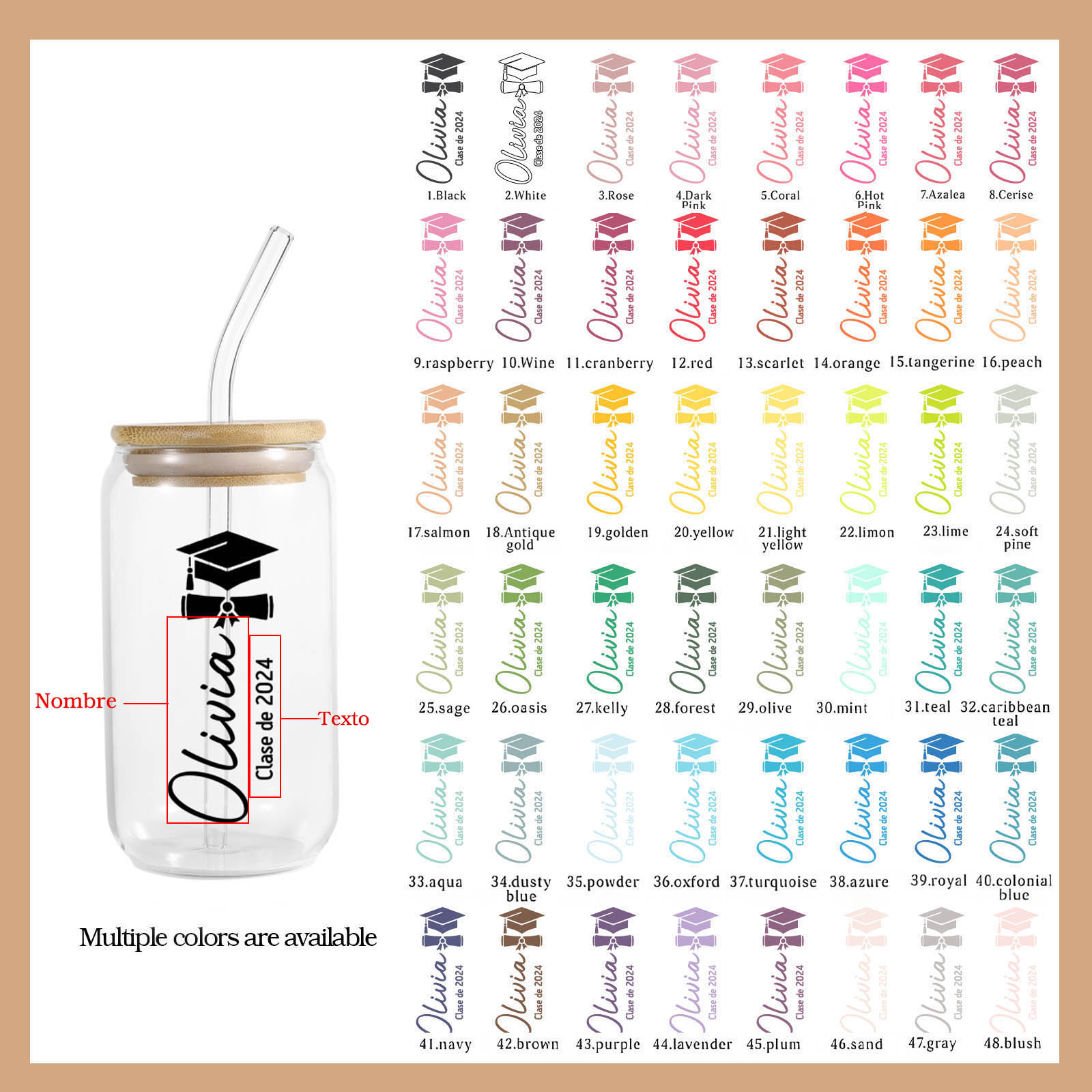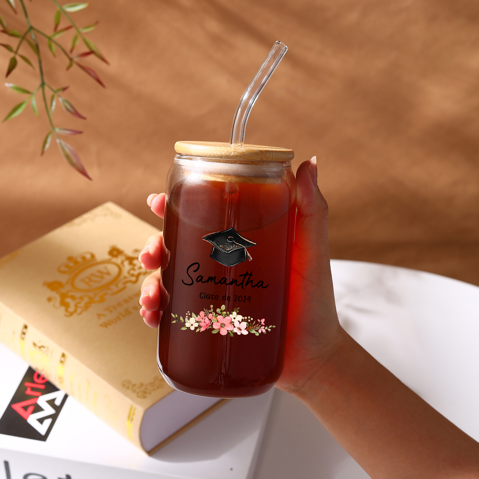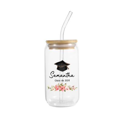 Graduación-Vaso con tapa y cañita personalizado con 1 nombre y texto