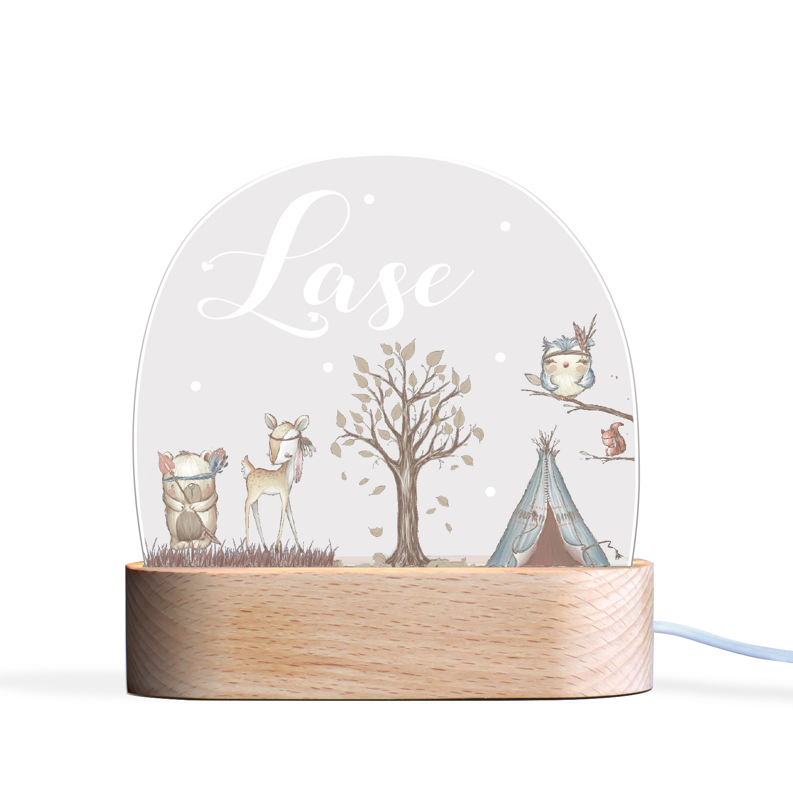 Lámpara 3D de noche madera y acrílico personalizada con nombre