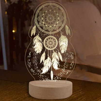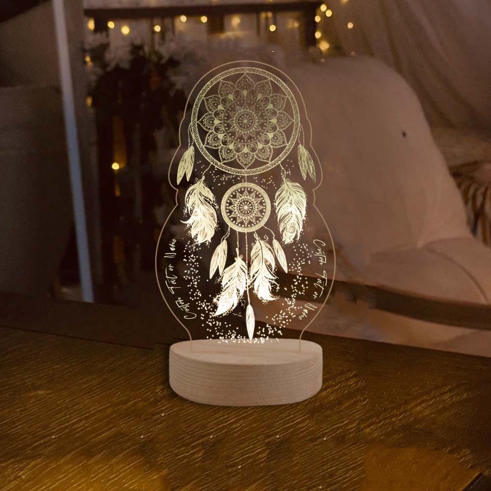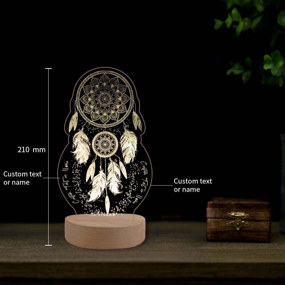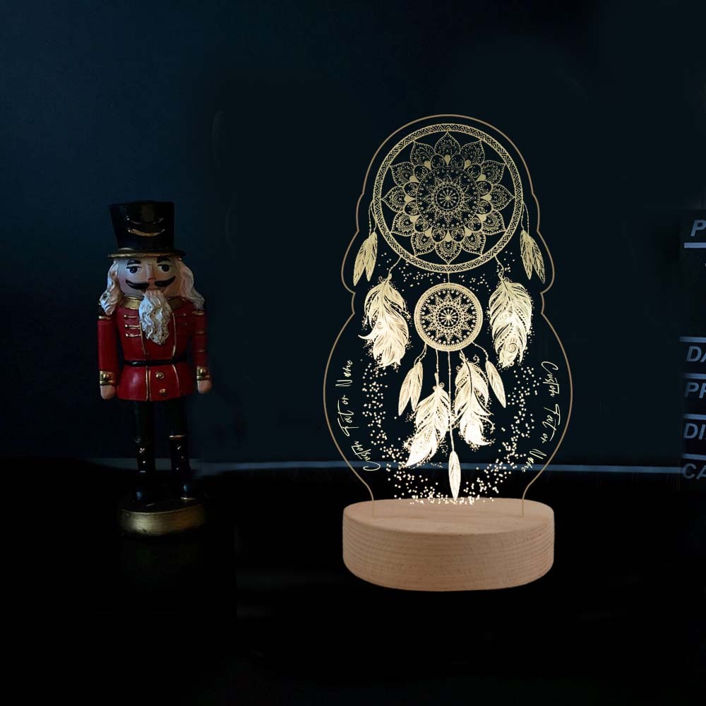 Lámpara 3D Ilusión Luz de noche LED atrapasueños luces monocromáticas personalizadas 2 textos