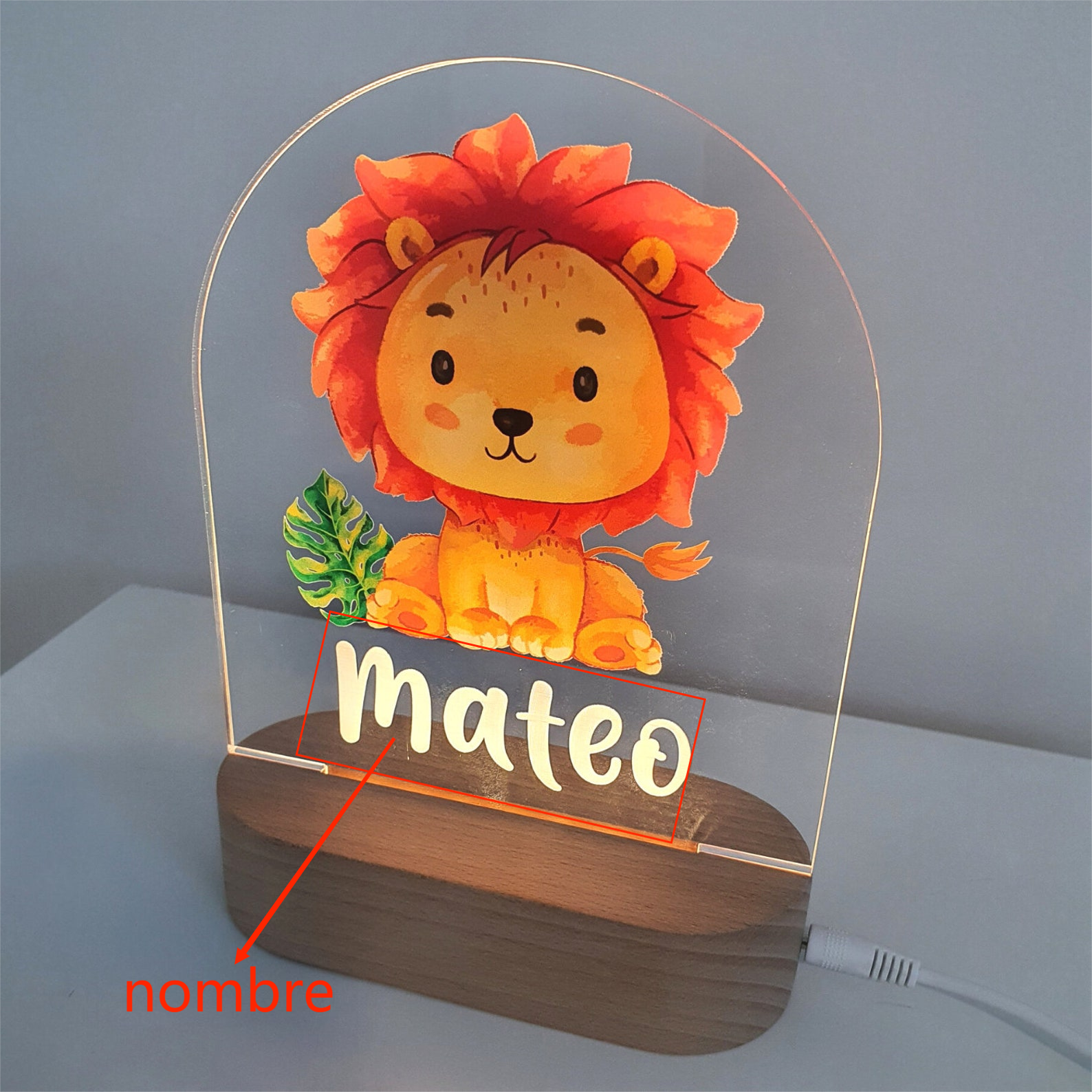 Nombre personalizado Lámpara 3D Ilusión Luz de noche león LED monocromáticas