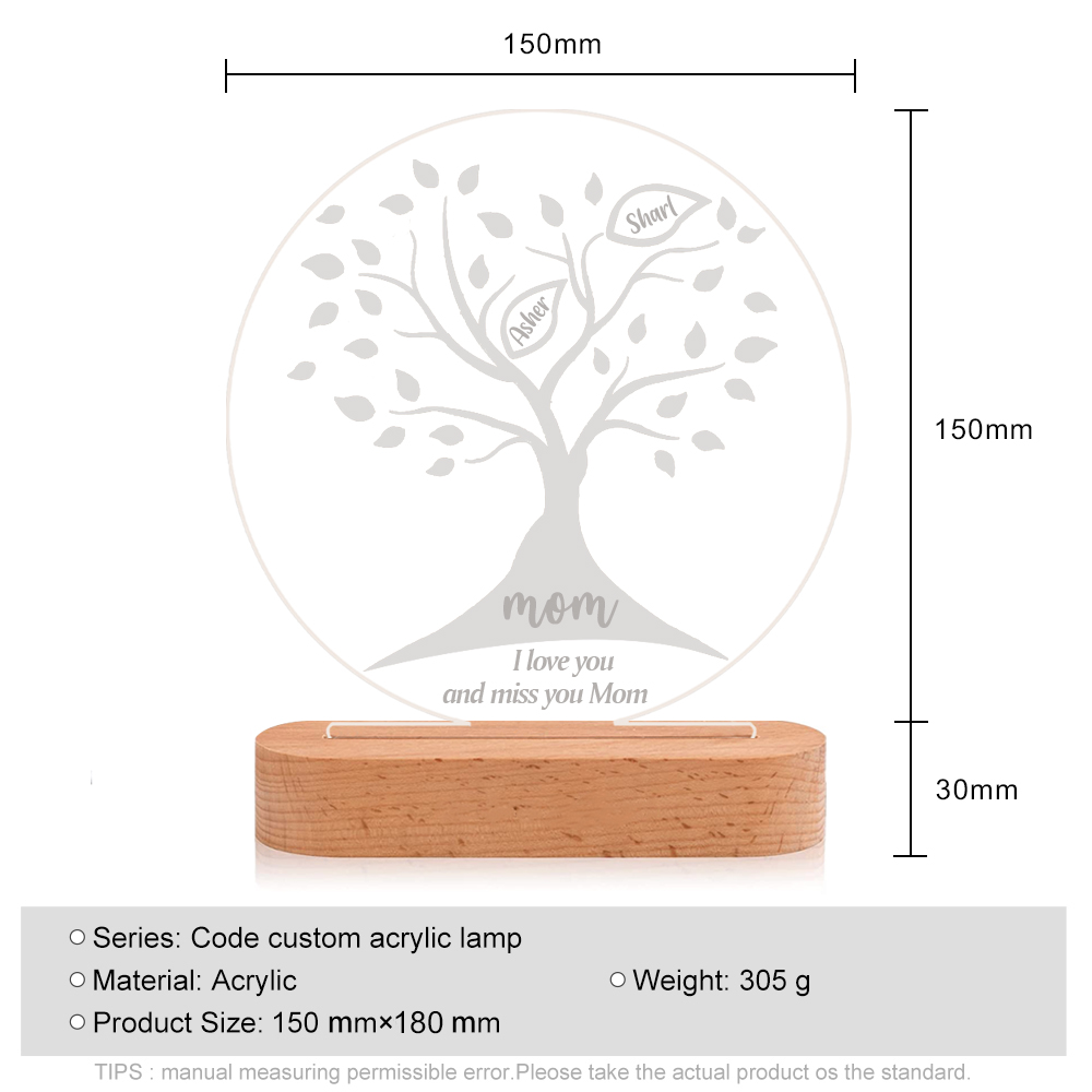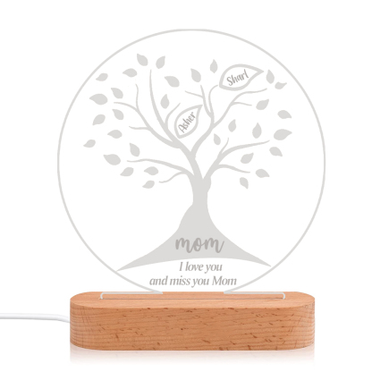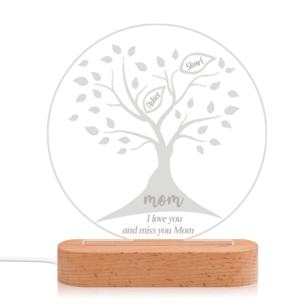 Lámpara de noche LED Árbol de la vida Árbol genealógico 2 nombres personalizados con 2 textos