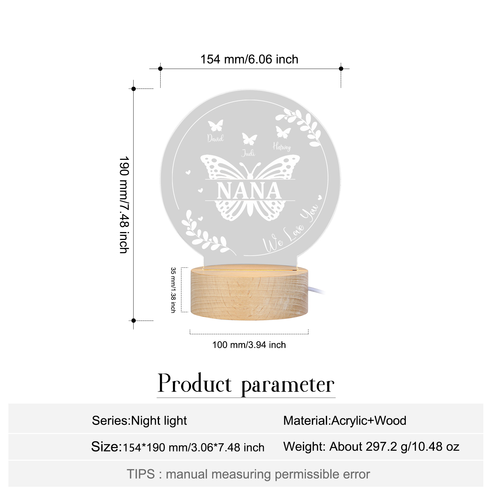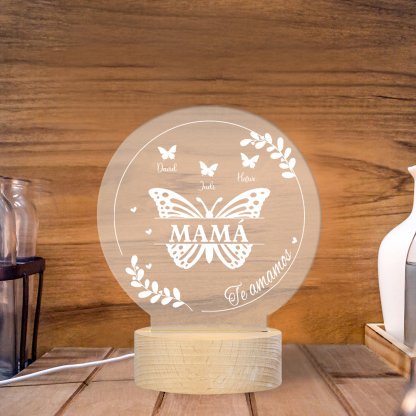 Lámpara de noche LED Mariposas 1 texto y 4 nombres personalizados