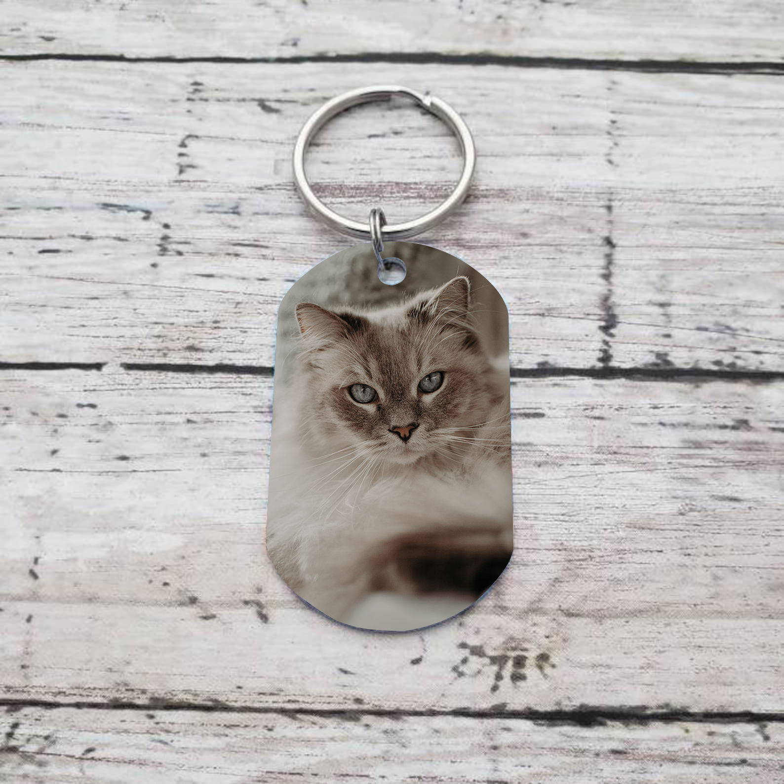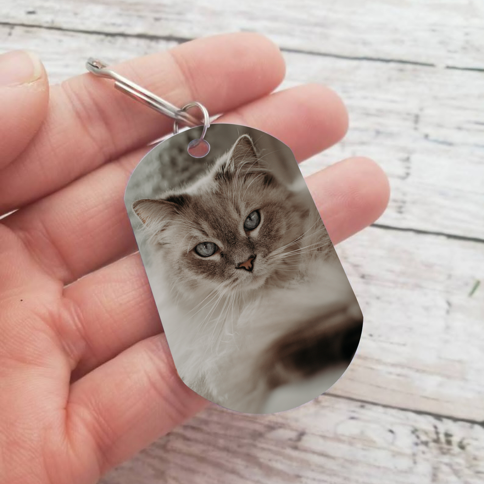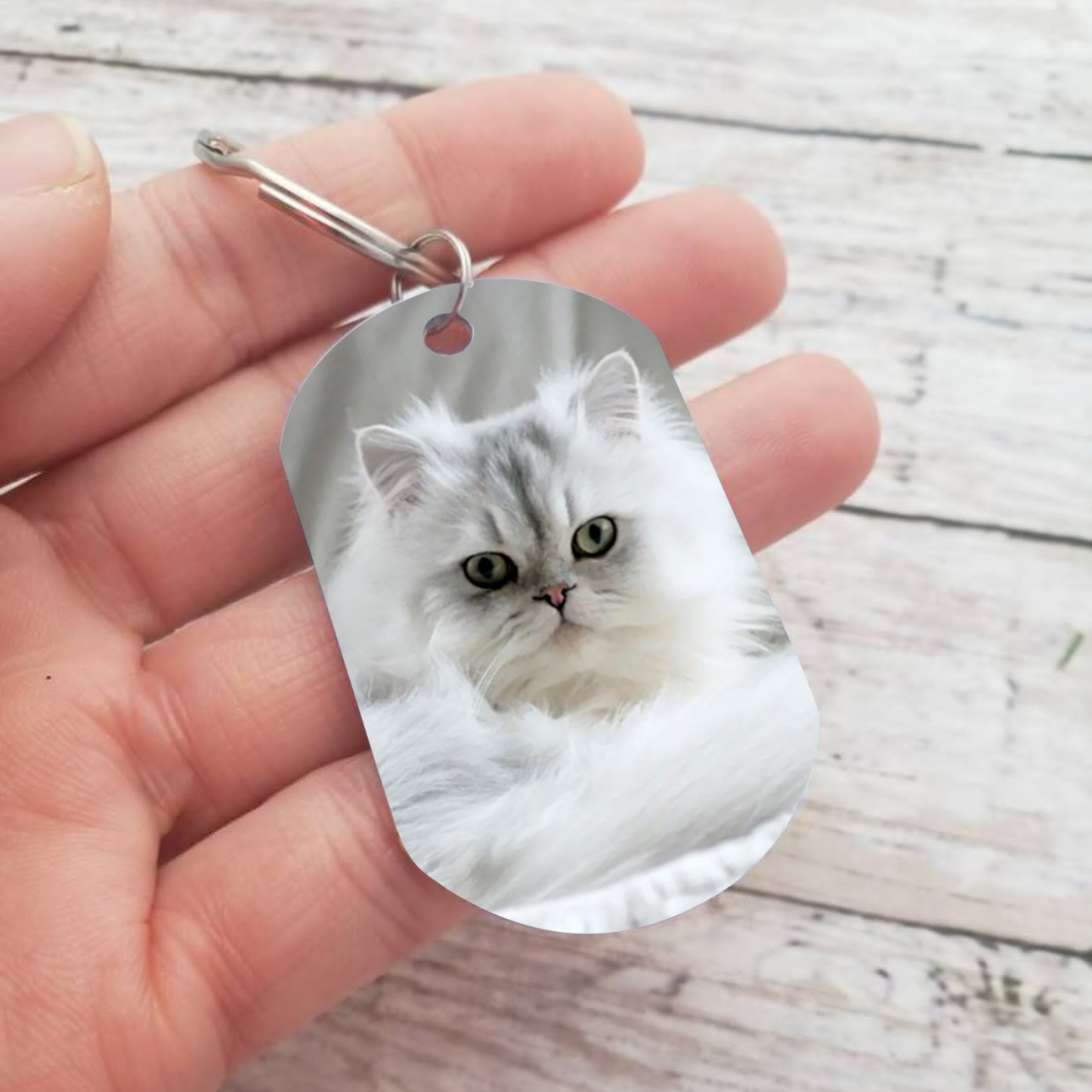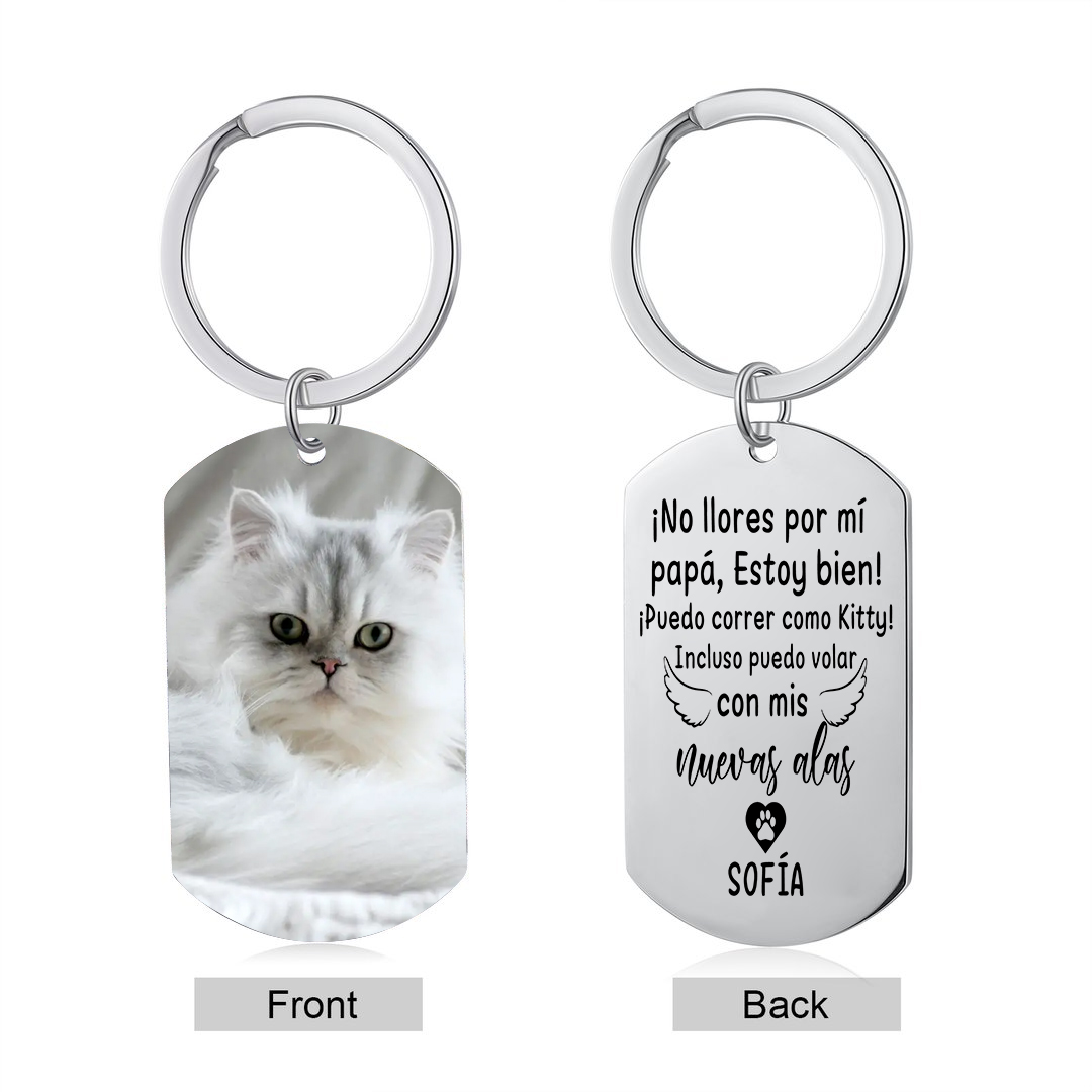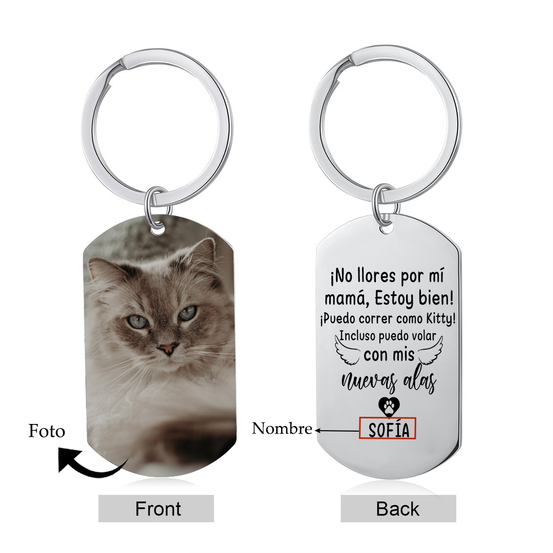 Llavero conmemorativo a gato personalizado con foto y nombre
