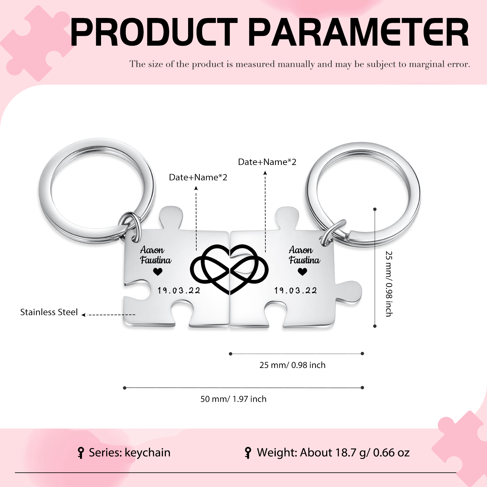 Llavero para pareja de rompecabezas 2 nombres personalizados con fecha