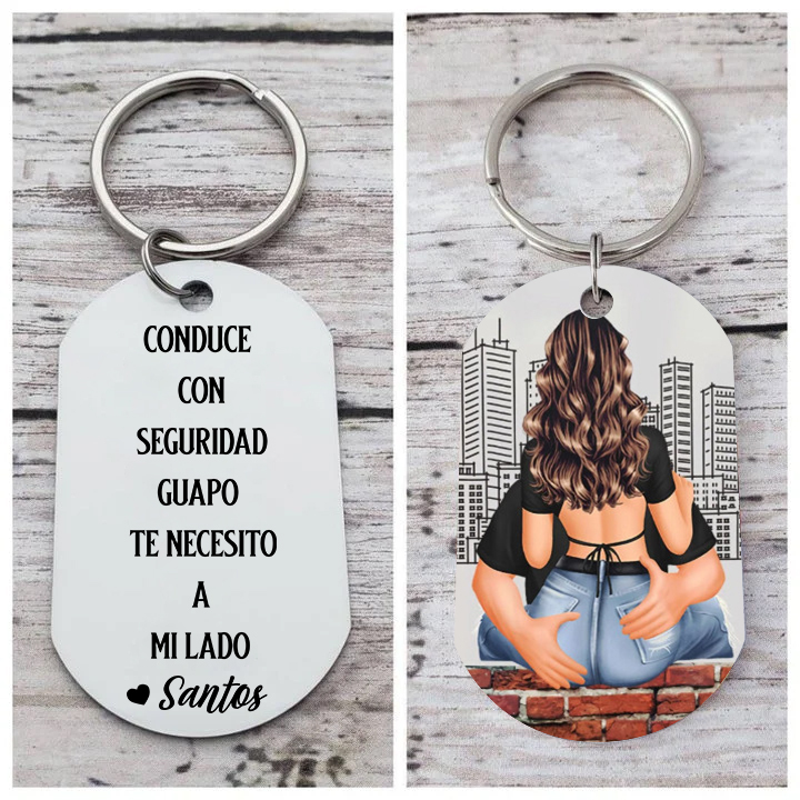 Llavero personalizado con nombre para pareja Conducir con Cuidado
