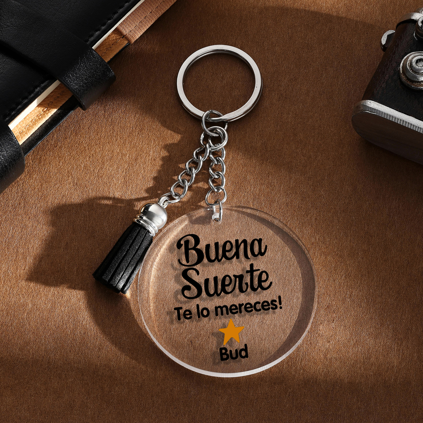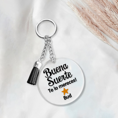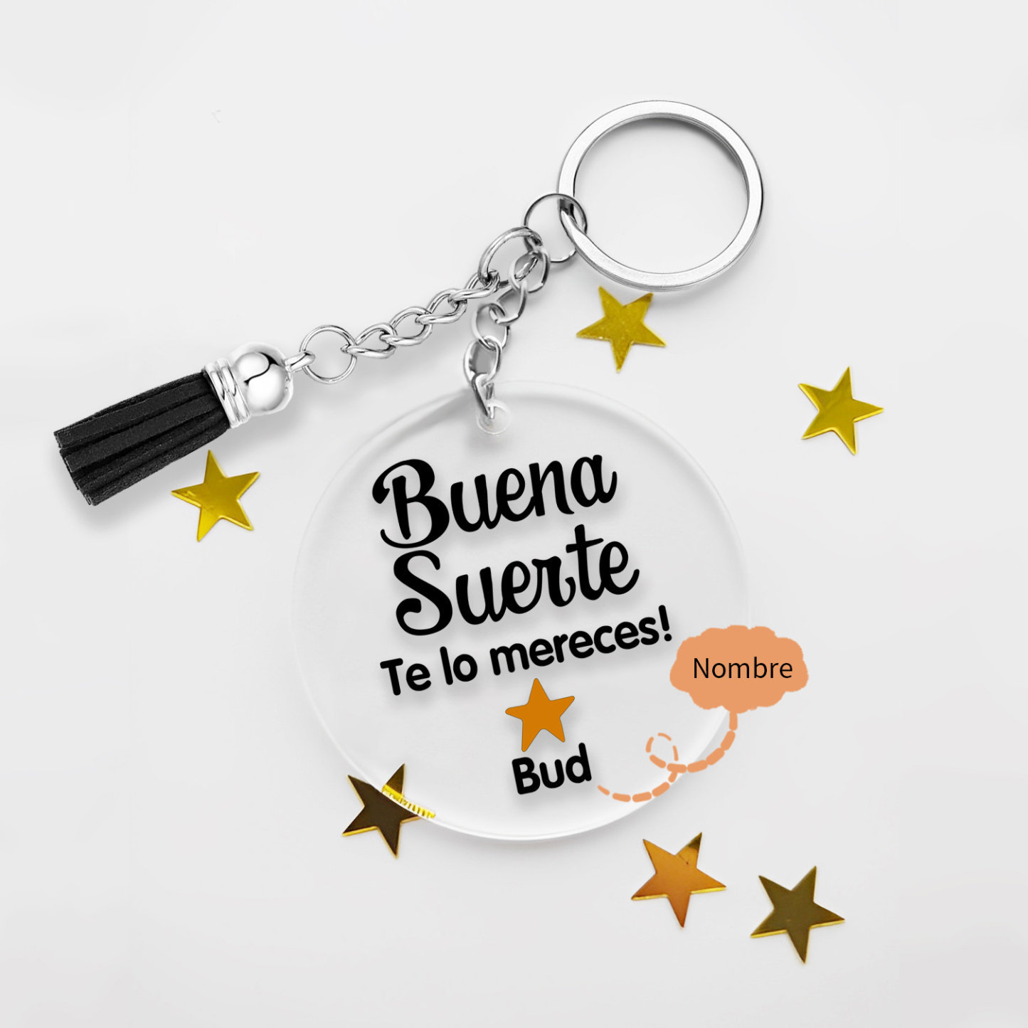Llavero redondo de acrílico amuleto de buena suerte personalizado con 1 nombre