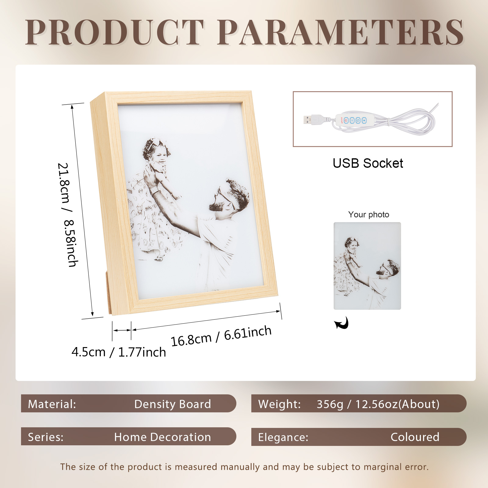 Marco de foto en blanco y negro de madera con lámpara de tres colores