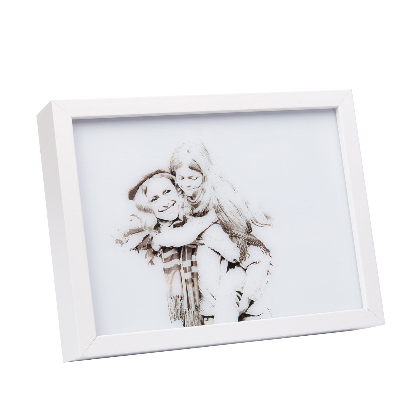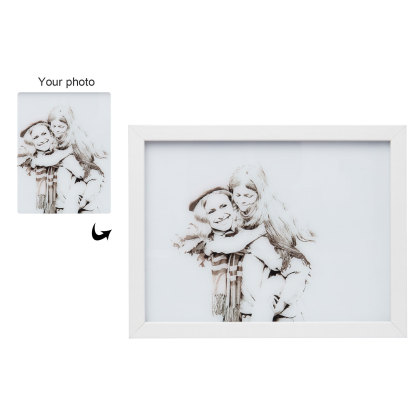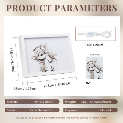 Marco de foto en blanco y negro de madera con lámpara de tres colores