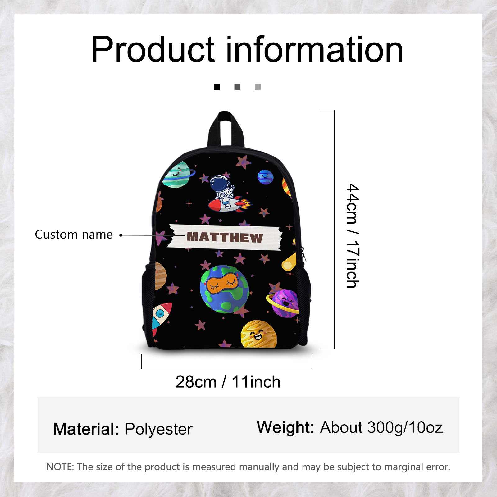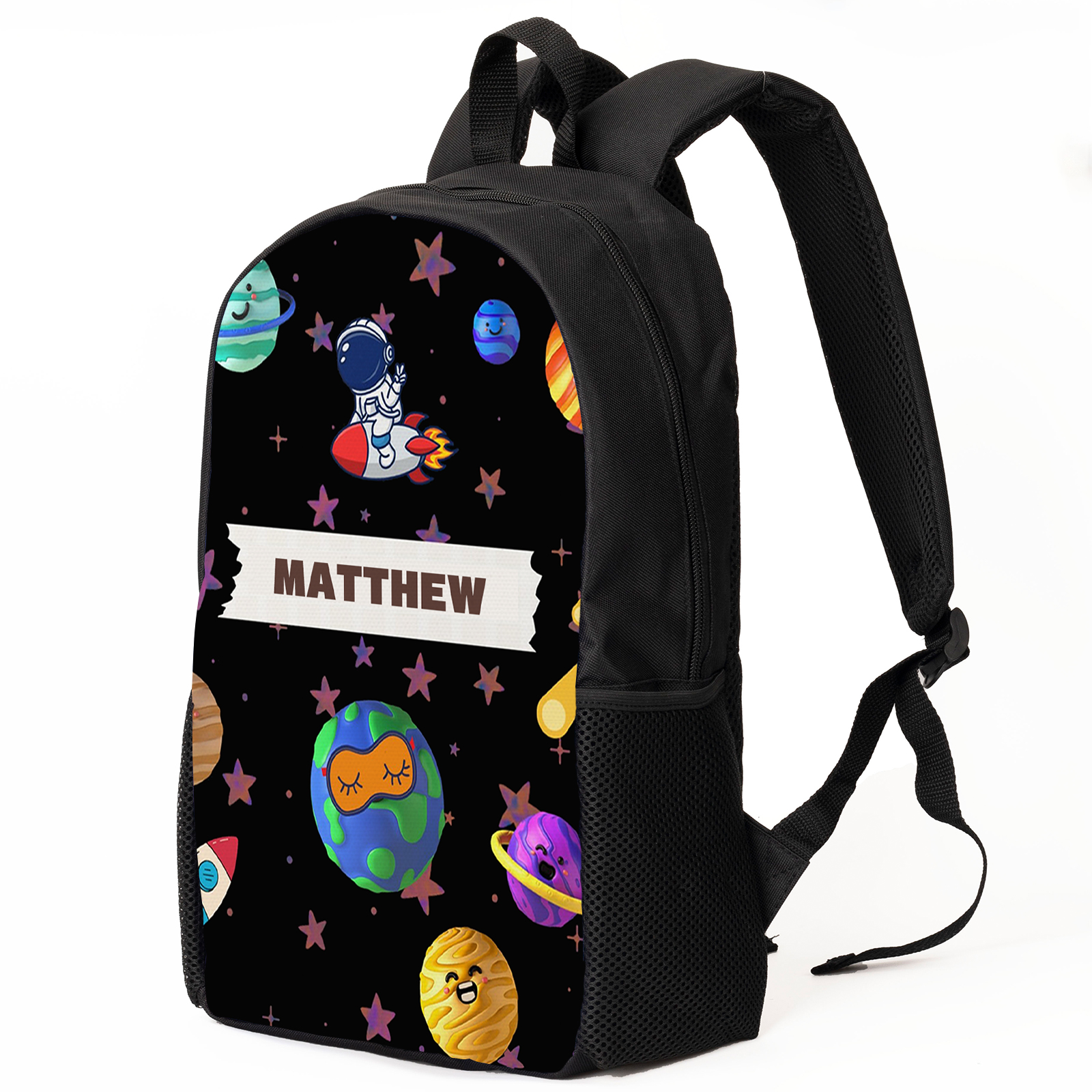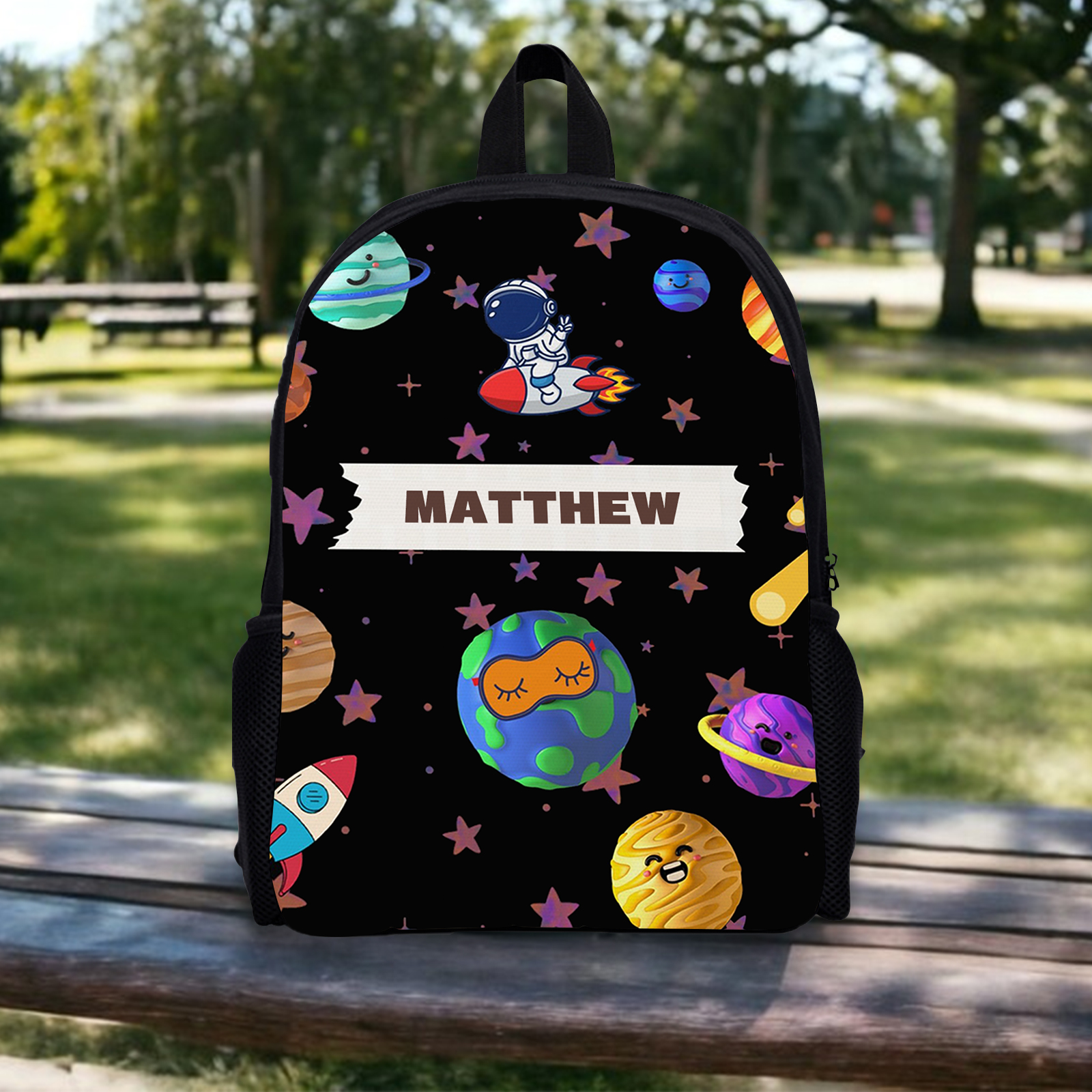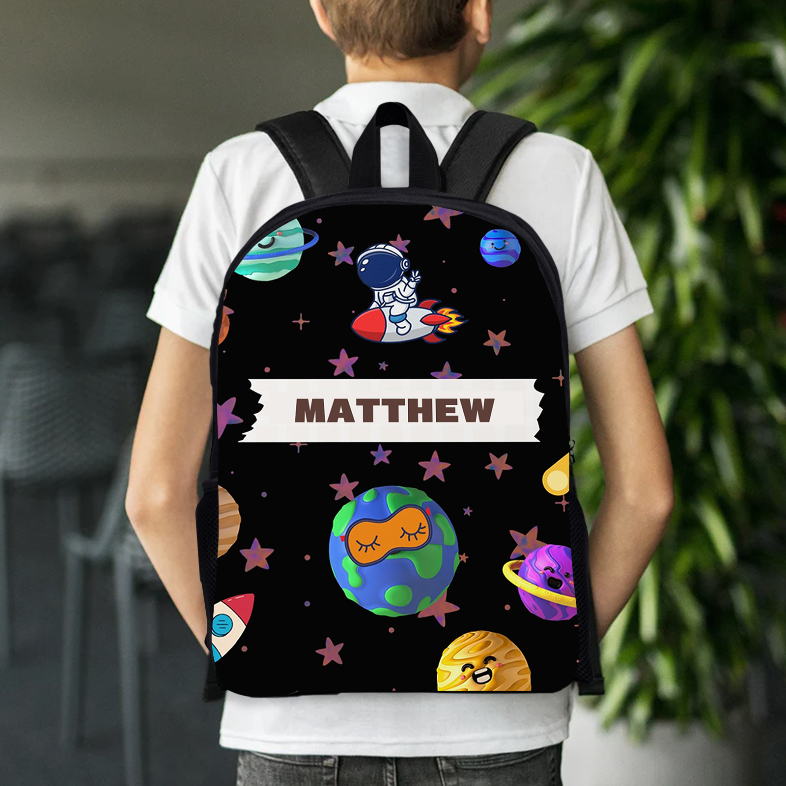 Mochilas-mochila escolar para los niños con tema de planeta con nombre personalizado