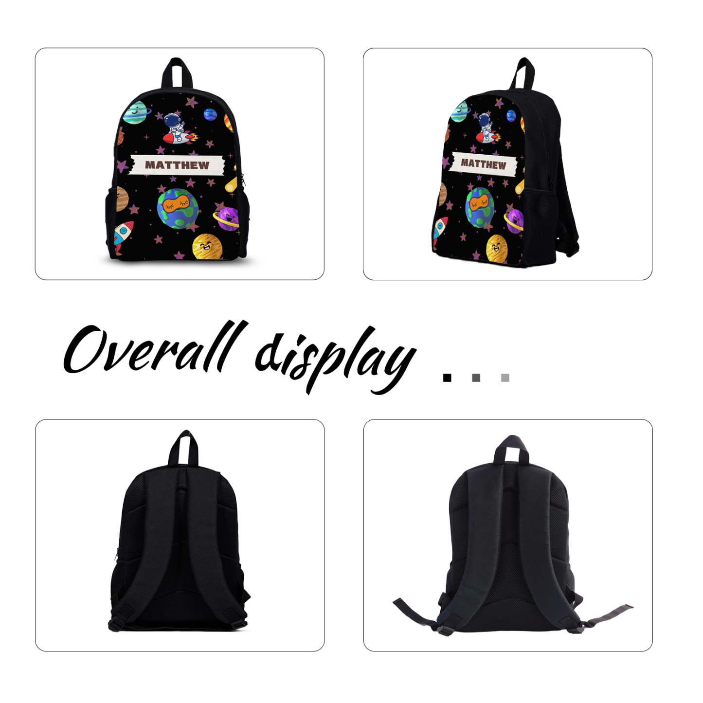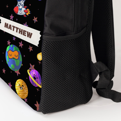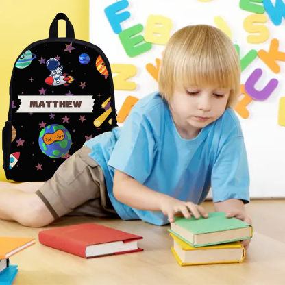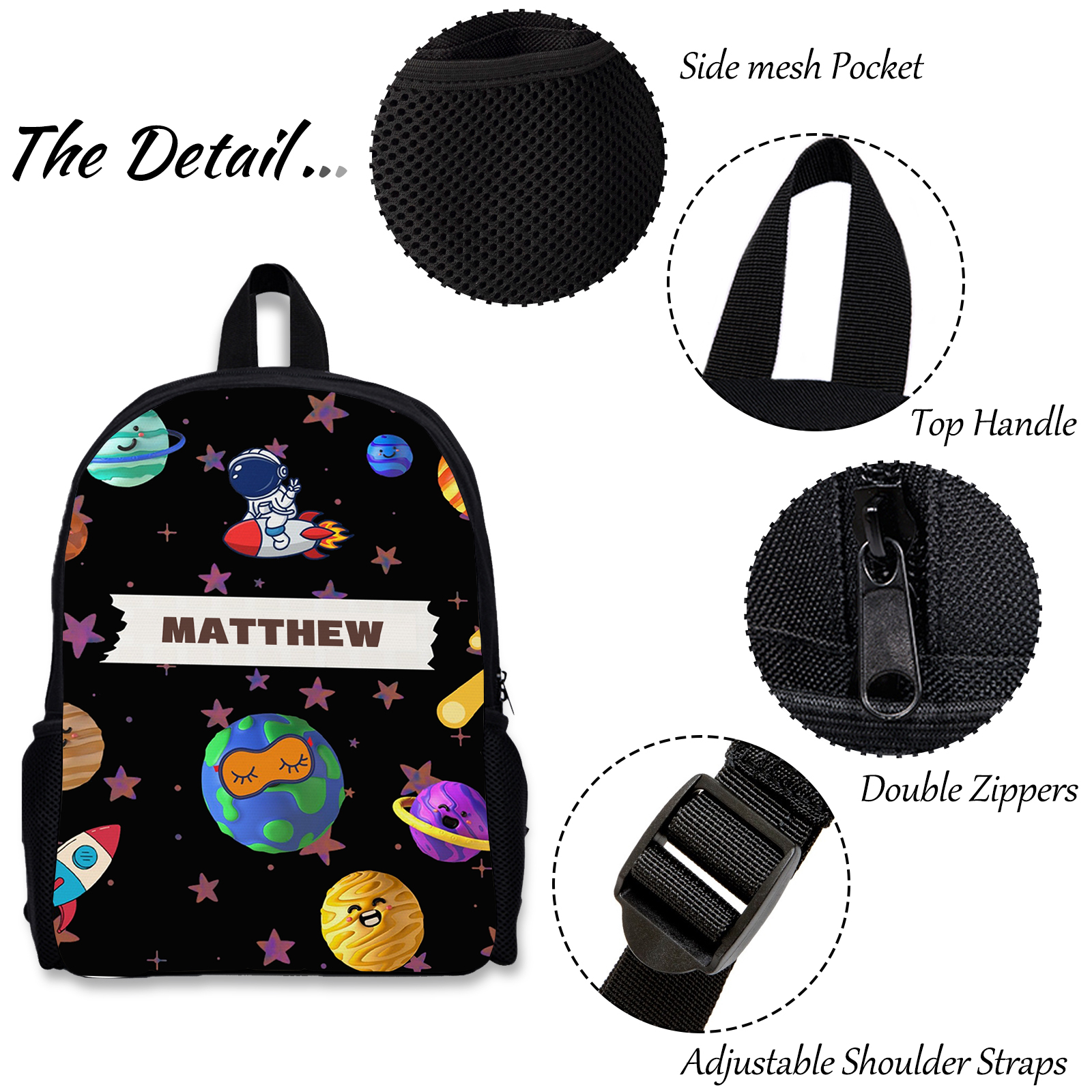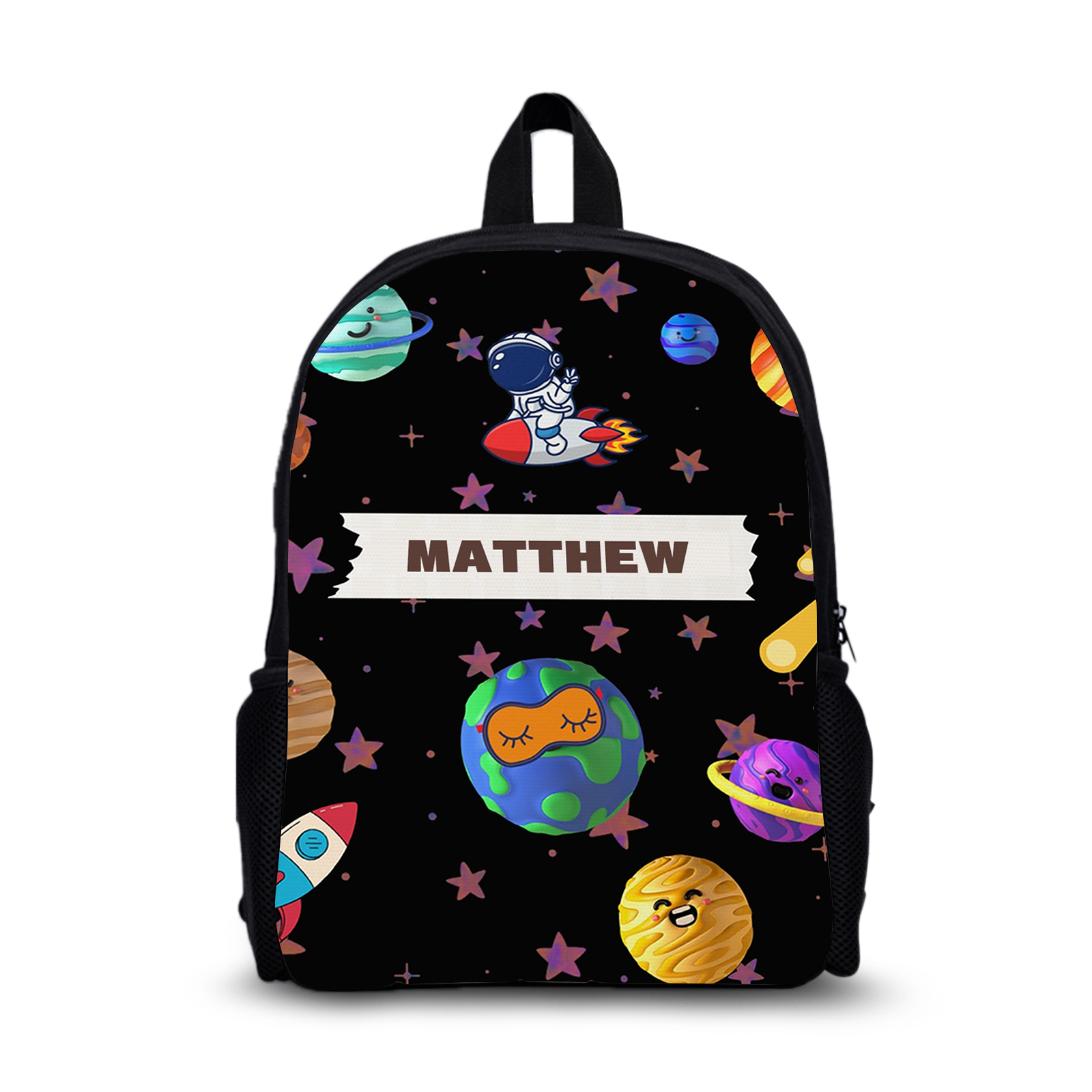 Mochilas-mochila escolar para los niños con tema de planeta con nombre personalizado