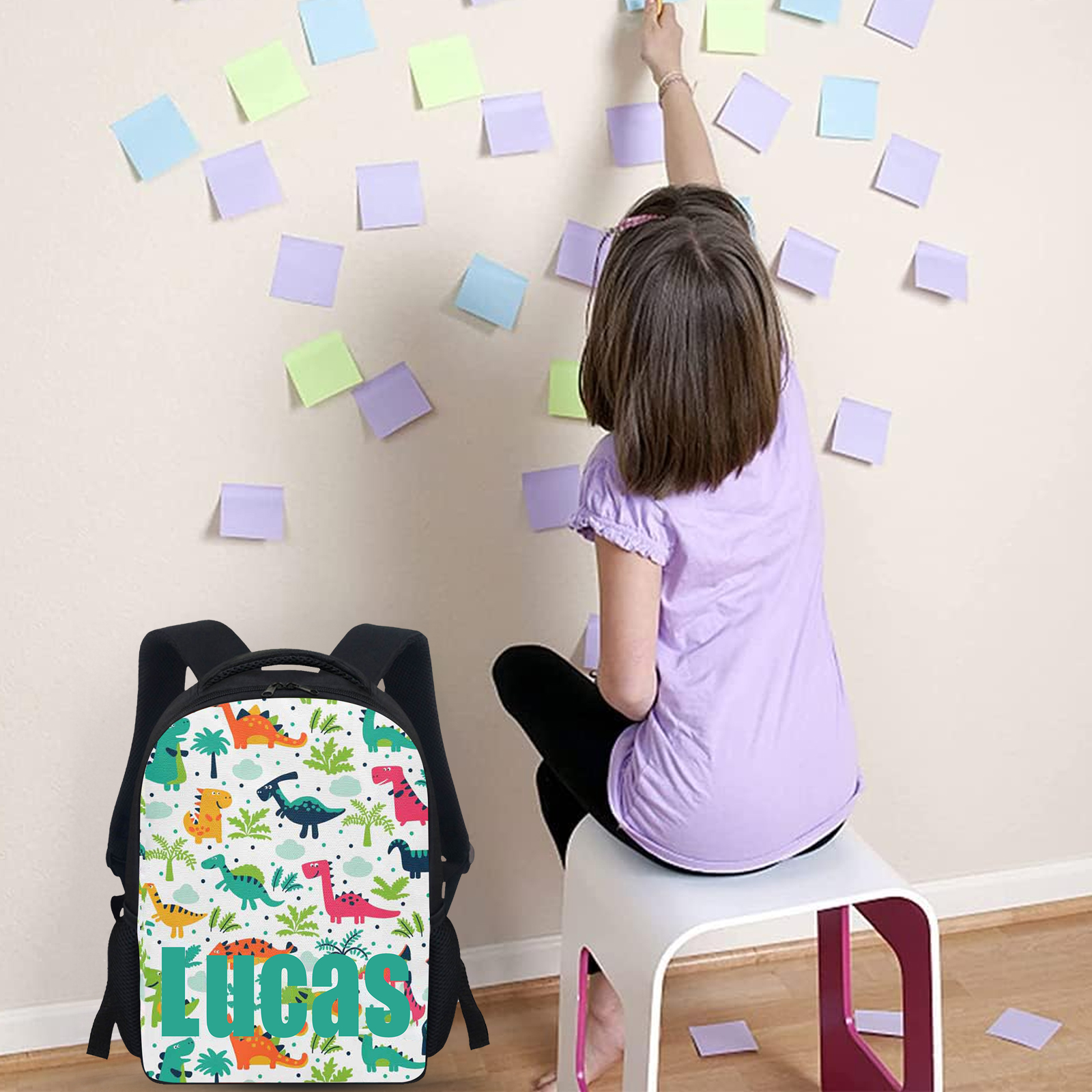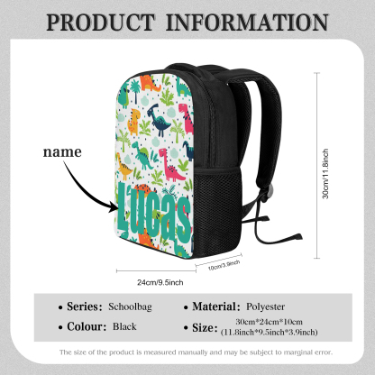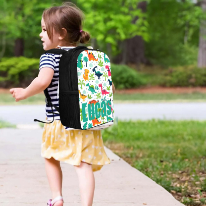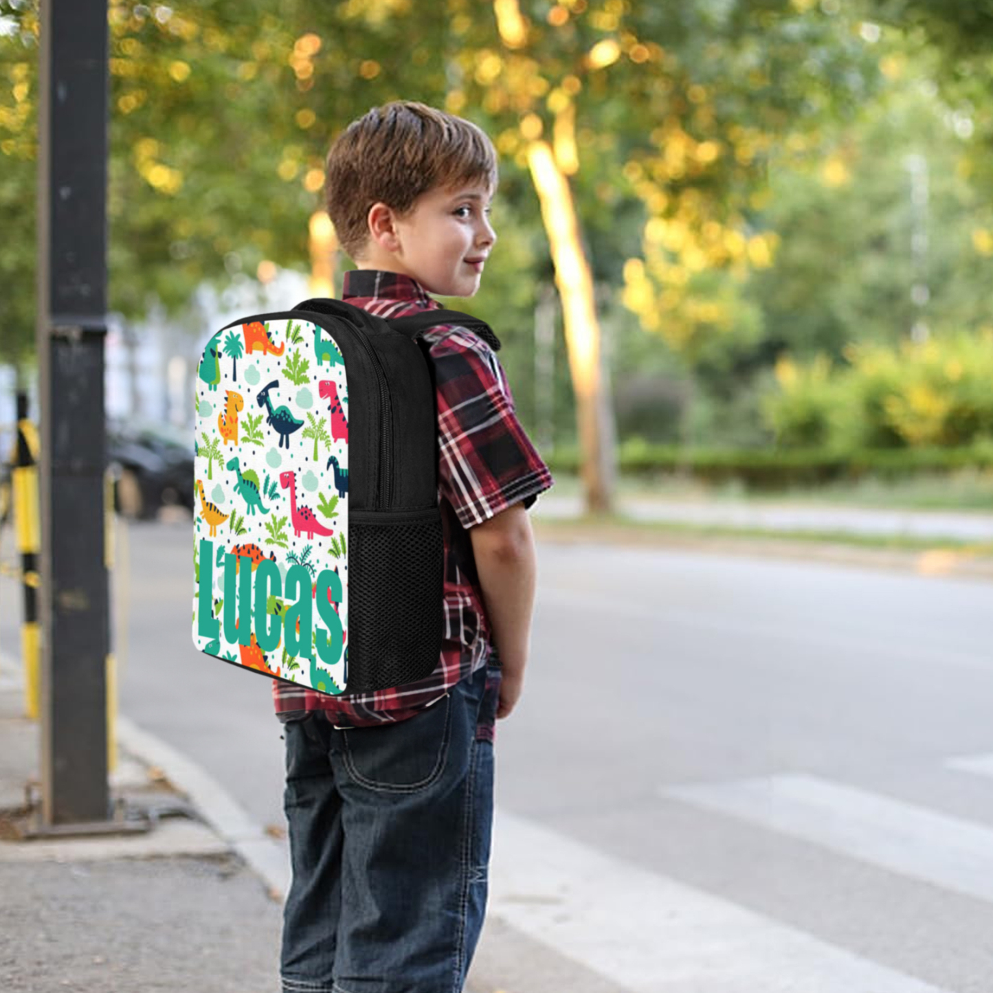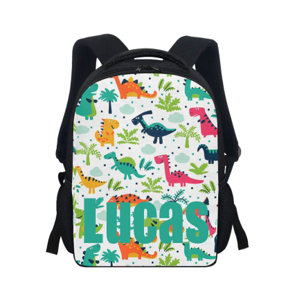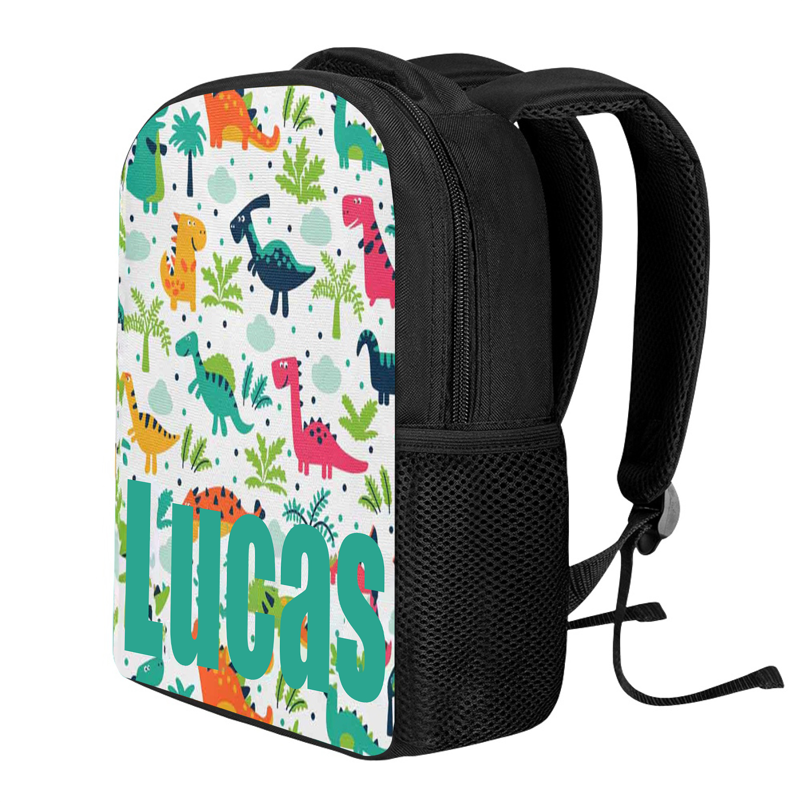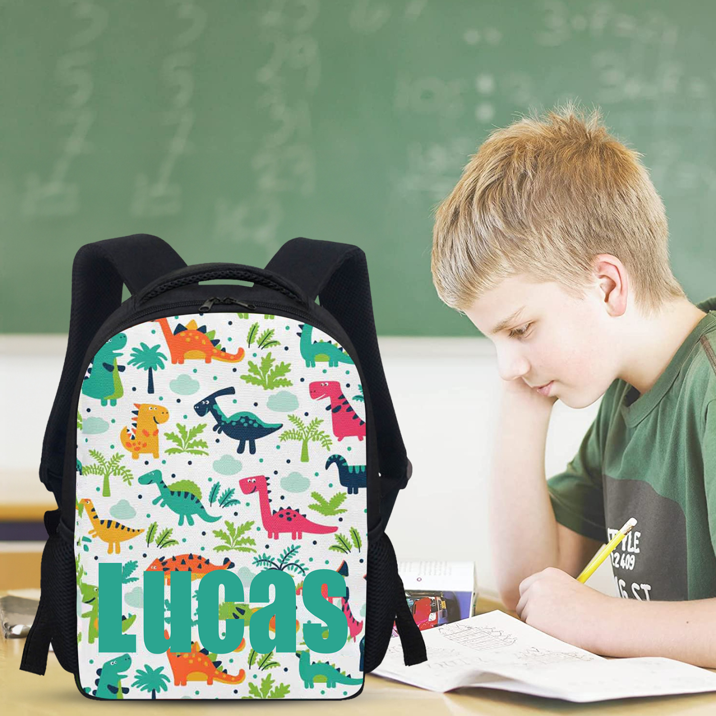 Mochilas-mochila escolar para los niños con un dibujo dinosaurio con nombre personalizado