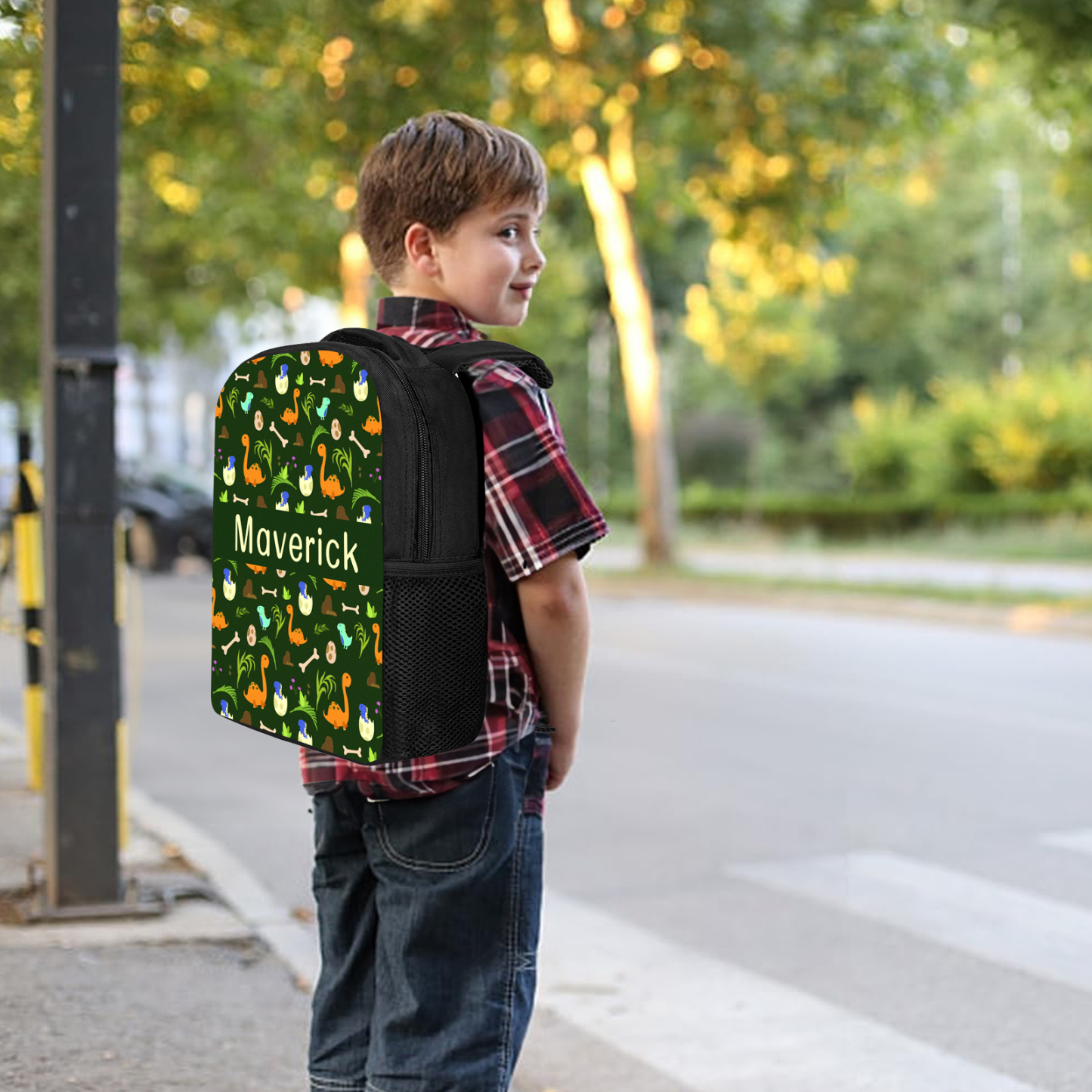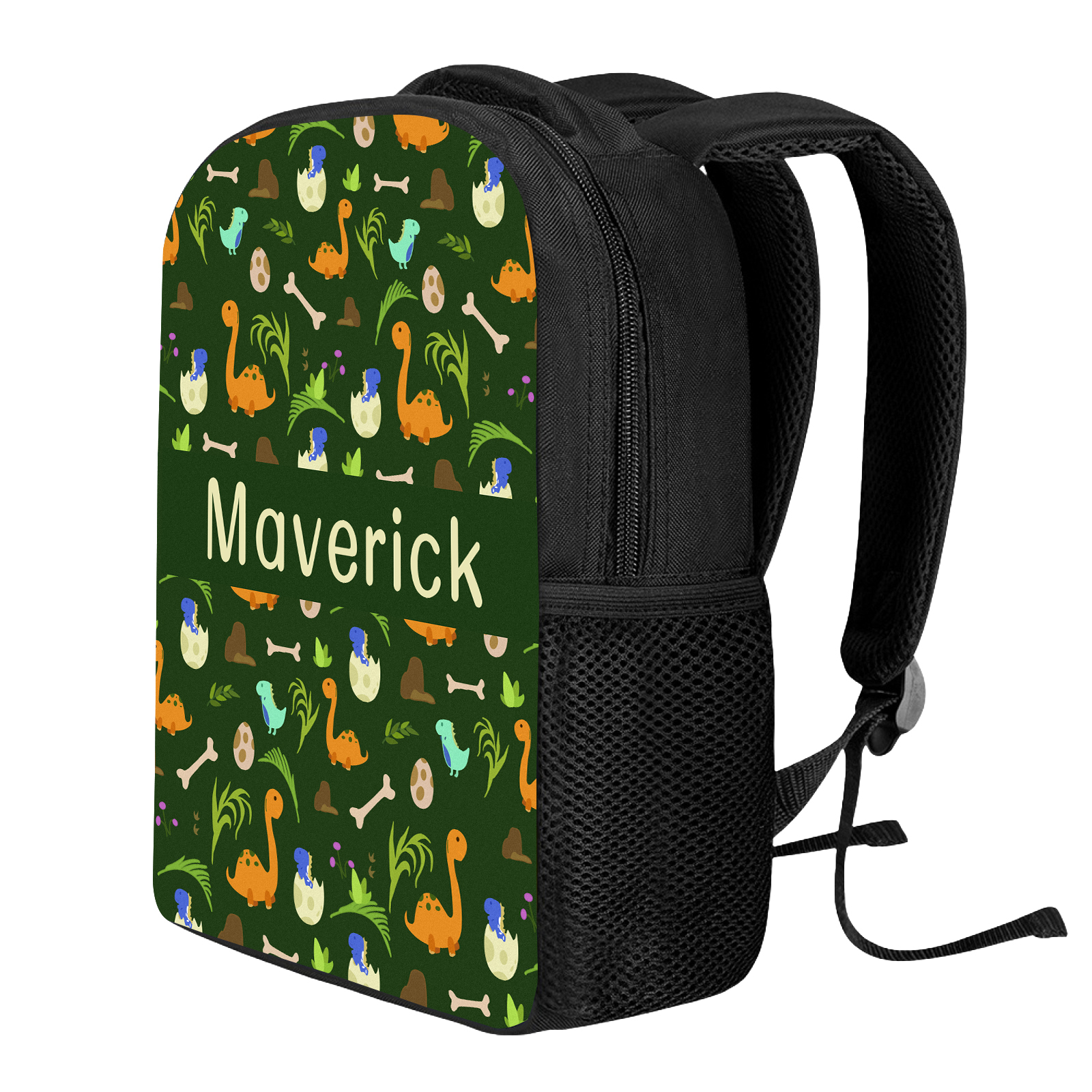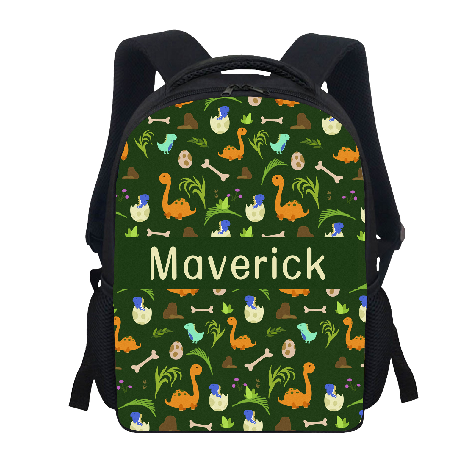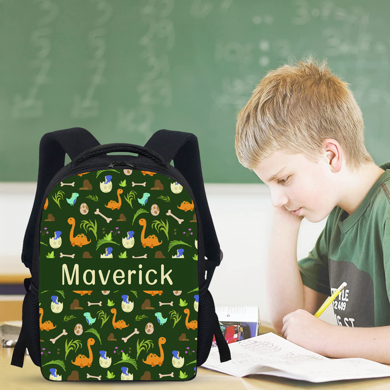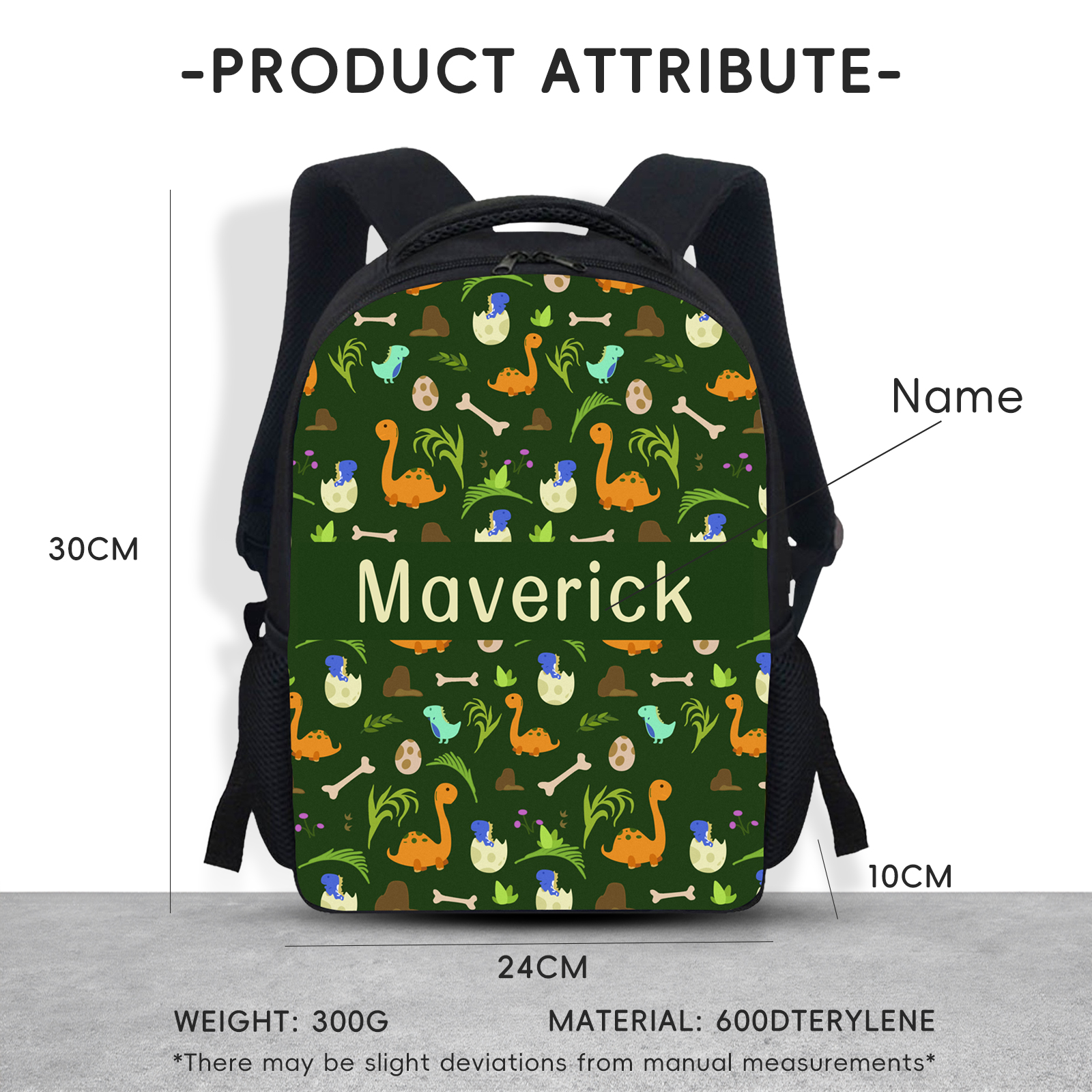Mochilas-mochila escolar para los niños con un dibujo dinosaurios con nombre personalizado