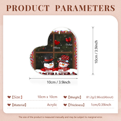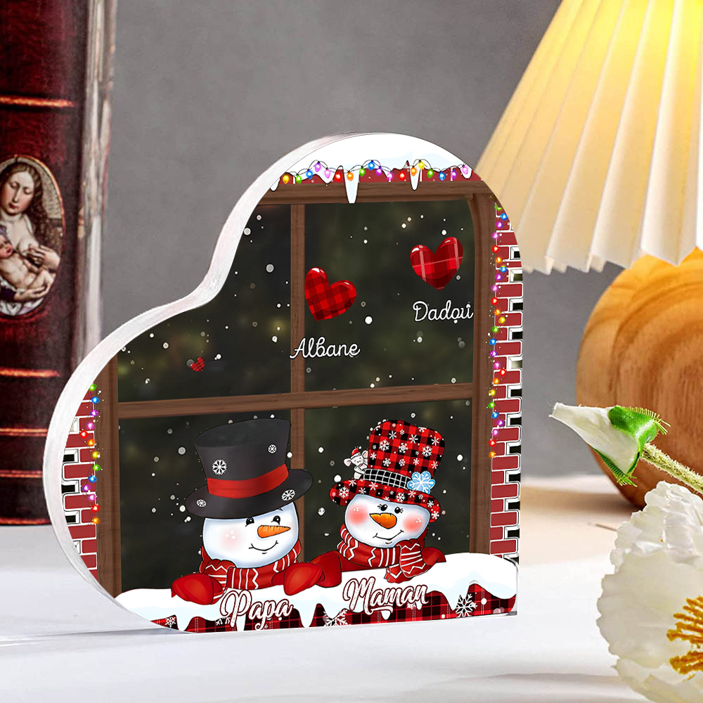 Navidad - Placa de acrílico en forma de corazón muñeco de nieve con 4 nombres personalizados