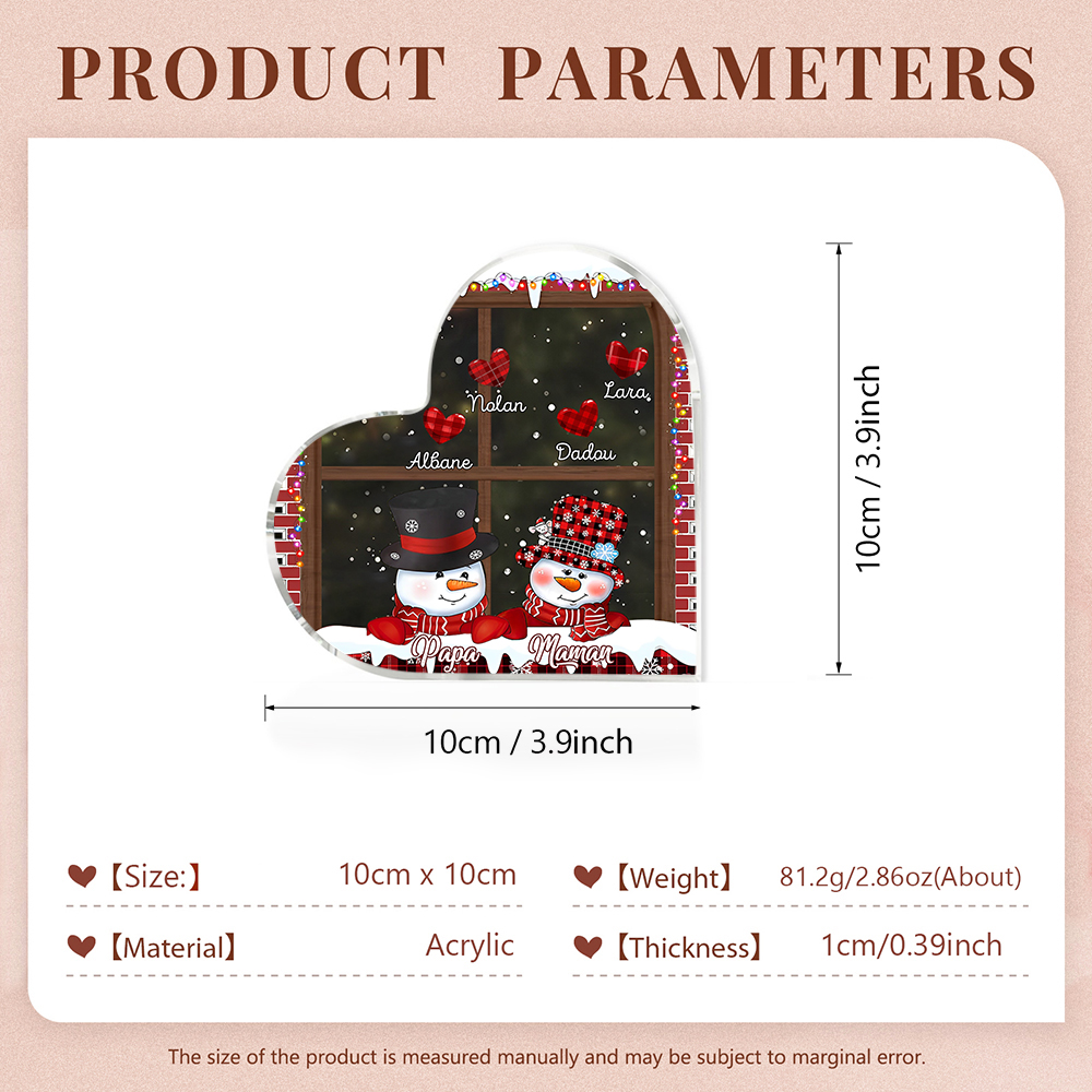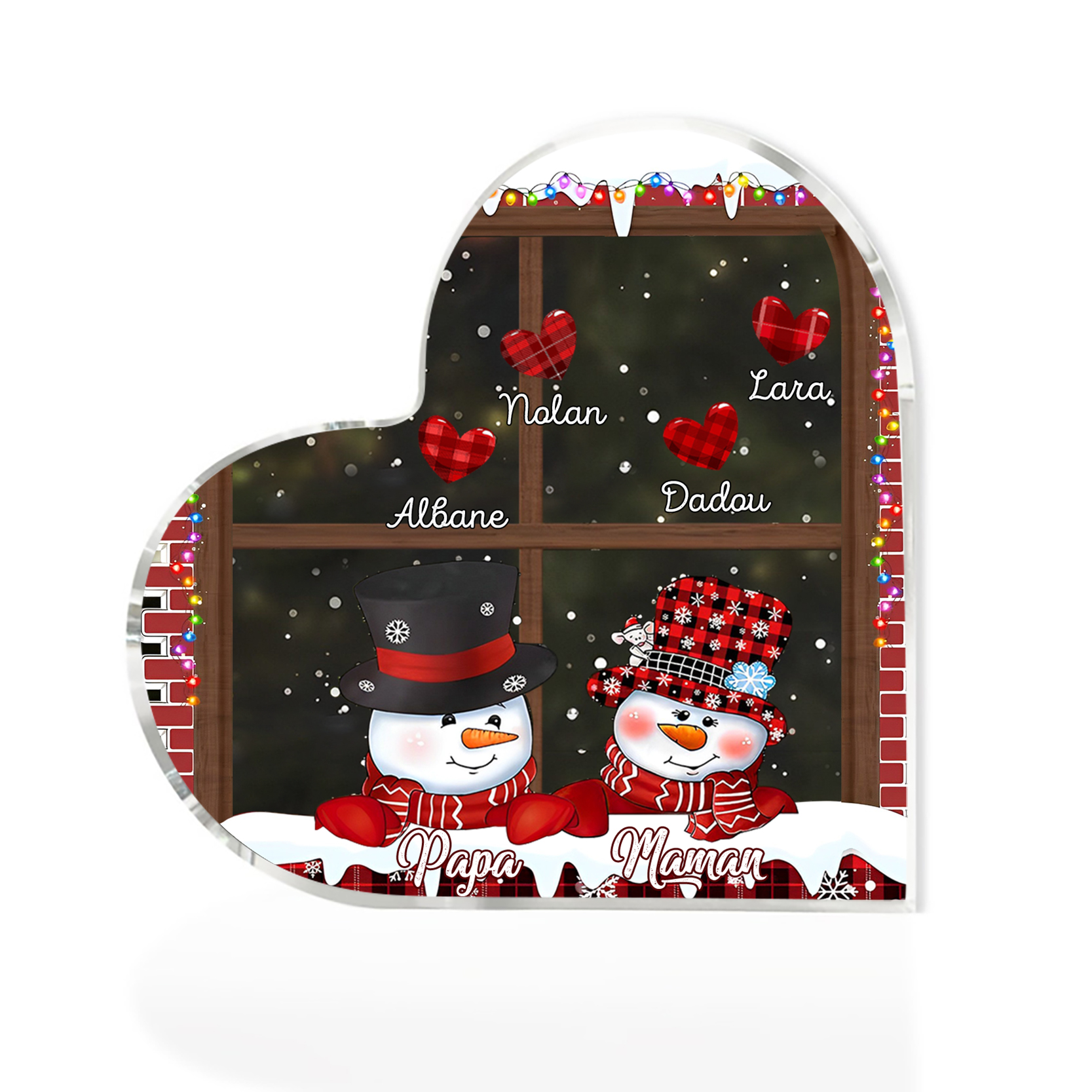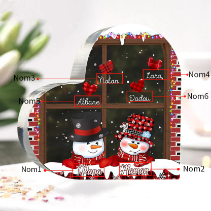 Navidad - Placa de acrílico en forma de corazón muñeco de nieve con 6 nombres personalizados