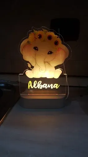 Lámpara Ilusión 3D Luz de Noche LED de Elefante con Guirnalda de Flores con Nombre Personalizado