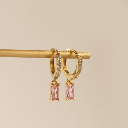 Pendientes elegantes con colgantes de cristal rosado aretes
