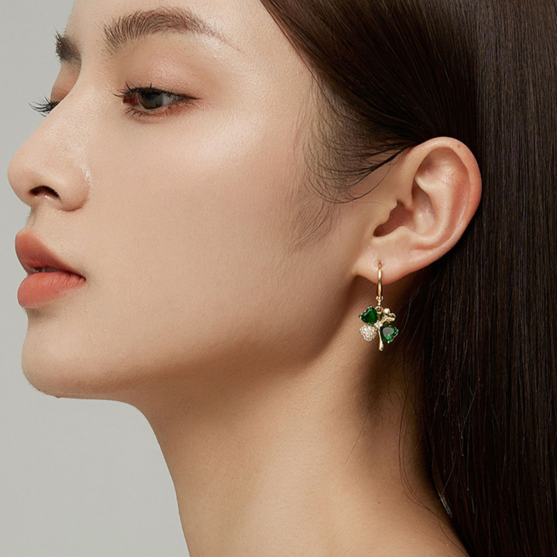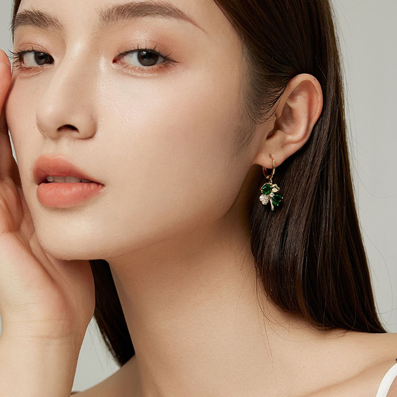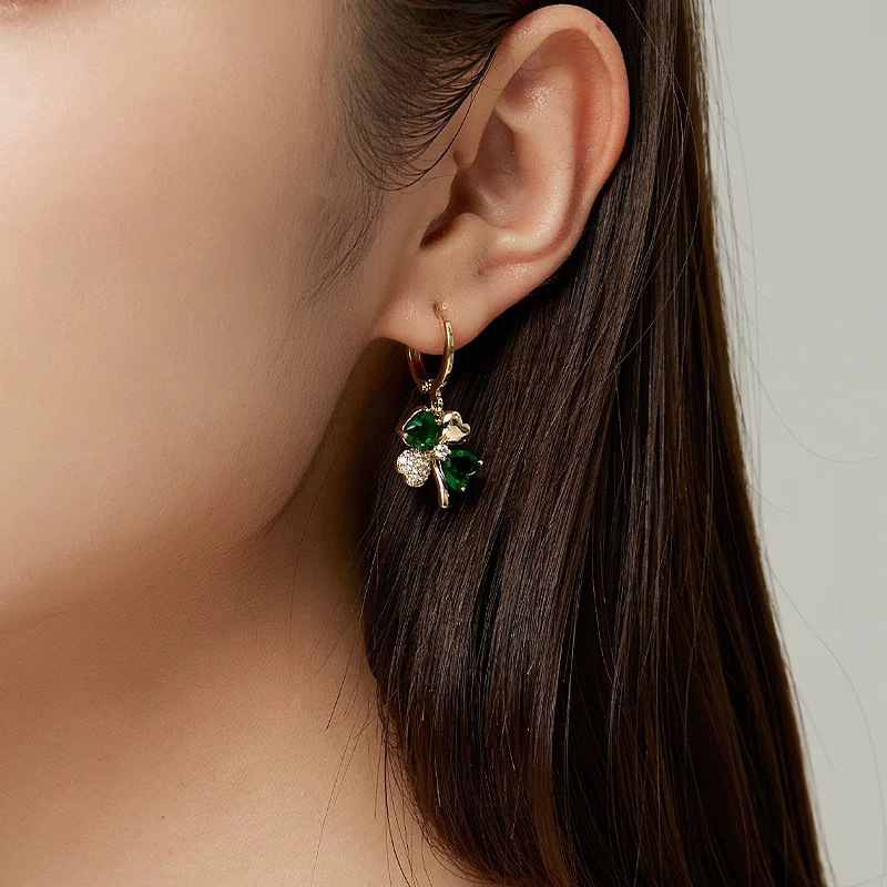 Pendientes elegantes con colgantes de trébol de cuatro hojas aretes