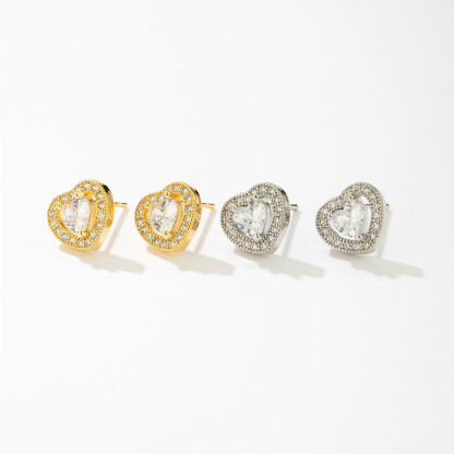 Pendientes elegantes con zirconios en forma de corazón aretes