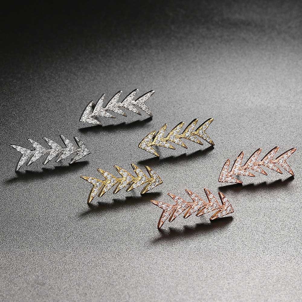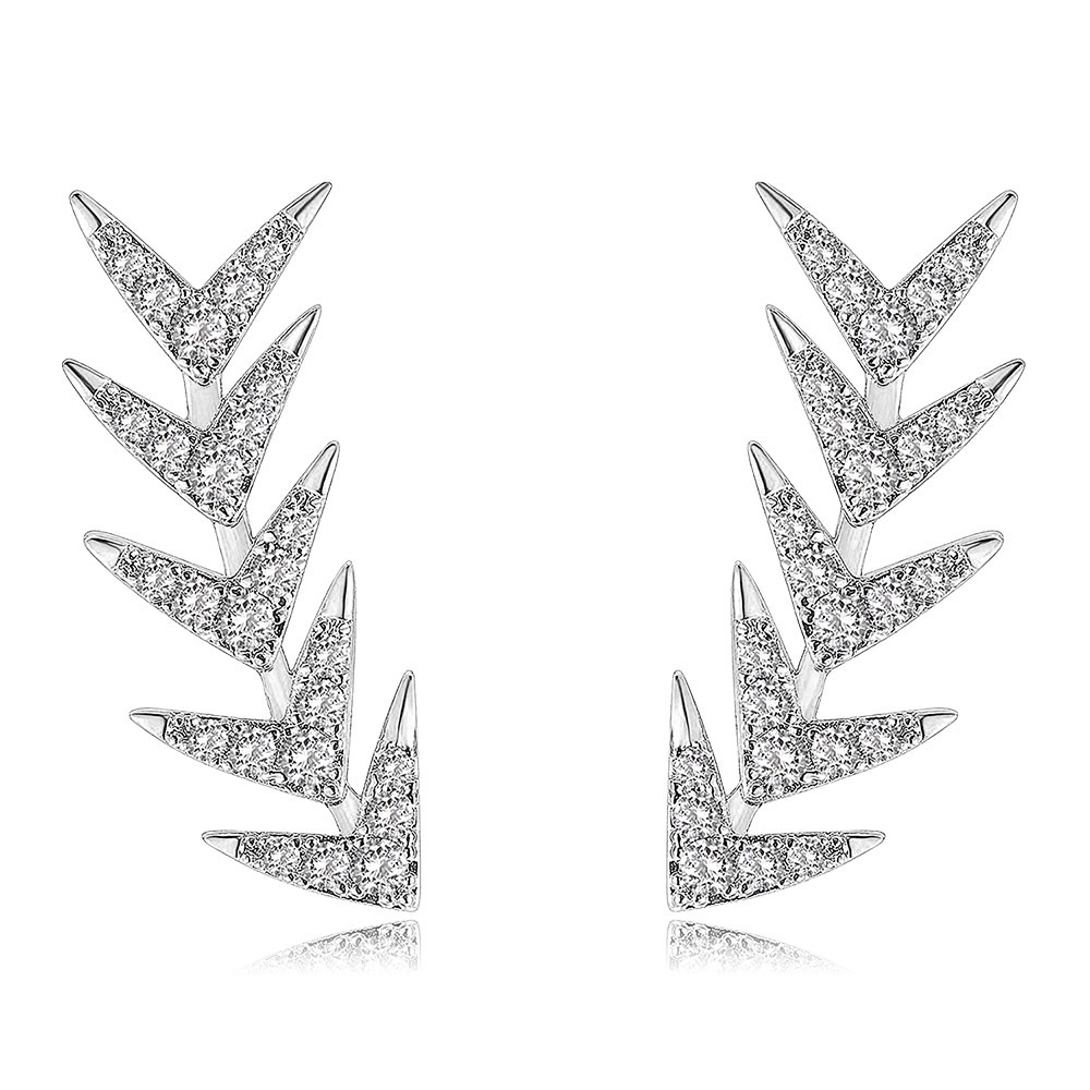 Pendientes elegantes de hojas de bambú de color plateado aretes