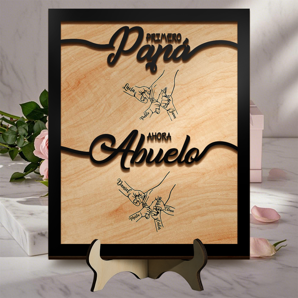 Placa 3D de madera personalizado - Primero papá, ahora abuelo