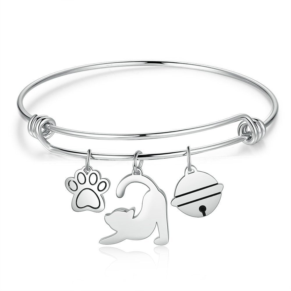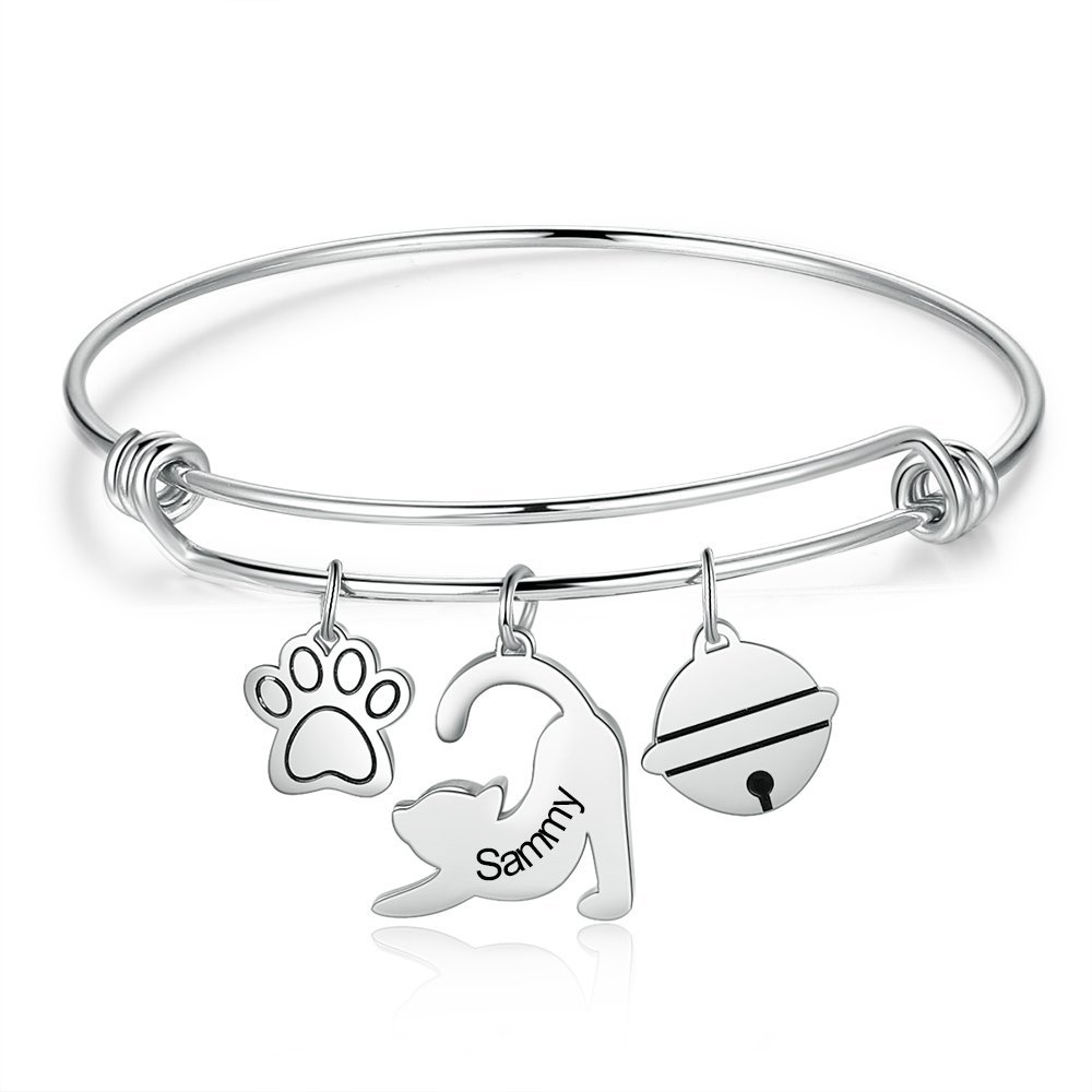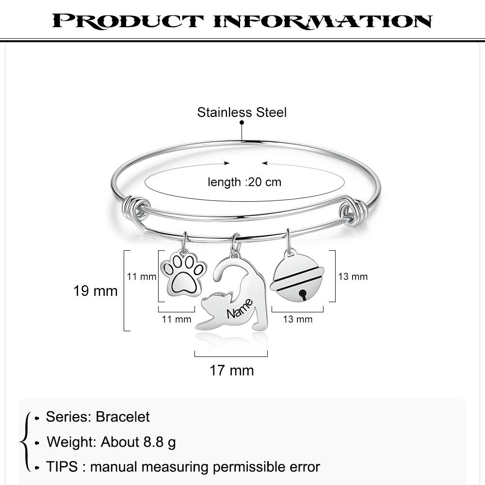 Pulsera con Colgante de Gato 1 Nombre Personalizado