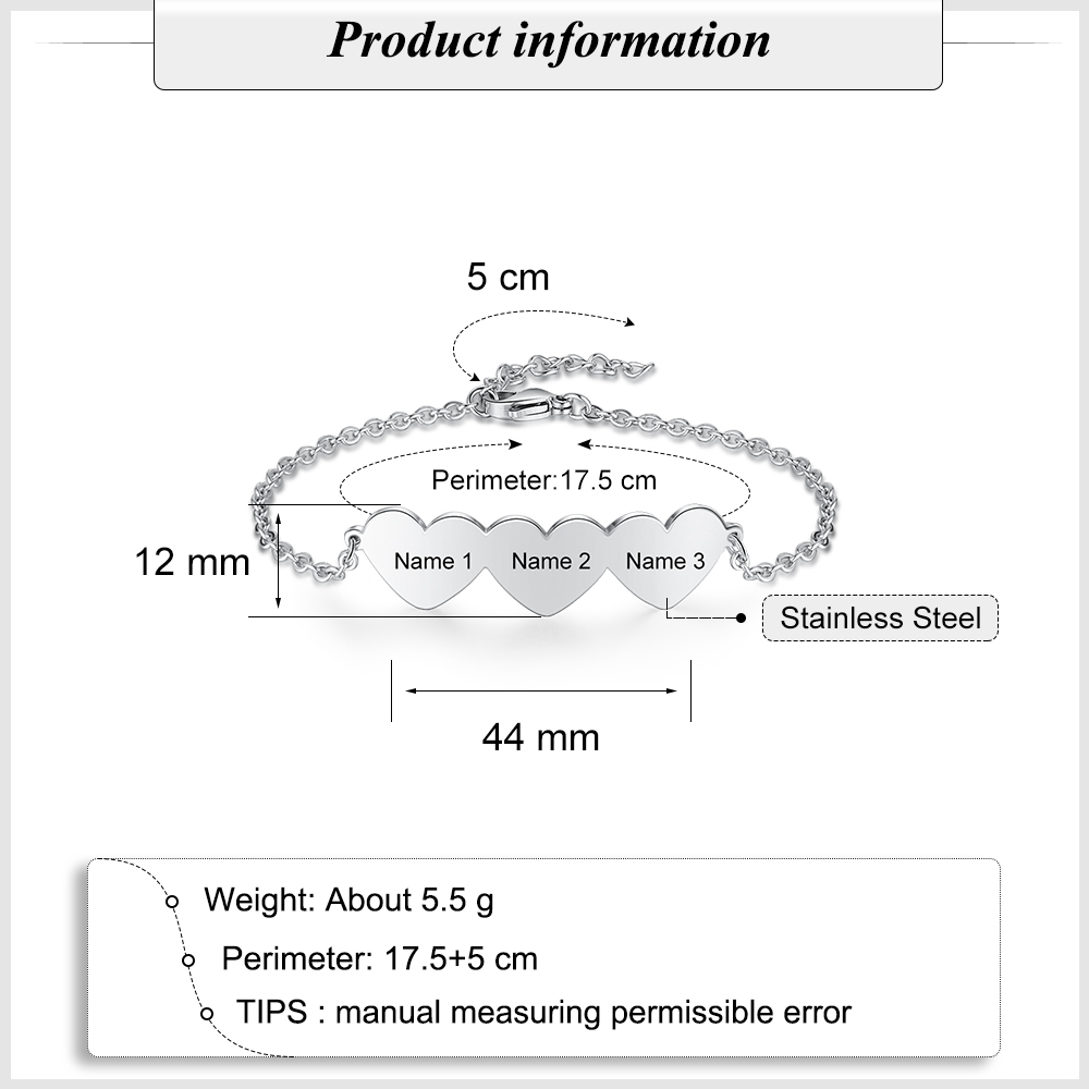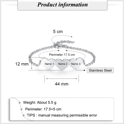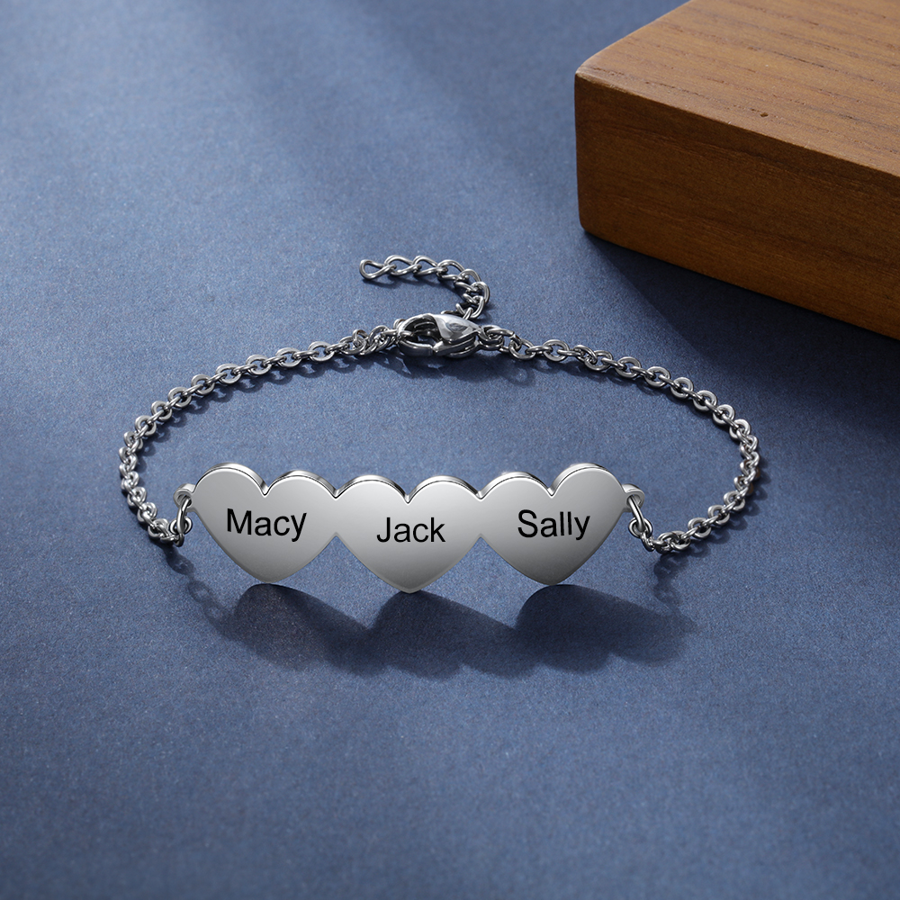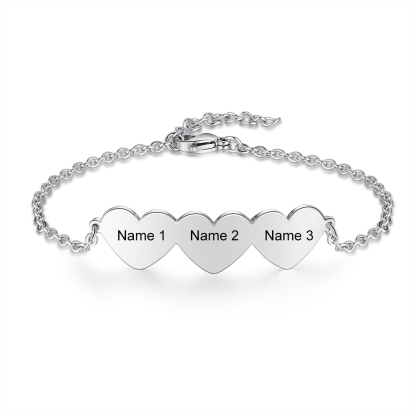 Pulsera para mujer de corazón con 3 nombres personalizados