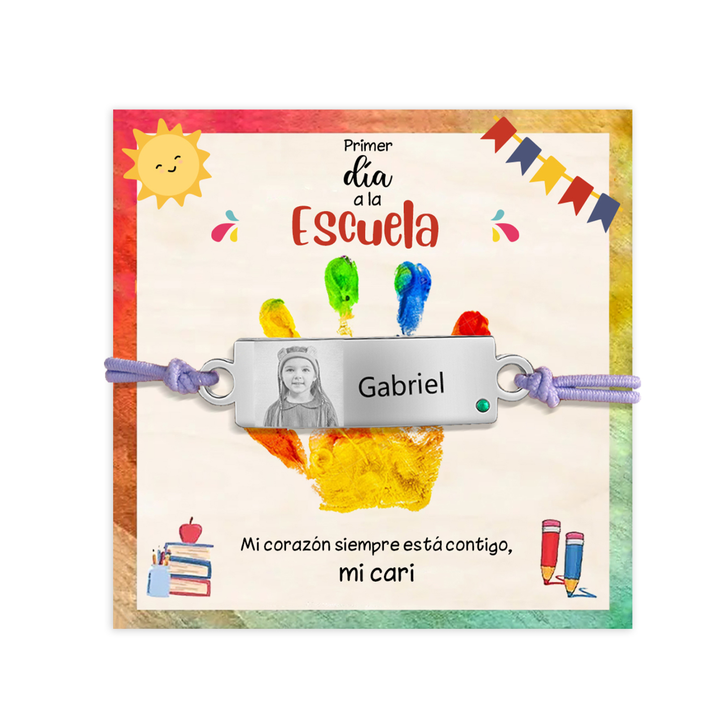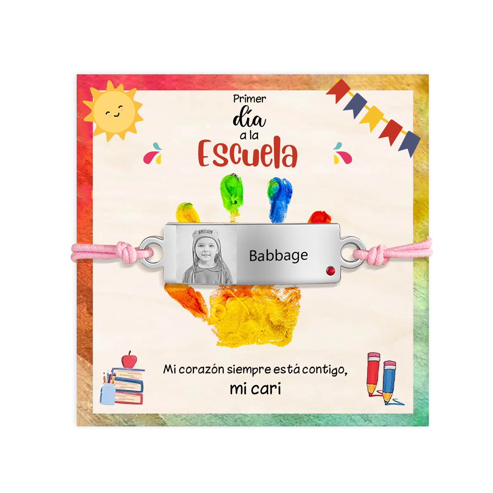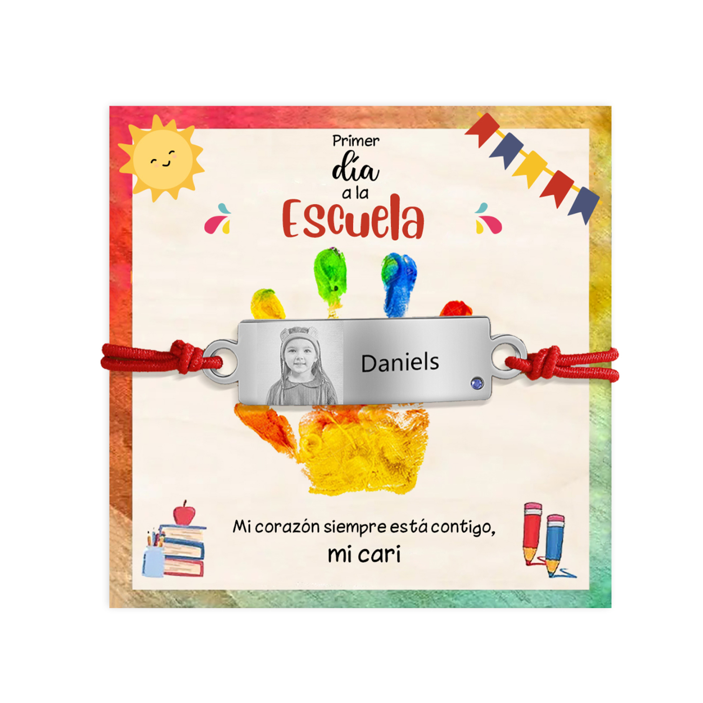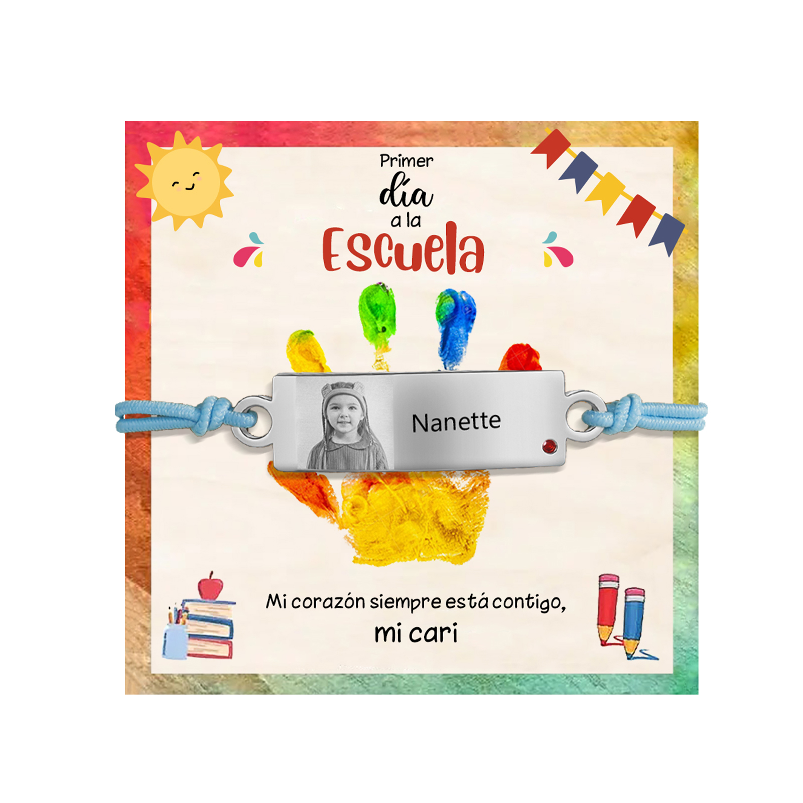 Pulsera de cuerda con 1 nombre y foto personalizados para niña, niño - Regalos de regreso a la escuela