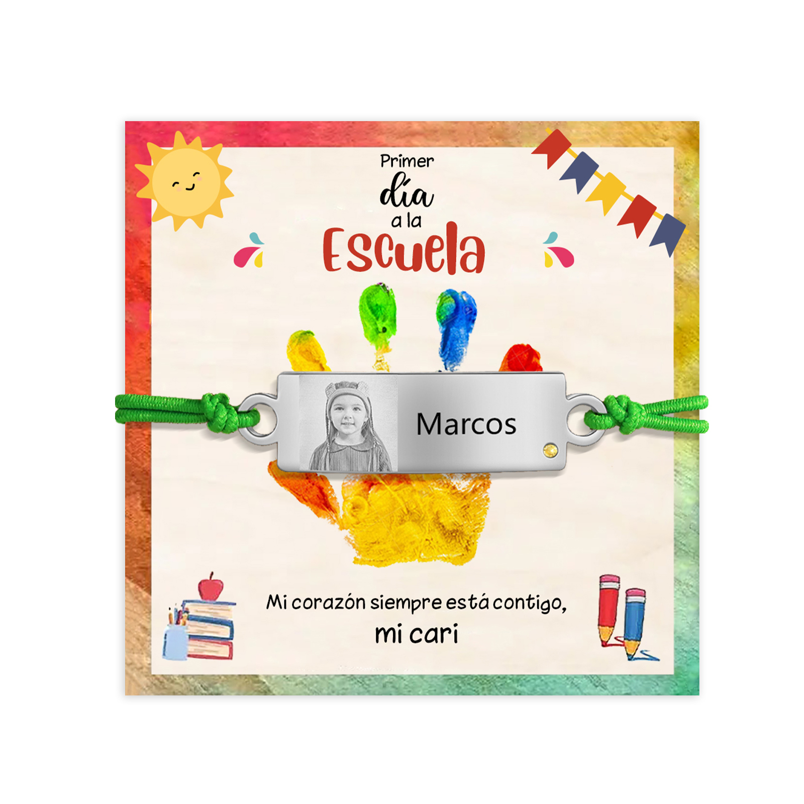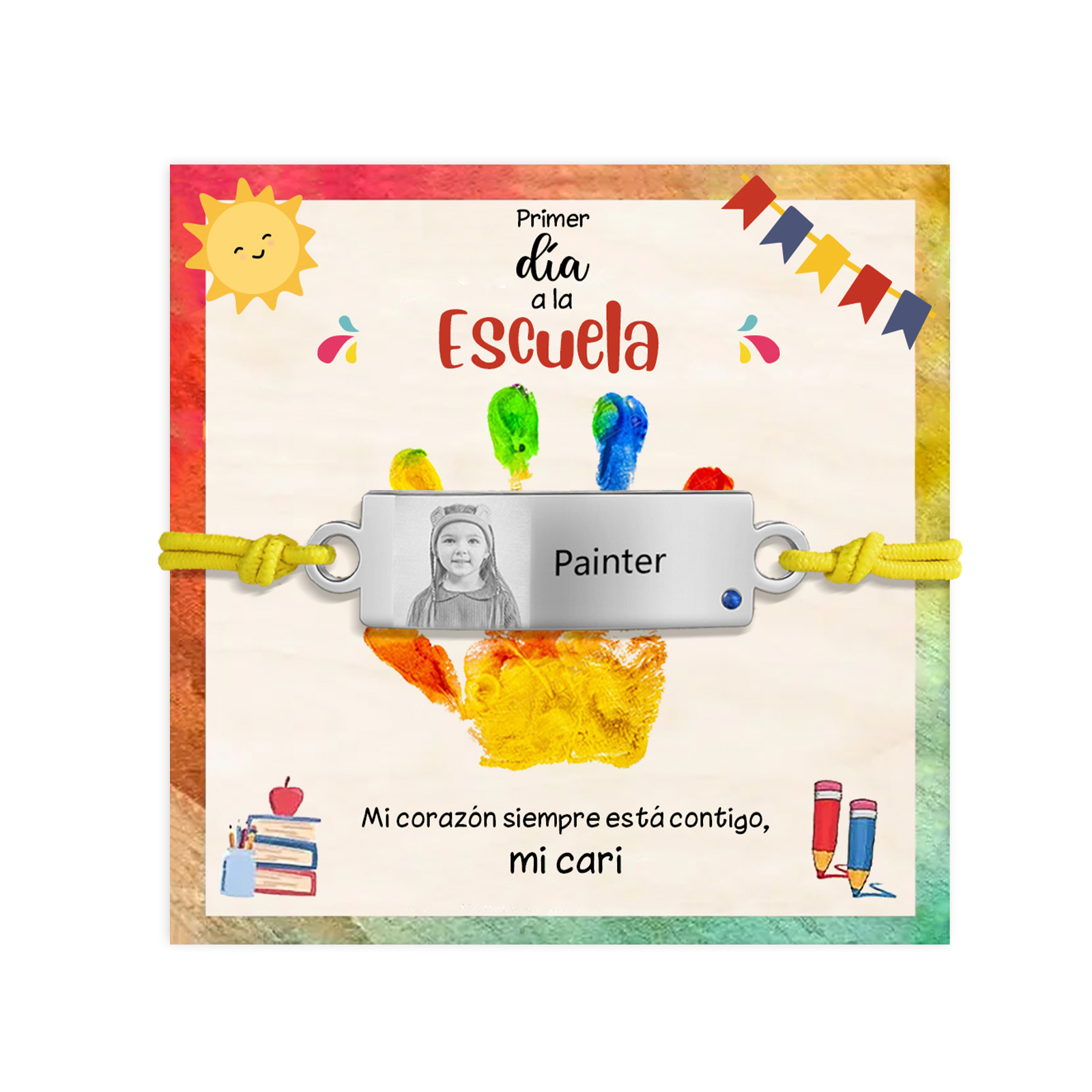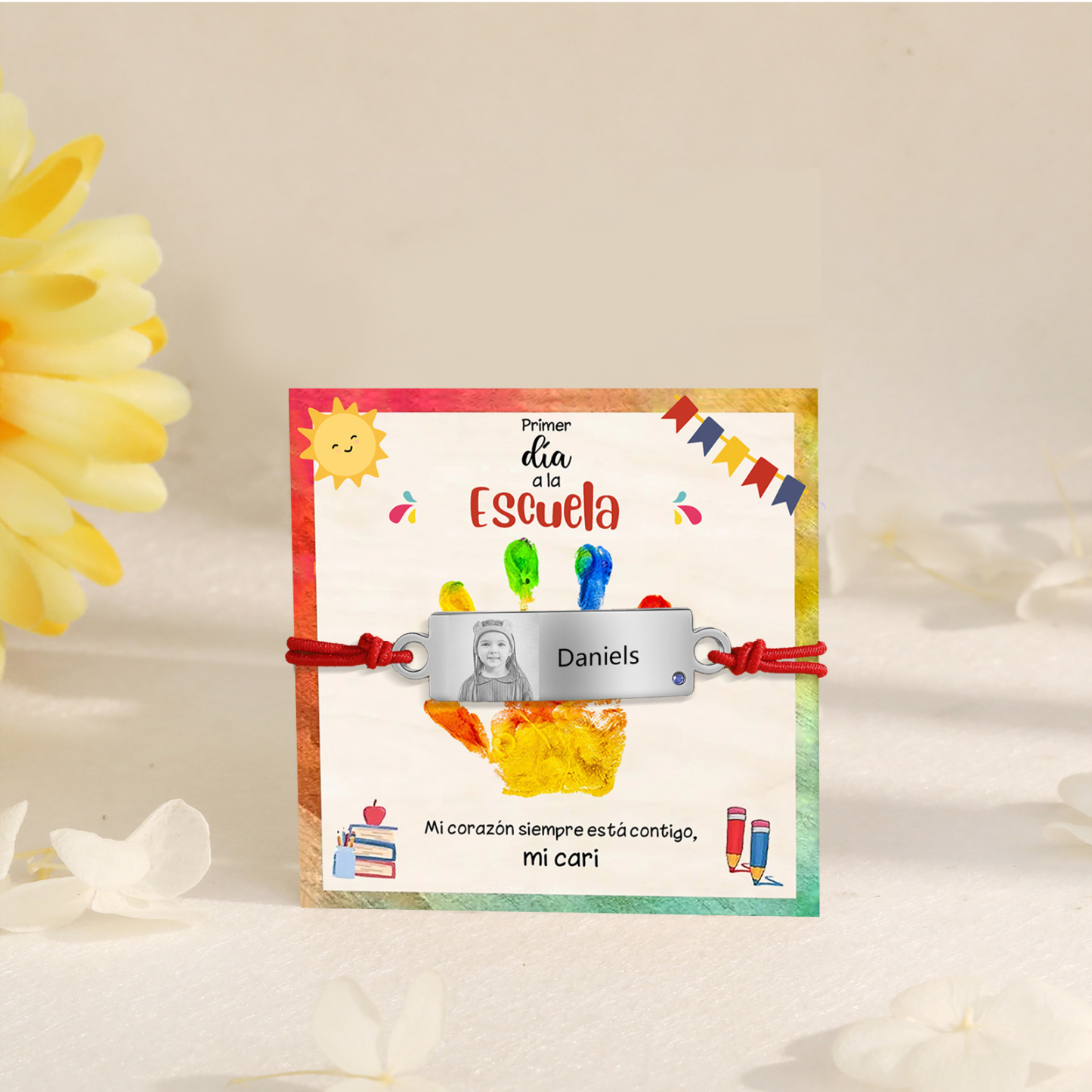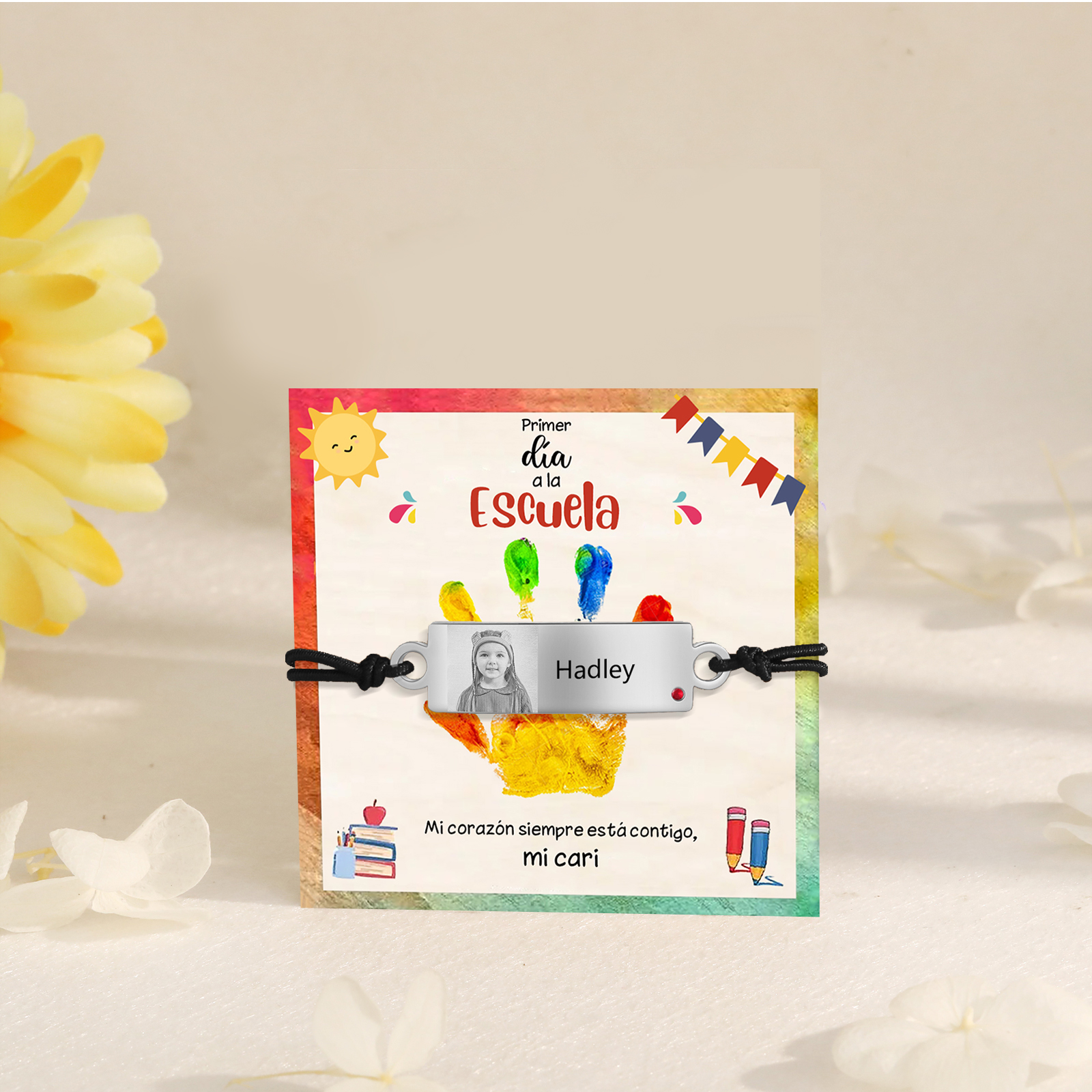 Pulsera de cuerda con 1 nombre y foto personalizados para niña, niño - Regalos de regreso a la escuela