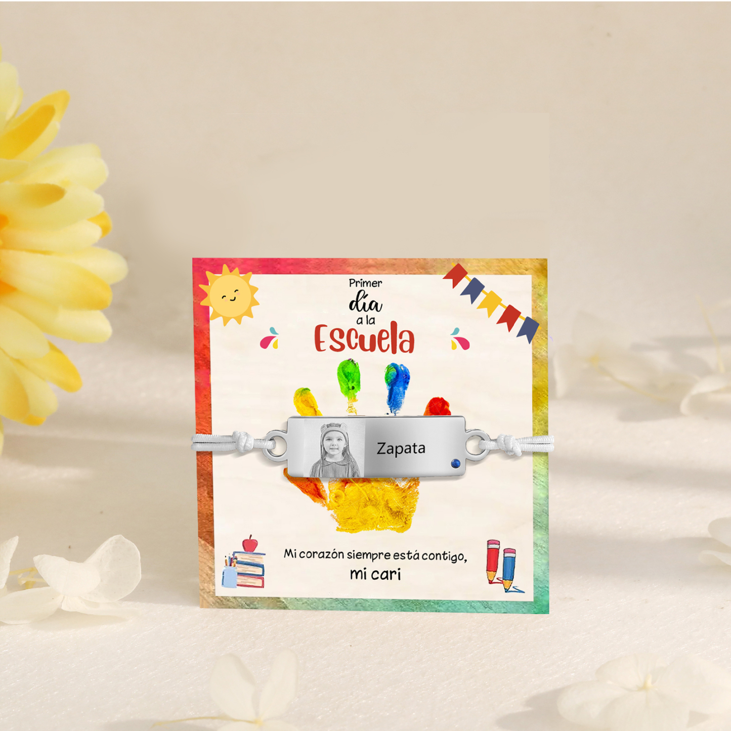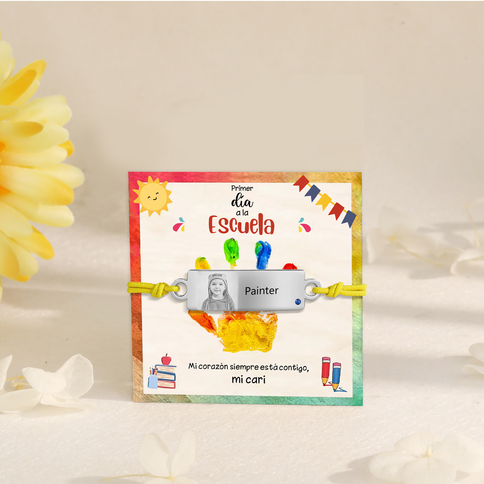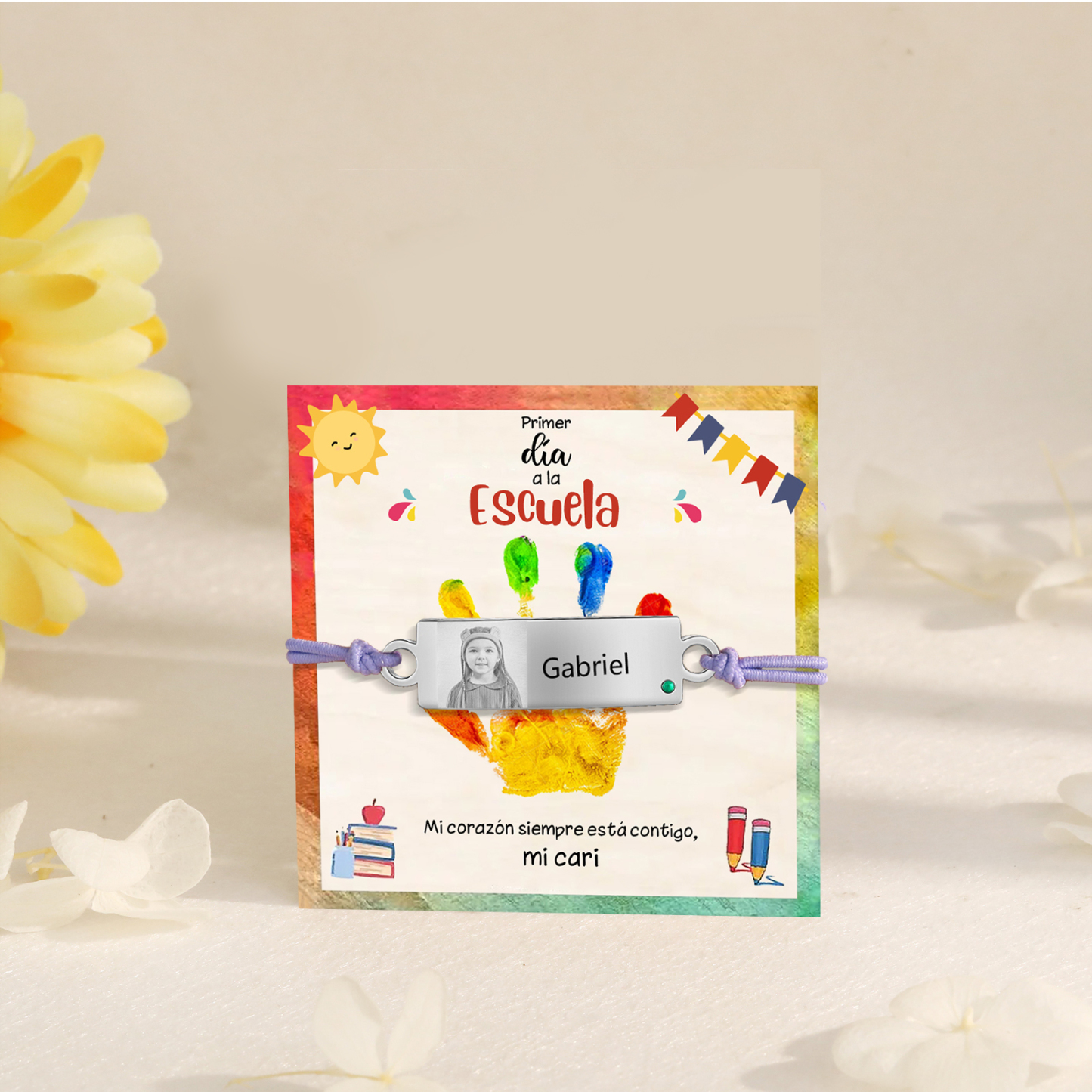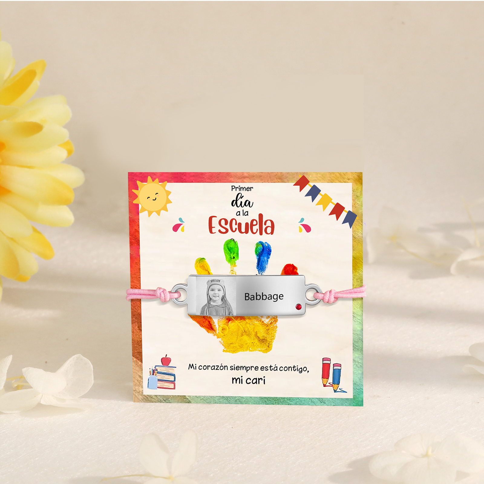 Pulsera de cuerda con 1 nombre y foto personalizados para niña, niño - Regalos de regreso a la escuela