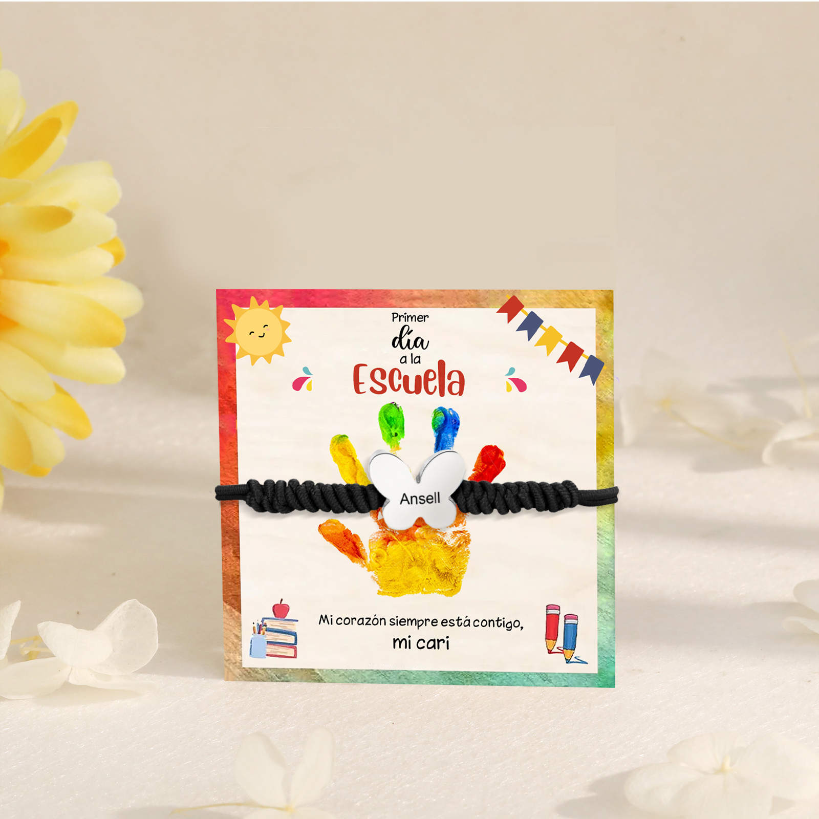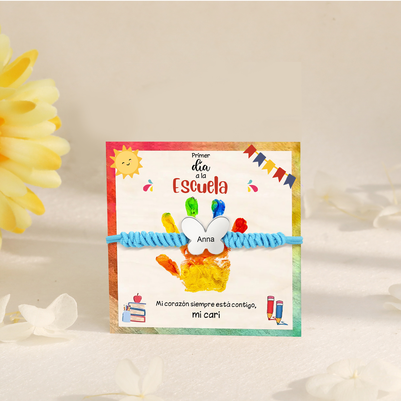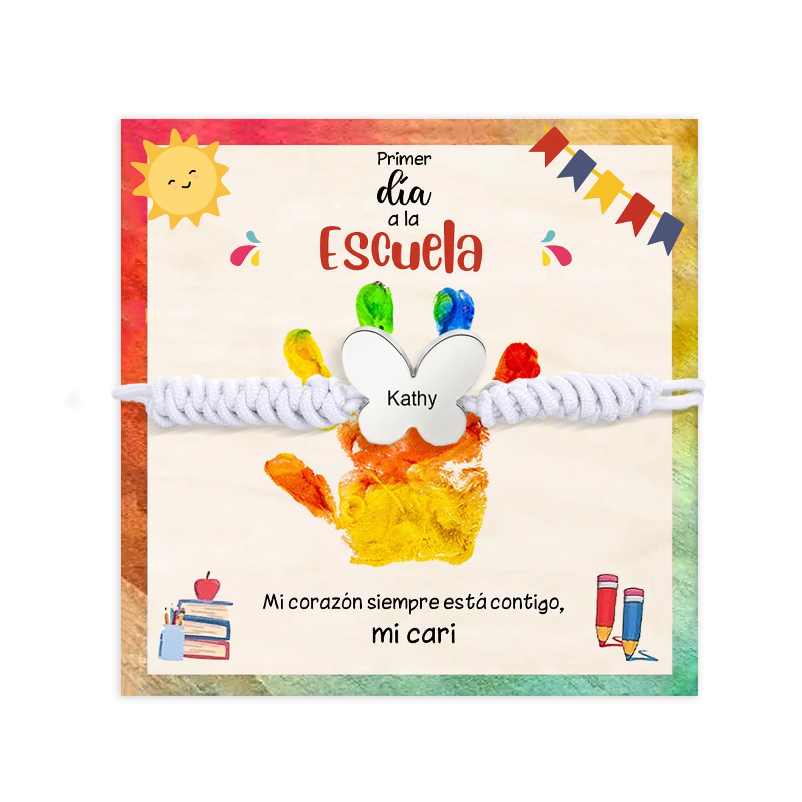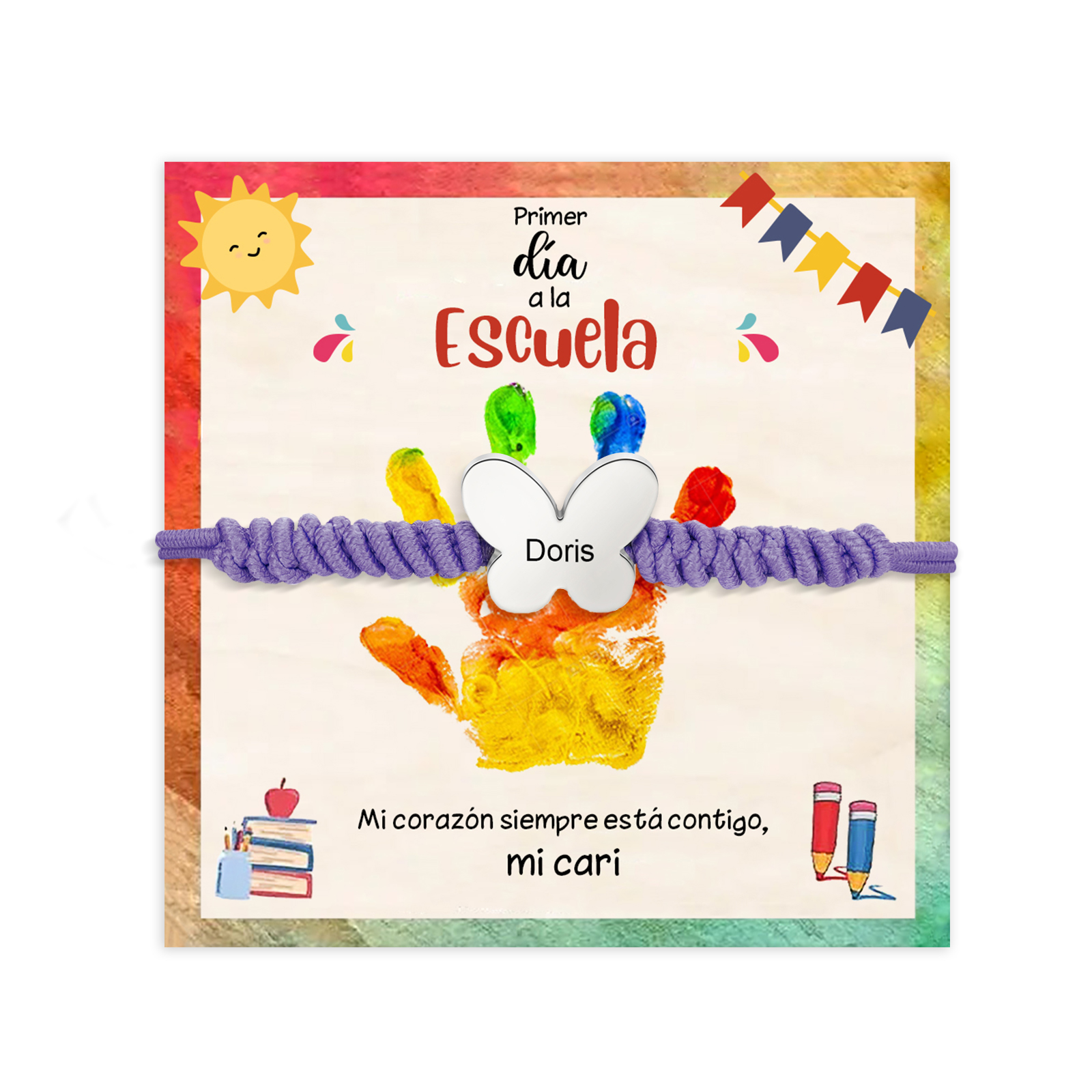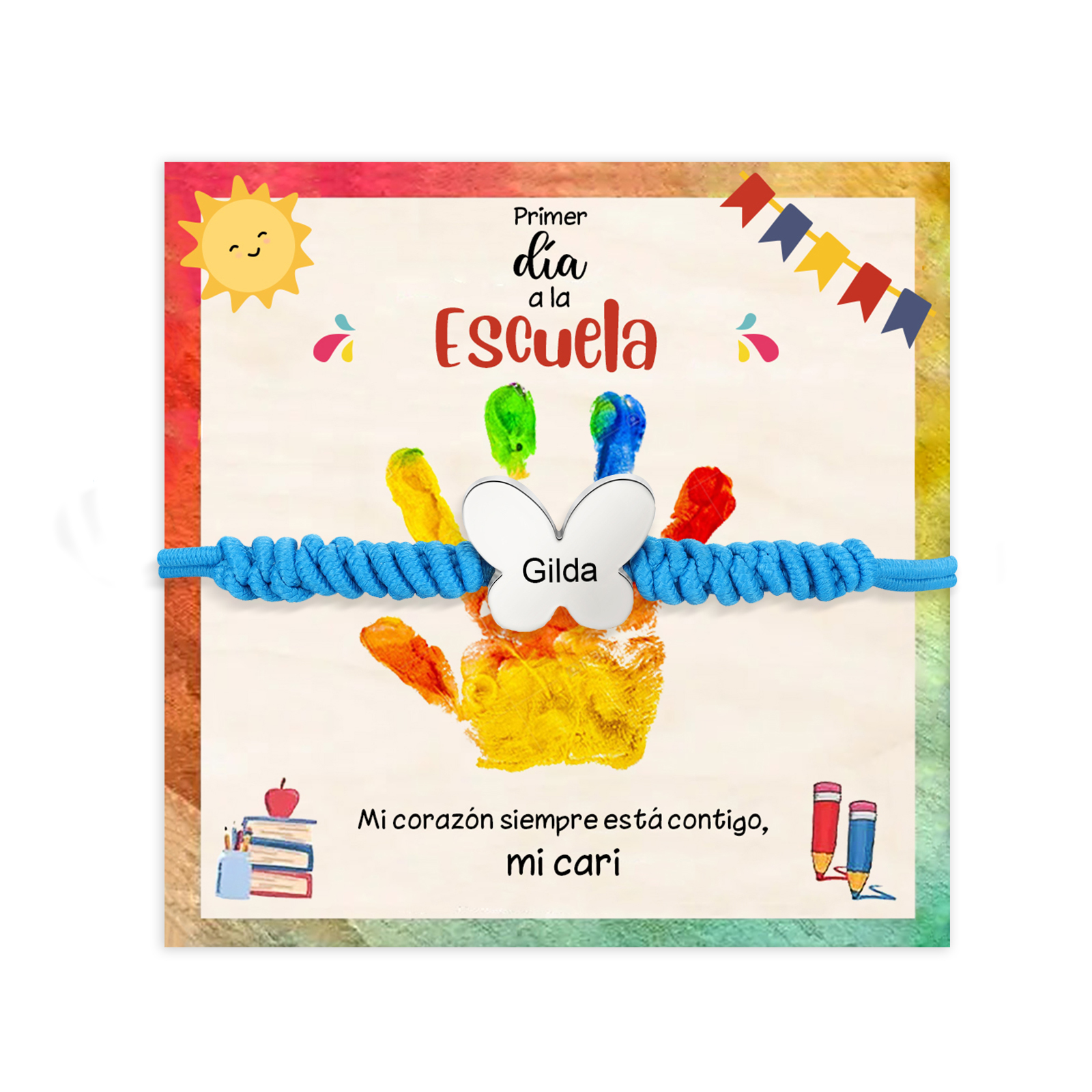 Pulsera de cuerda con colgante de mariposa con 1 nombre personalizado para niña, niño - Regalos de regreso a la escuela