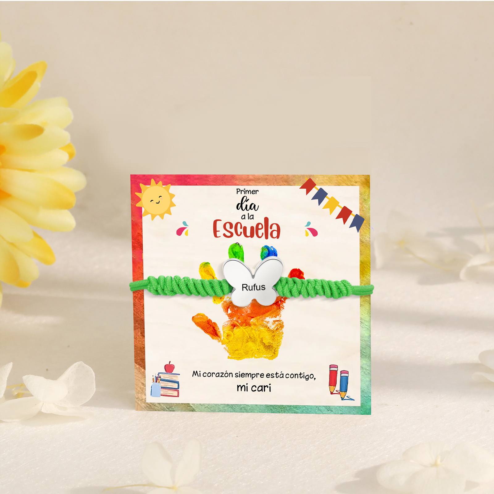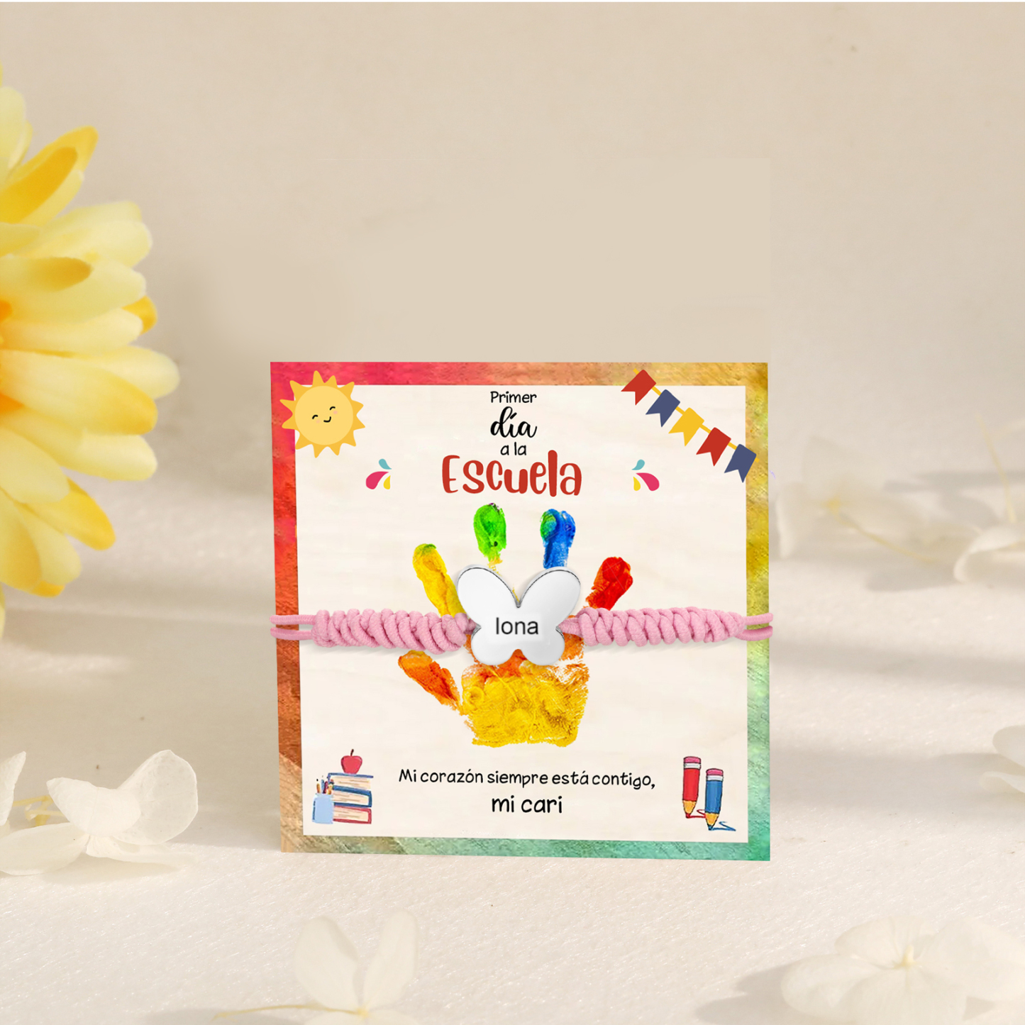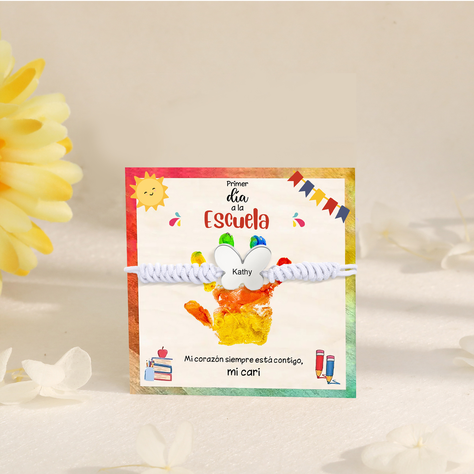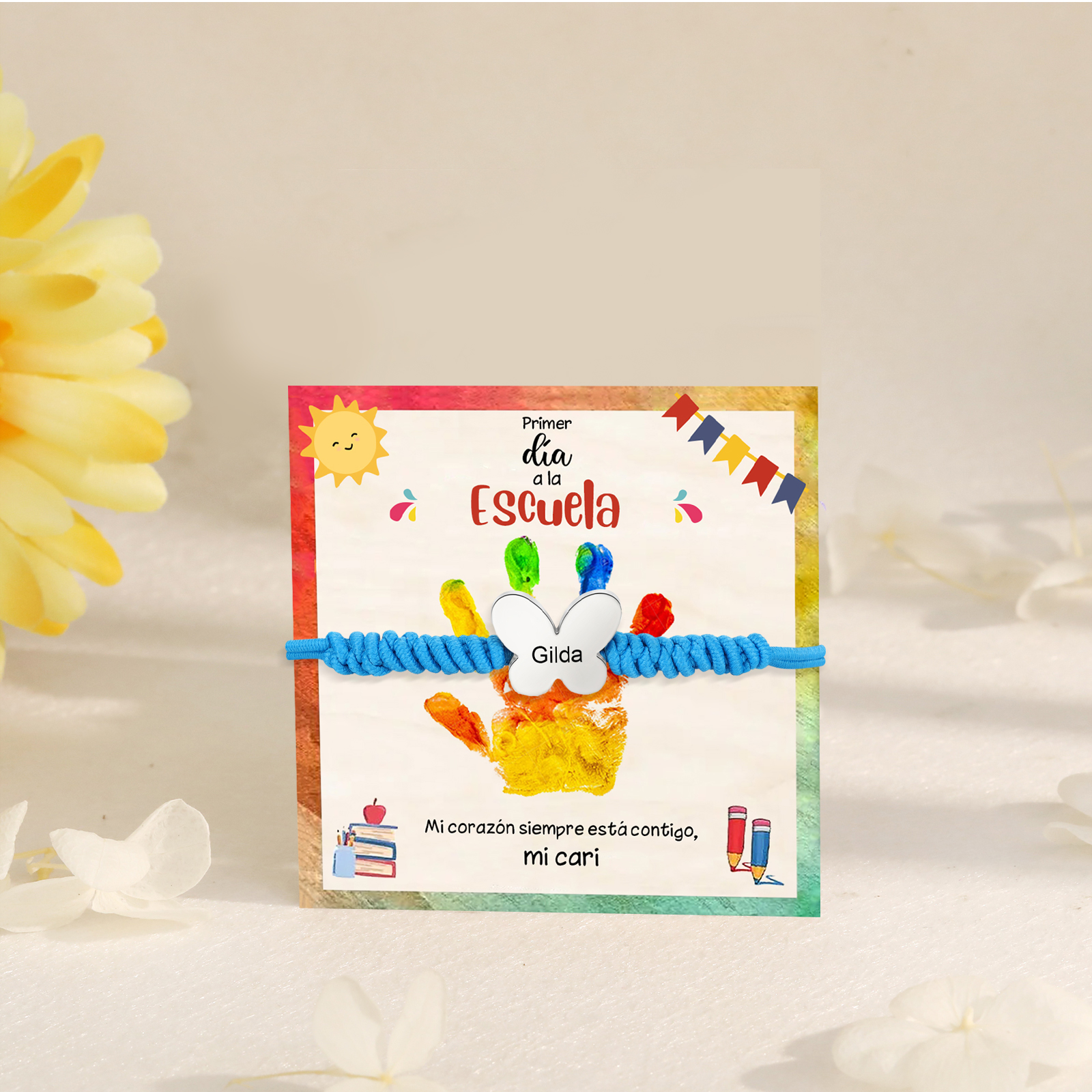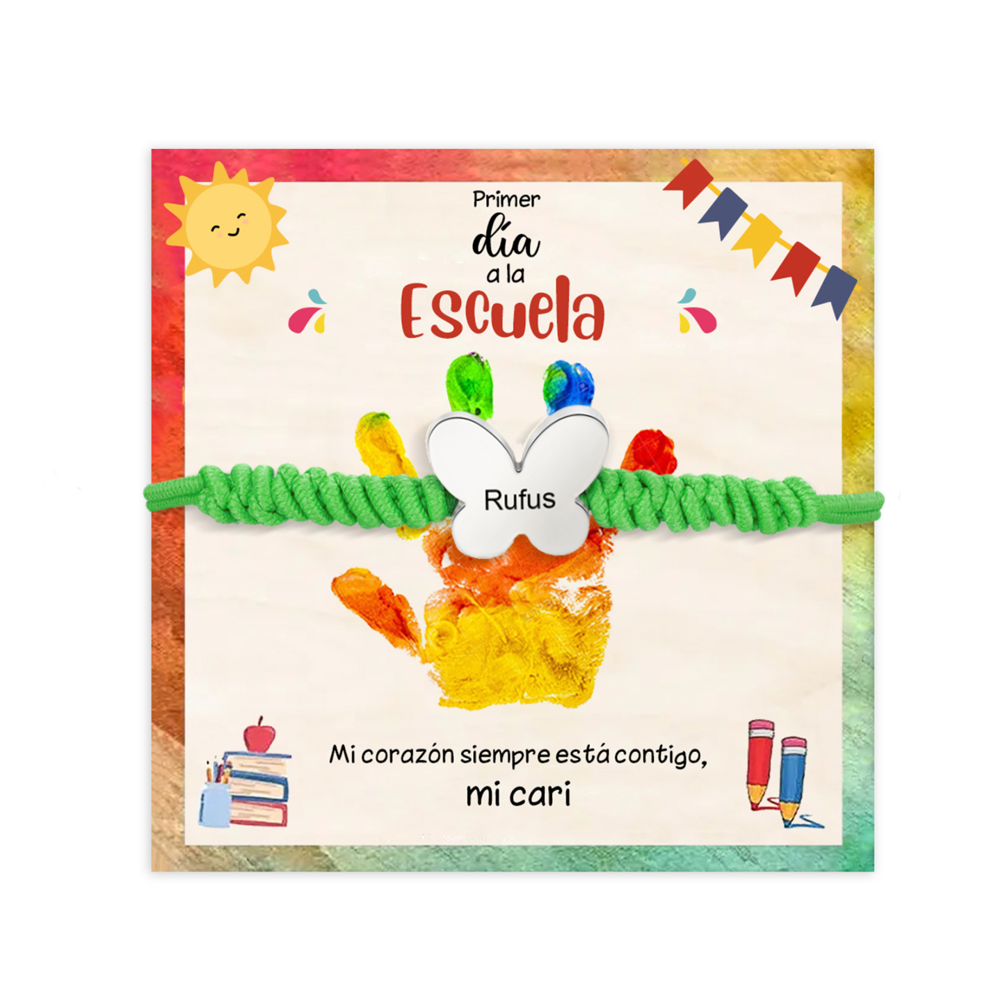 Pulsera de cuerda con colgante de mariposa con 1 nombre personalizado para niña, niño - Regalos de regreso a la escuela