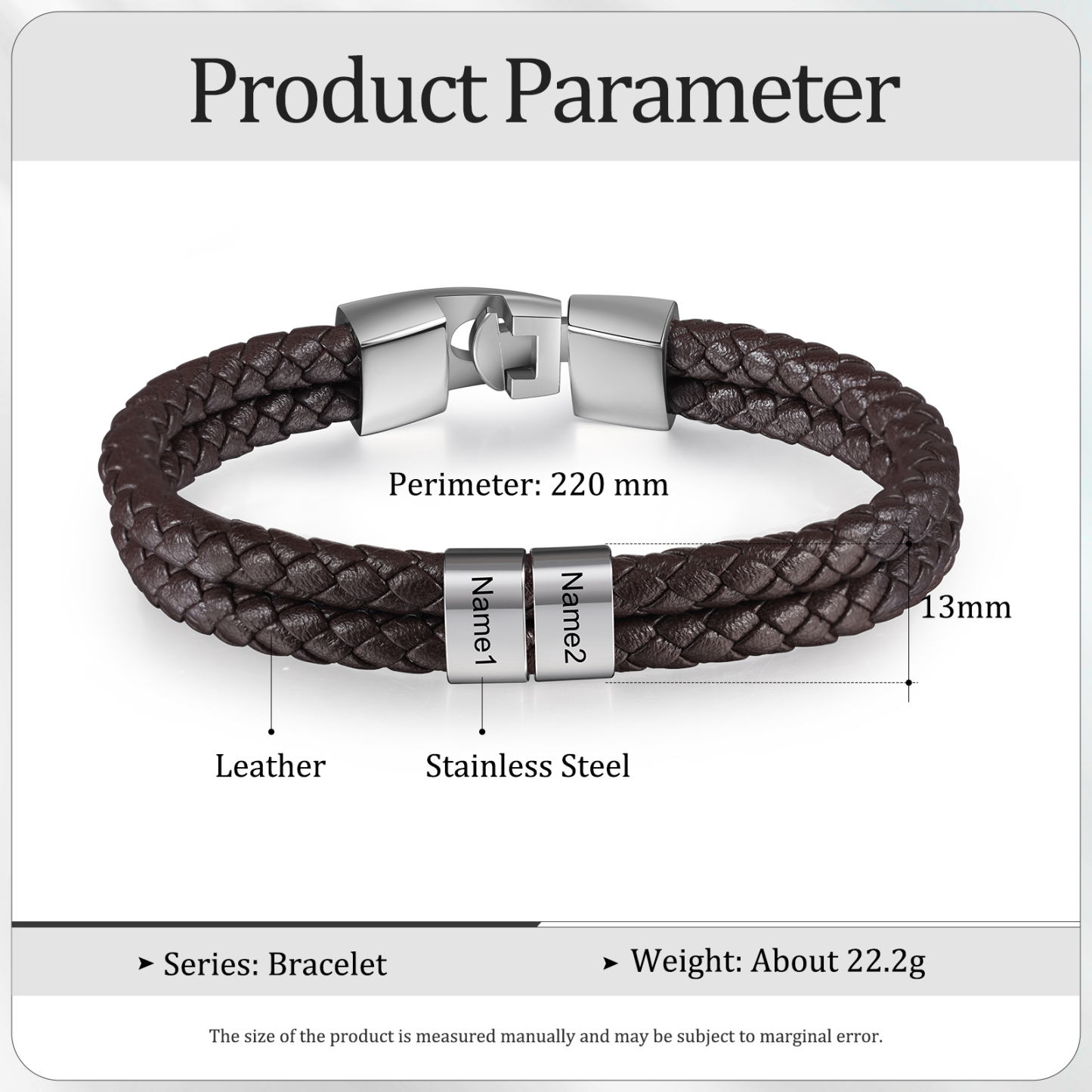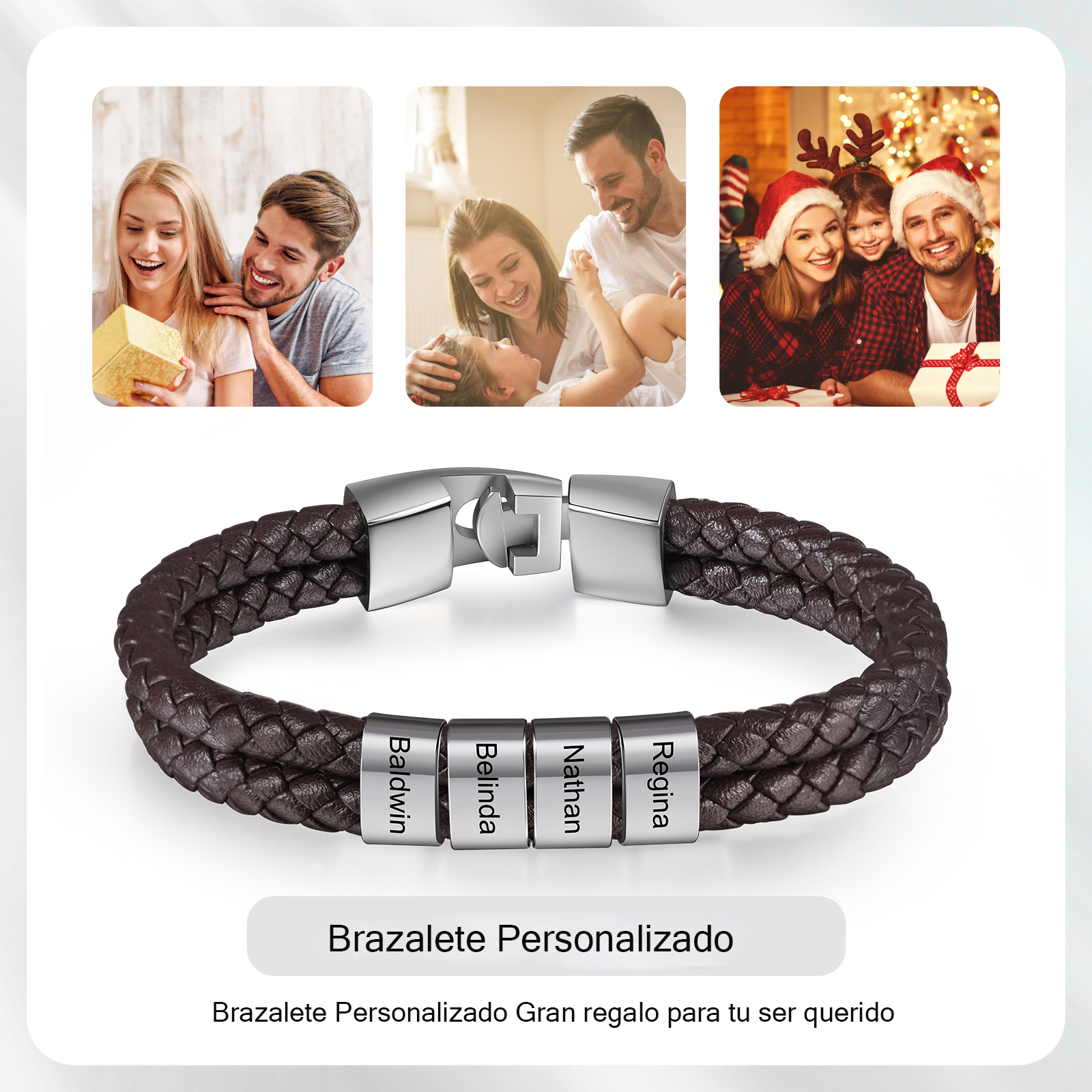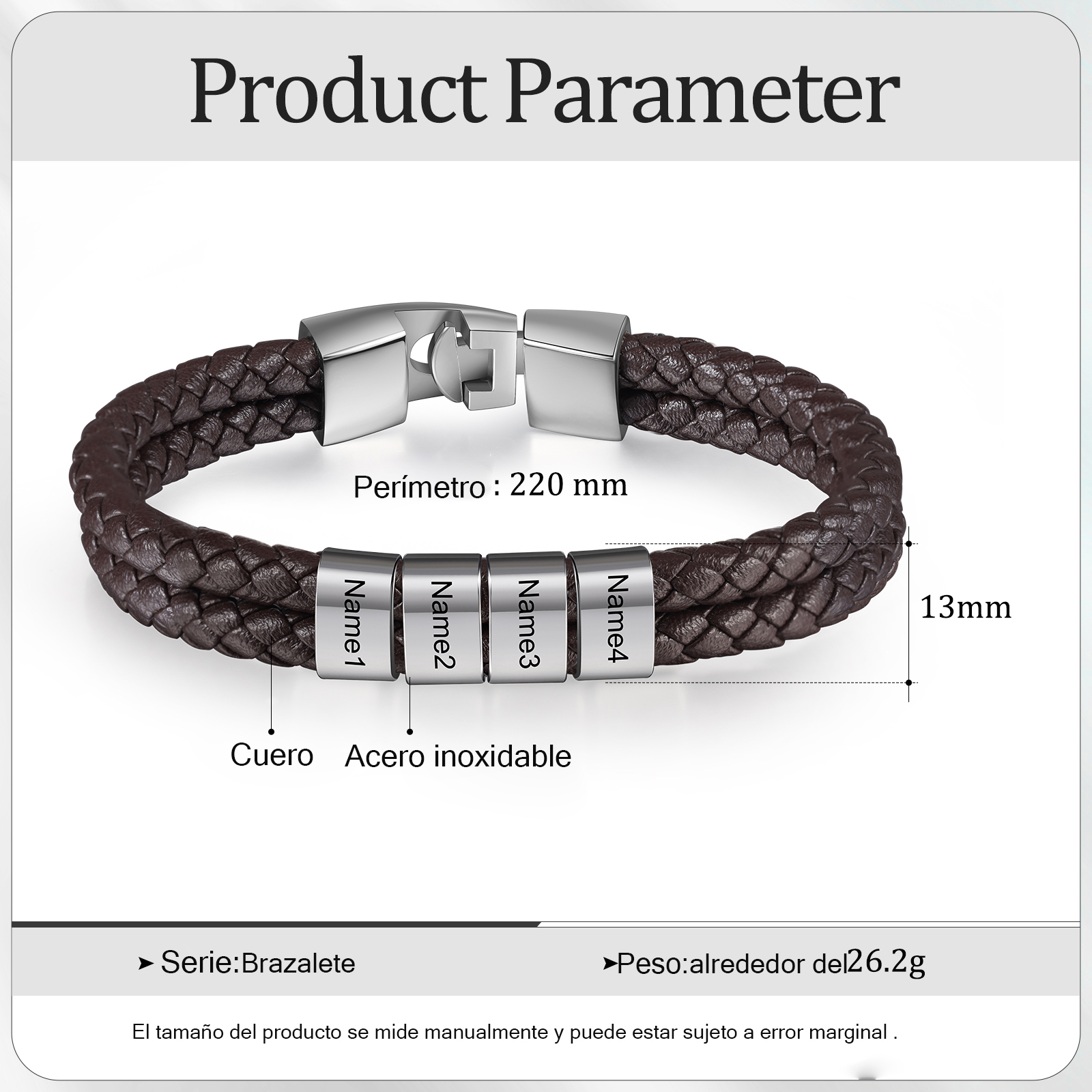 Pulsera de cuero trenzado 1-5 nombres personalizados para hombre