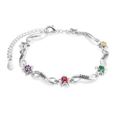 Pulsera para mujer de estrella e infinito personalizada con 4 nombres y 4 piedras de nacimiento