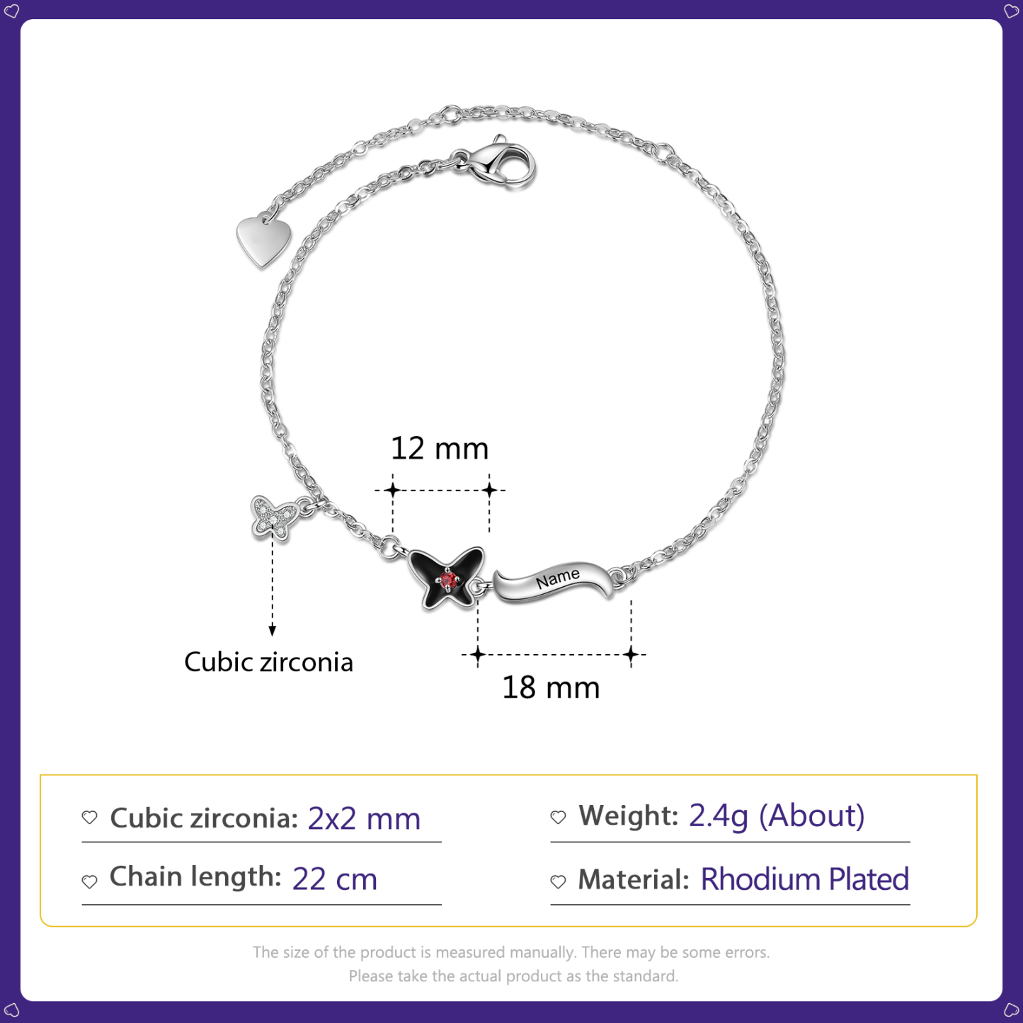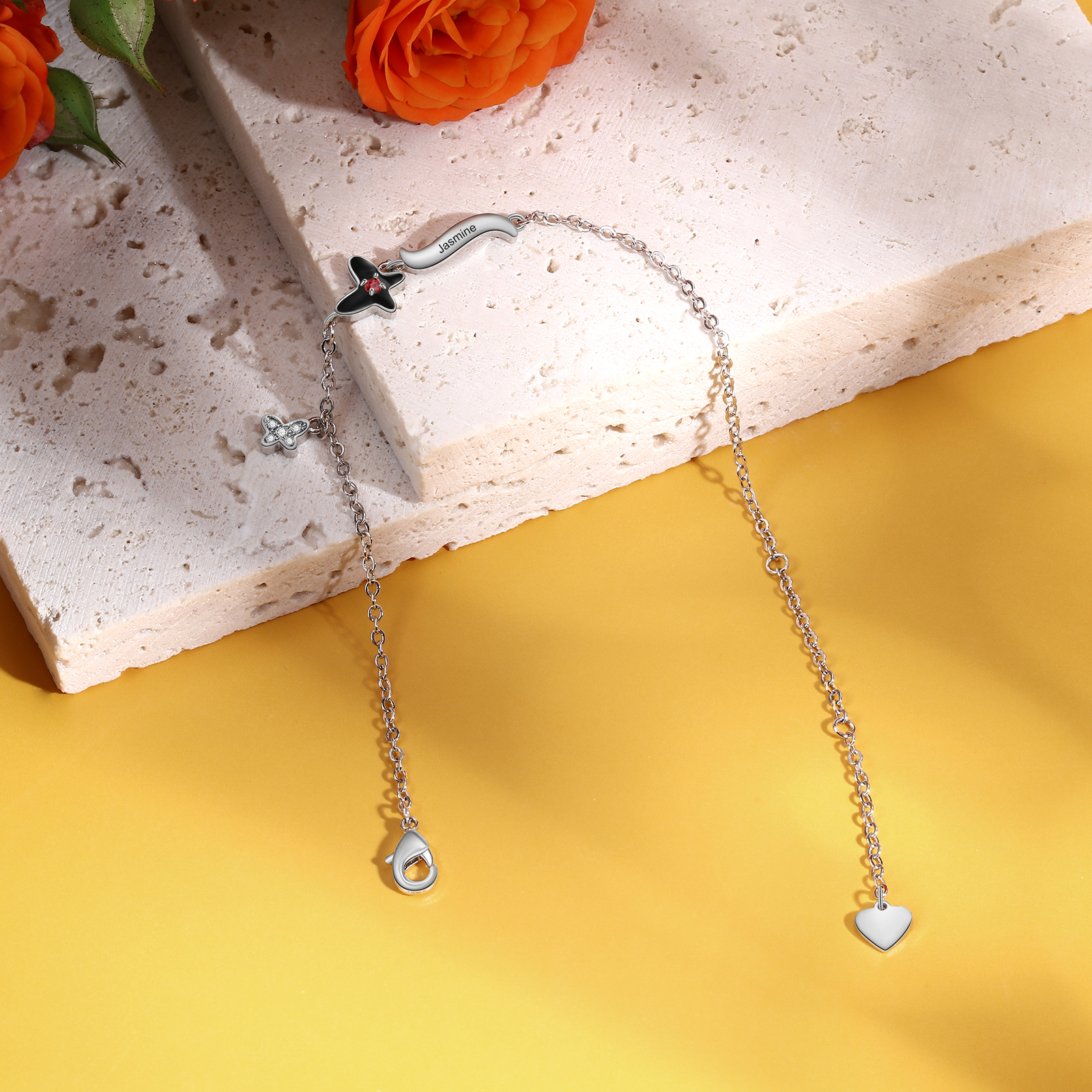 Pulsera para mujer de mariposa 1 nombre personalizado con 1 piedra de nacimiento