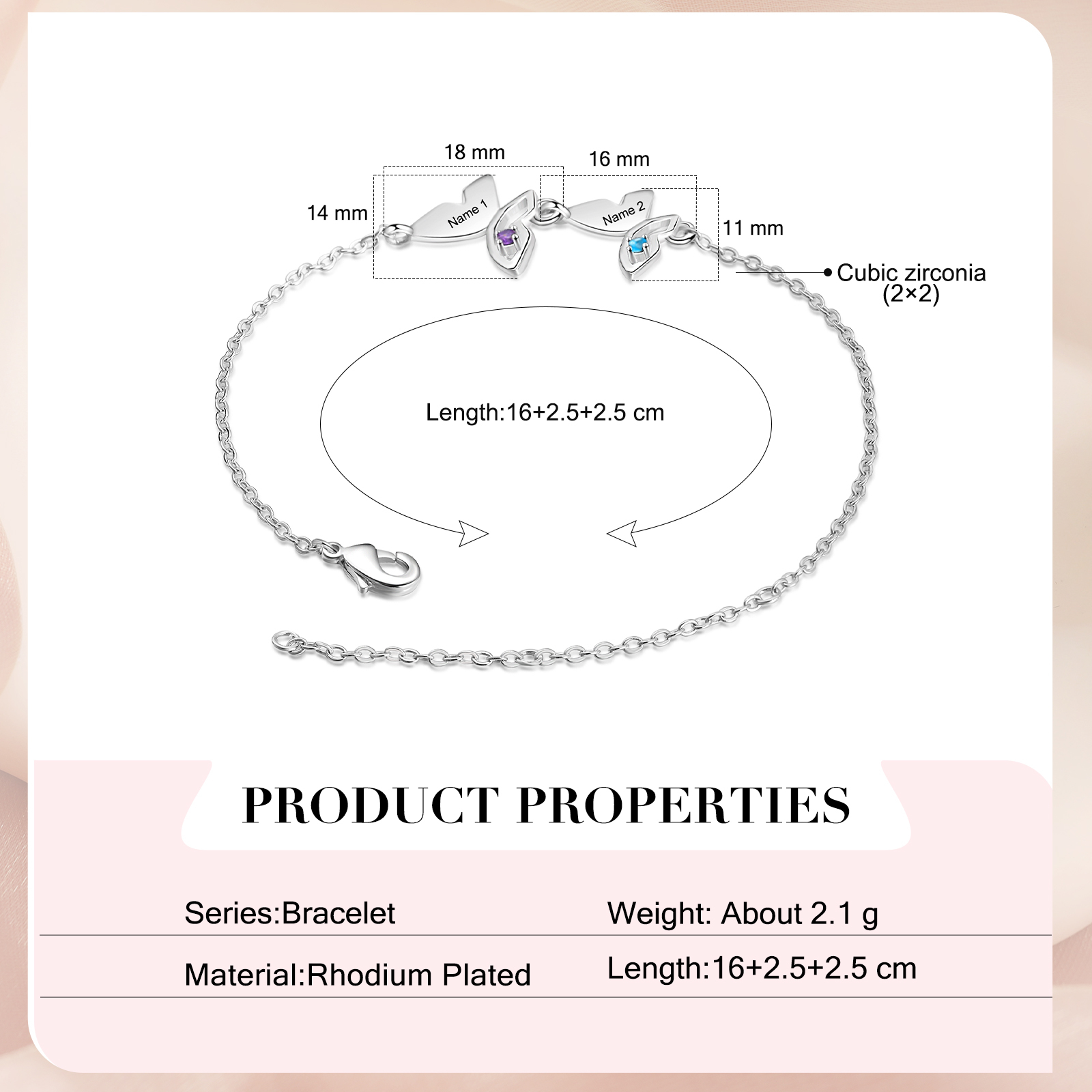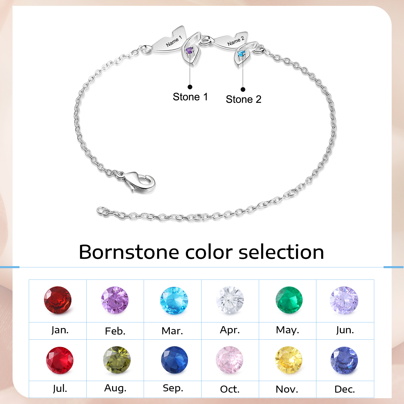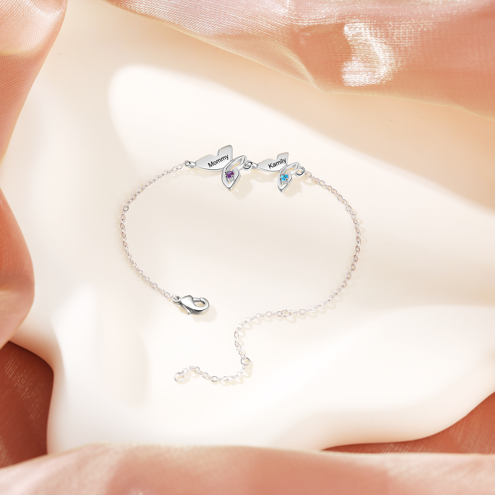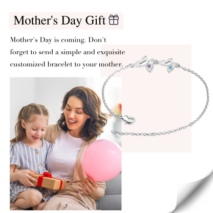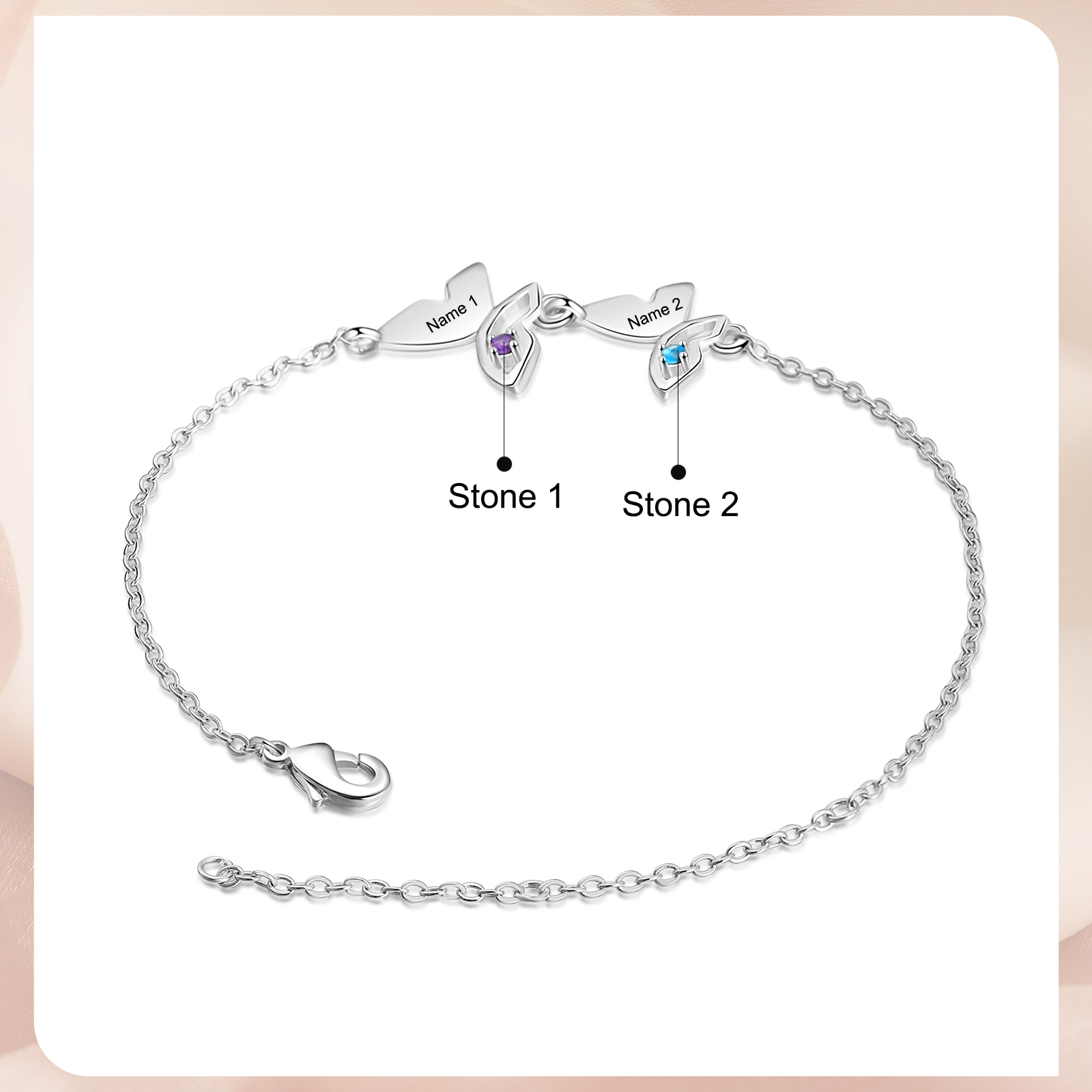 Pulsera para Mujer de Mariposa 2 Nombres Personalizados con 2 Piedras de Nacimiento