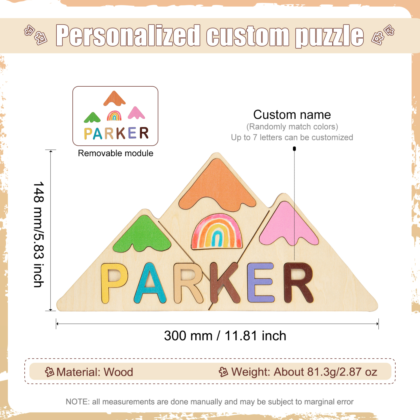 Rompecabezas/Puzzles para bebés triangular personalizado con nombre juguetes de aprendizaje temprano